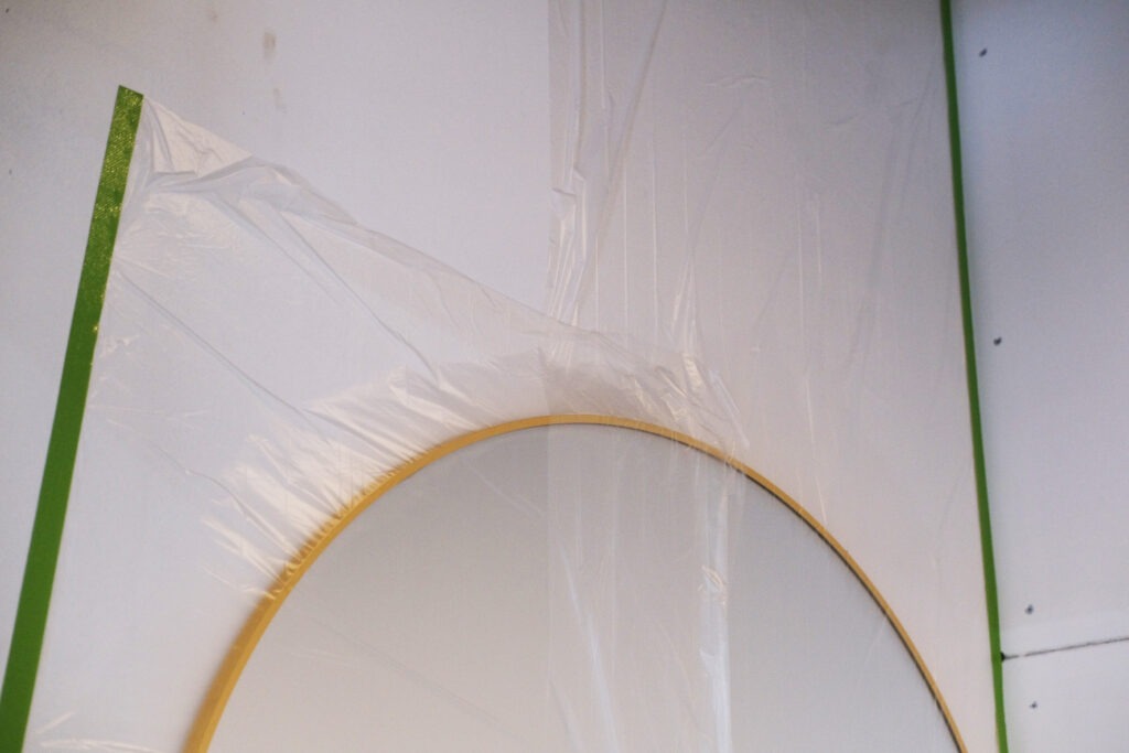 商品を一度バックヤードへ片付け、周囲を何もない状態にしてから養生テープを貼っていきます。