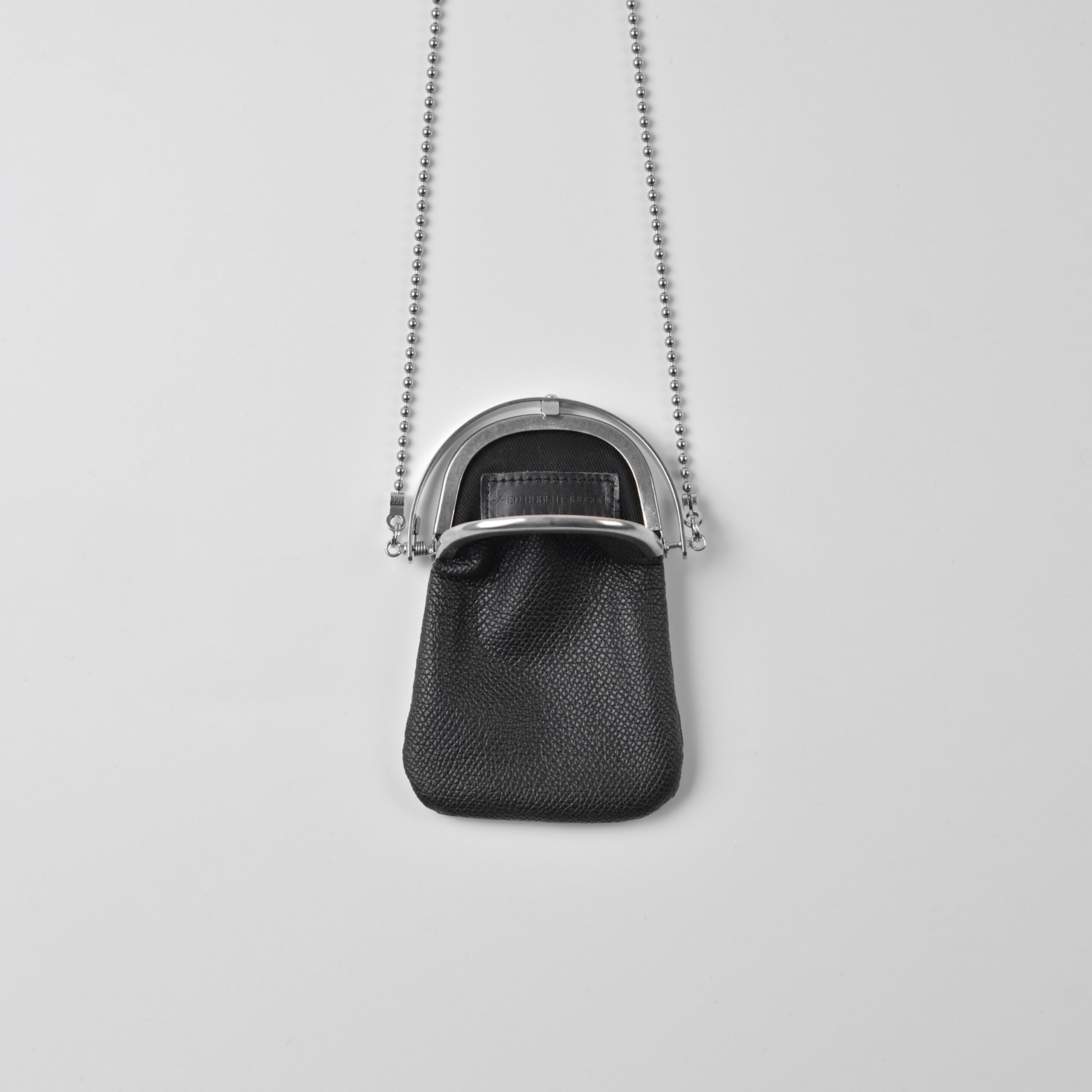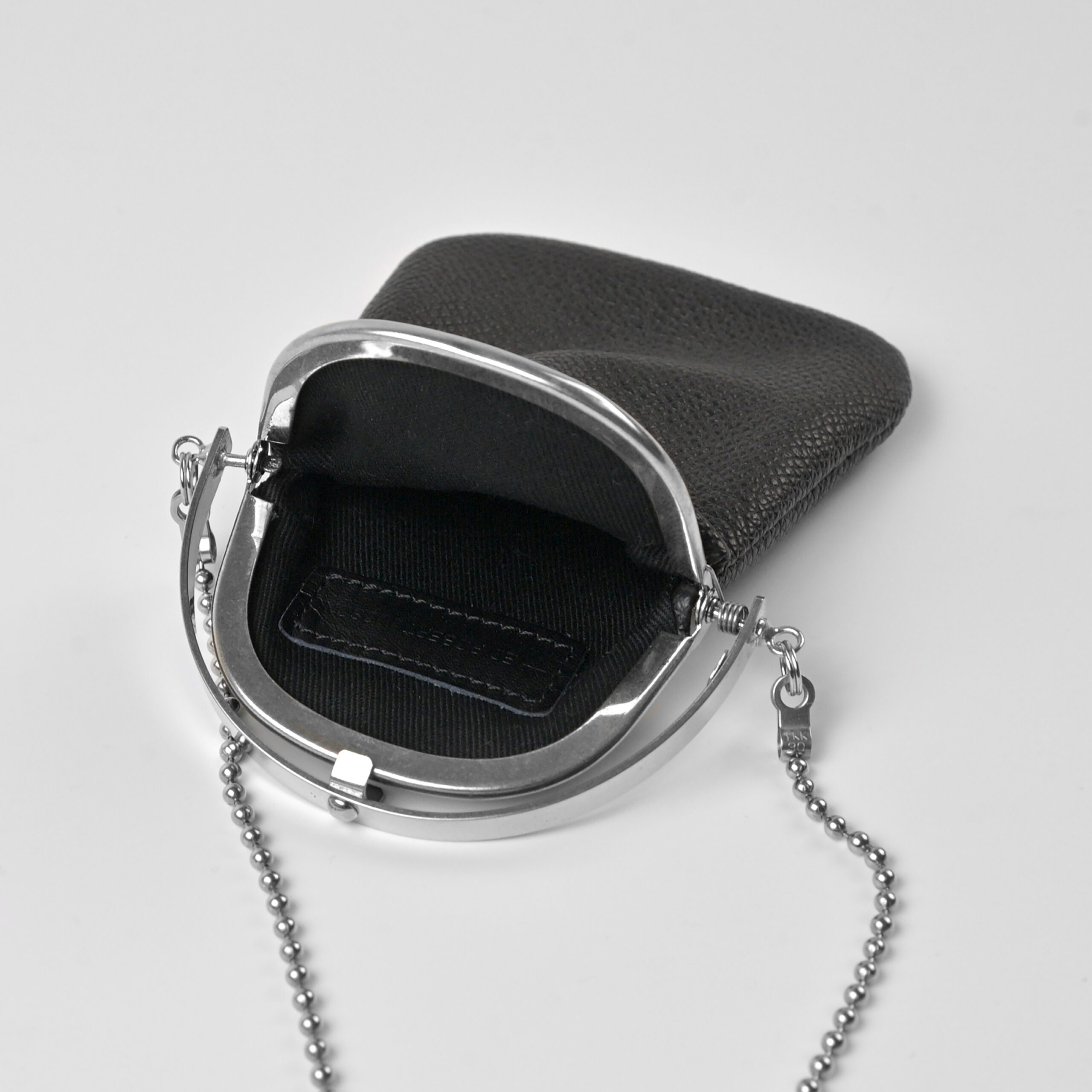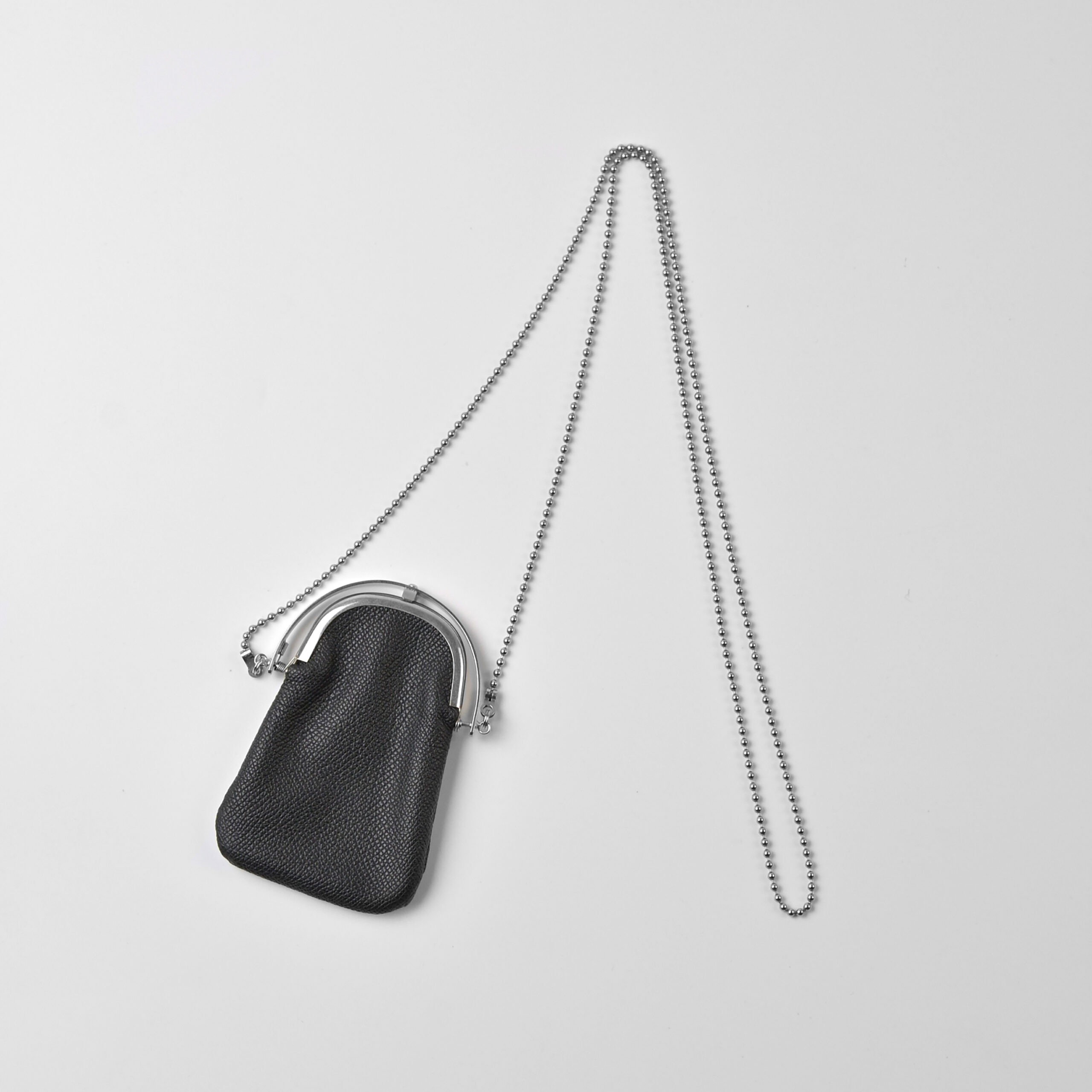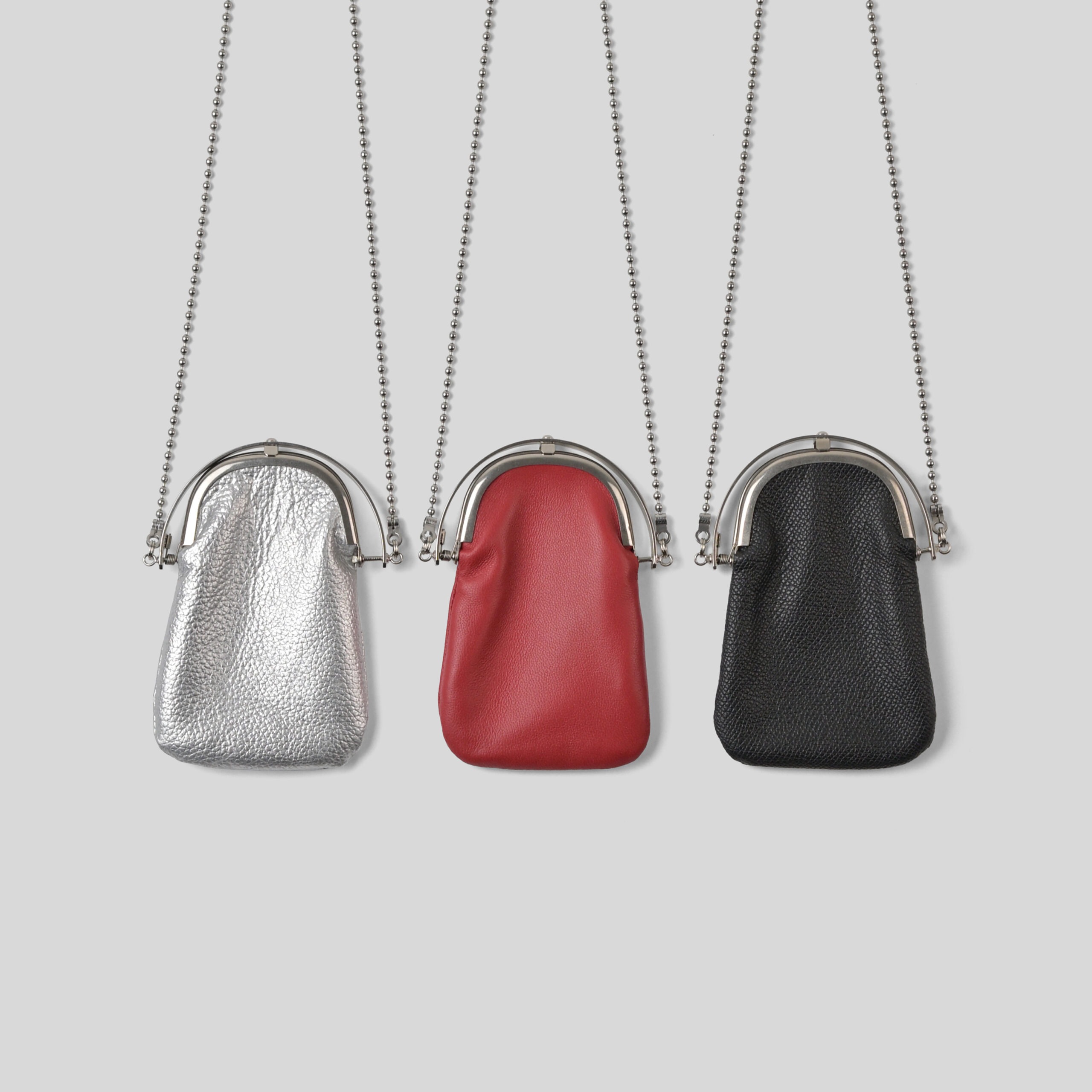 長めの袋はカードやお札を折りたたんで収納する事ができチェーンは斜め掛けができる長さに設置しています。