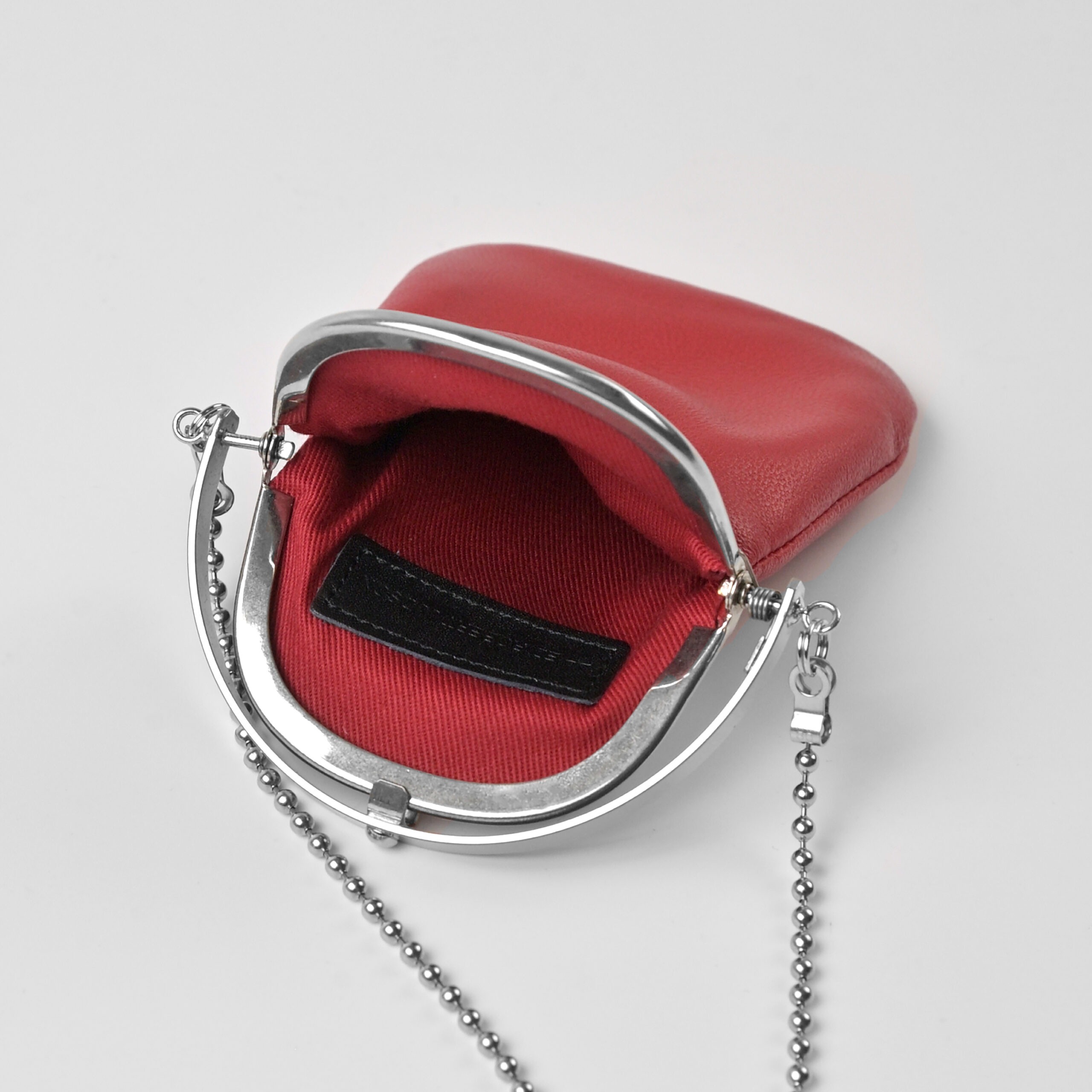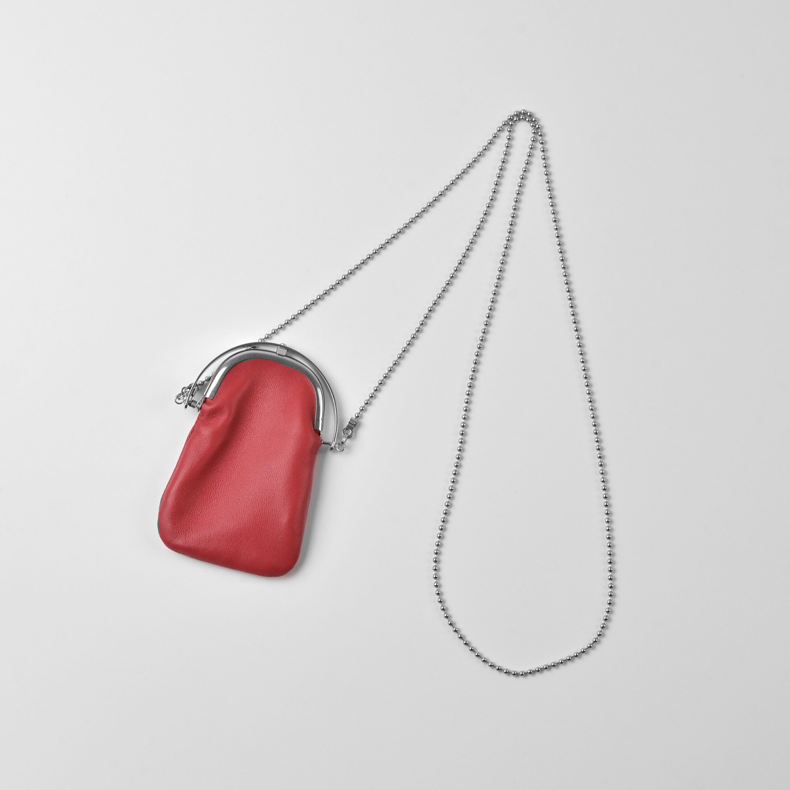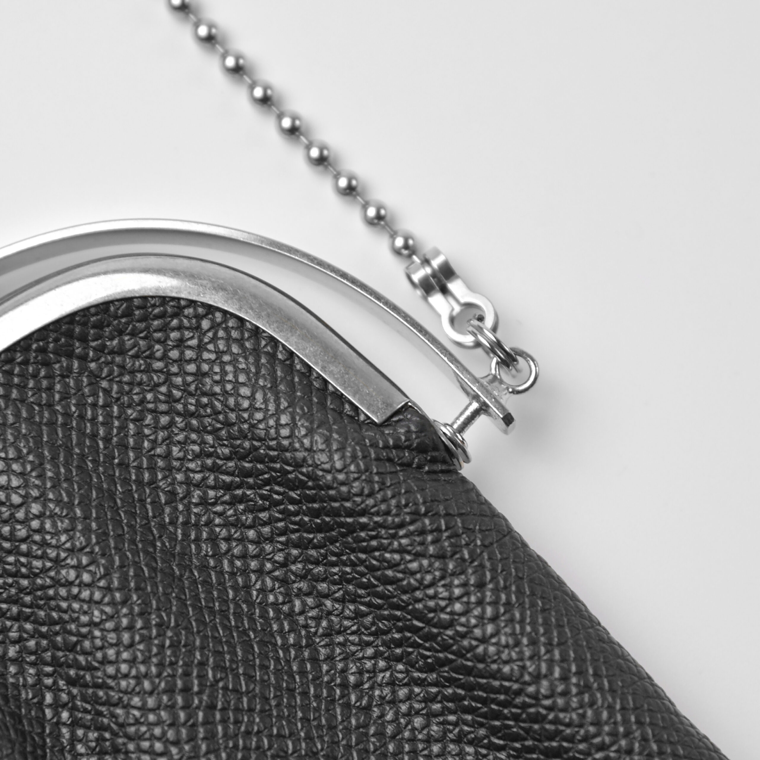 長めの袋はカードやお札を折りたたんで収納する事ができチェーンは斜め掛けができる長さに設置しています。