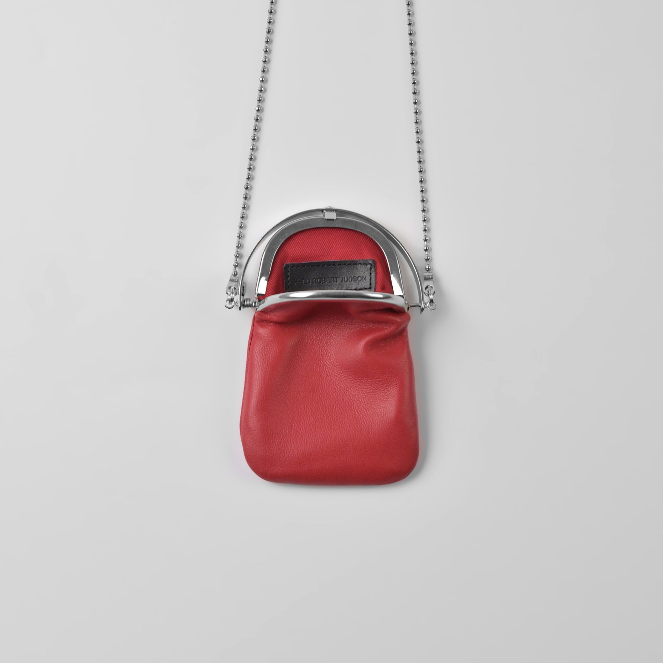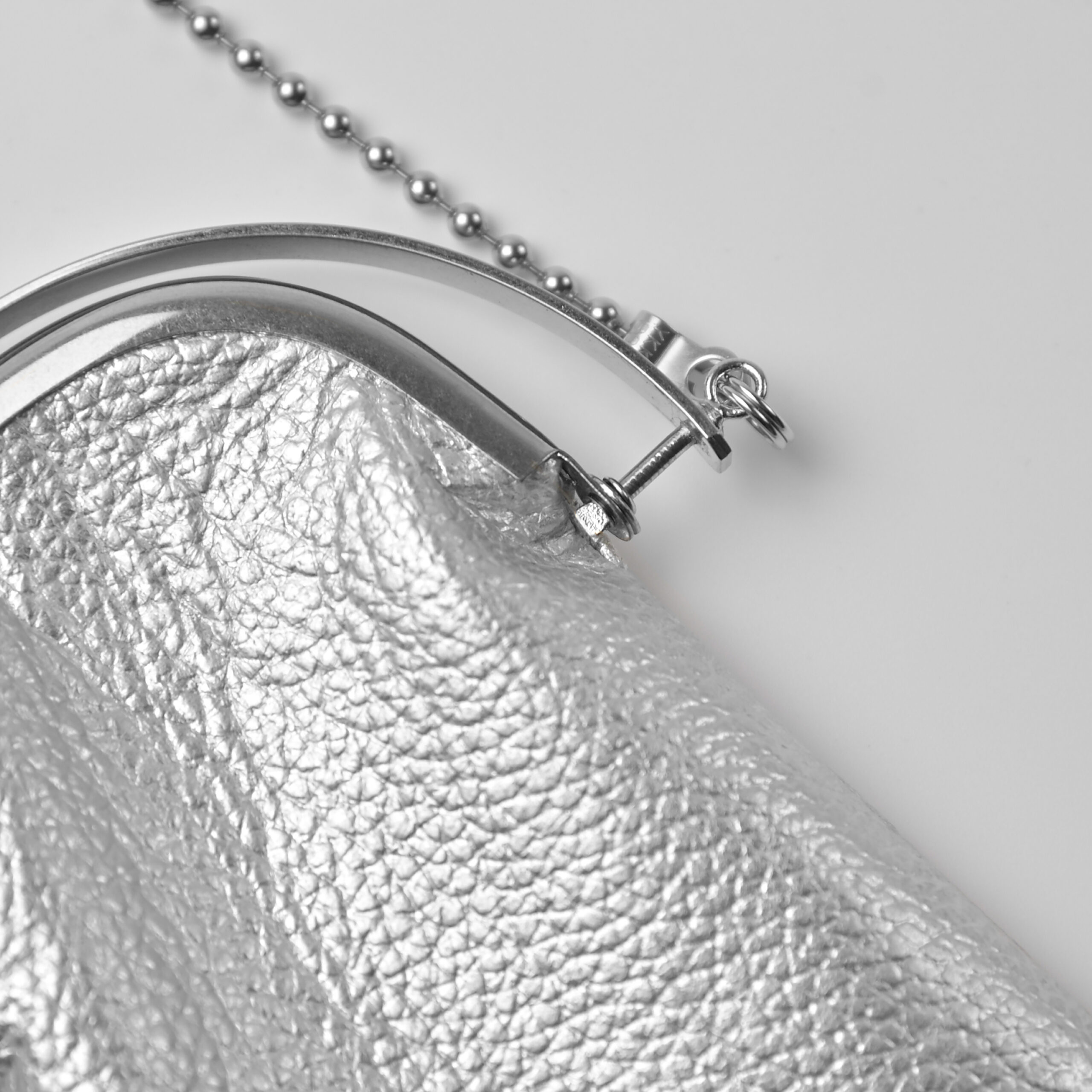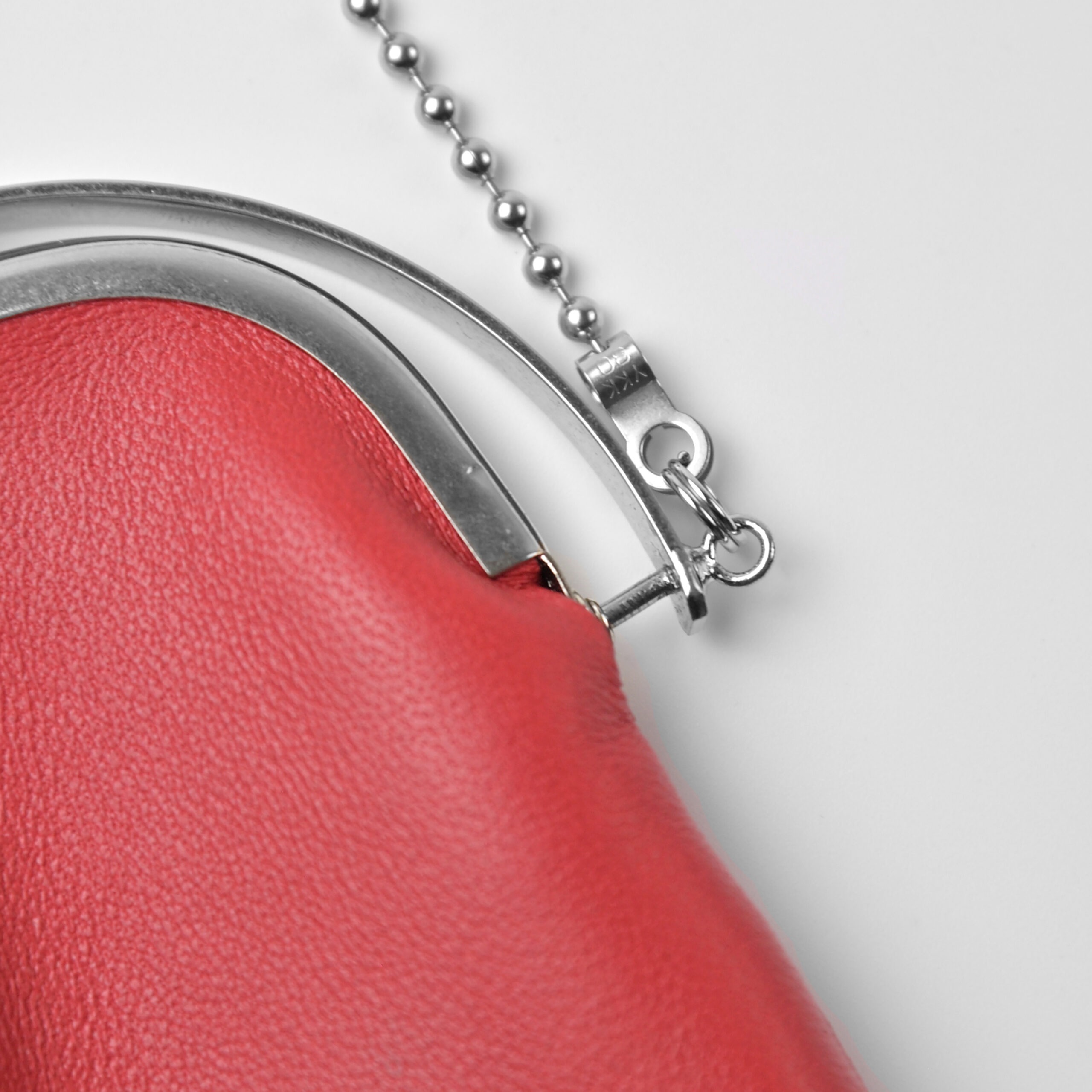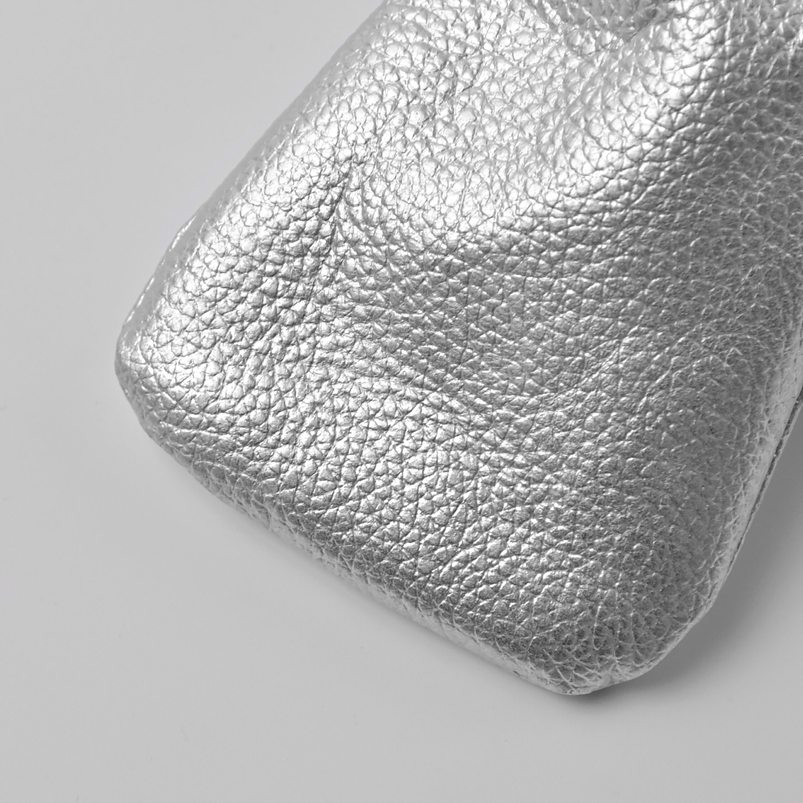 長めの袋はカードやお札を折りたたんで収納する事ができチェーンは斜め掛けができる長さに設置しています。