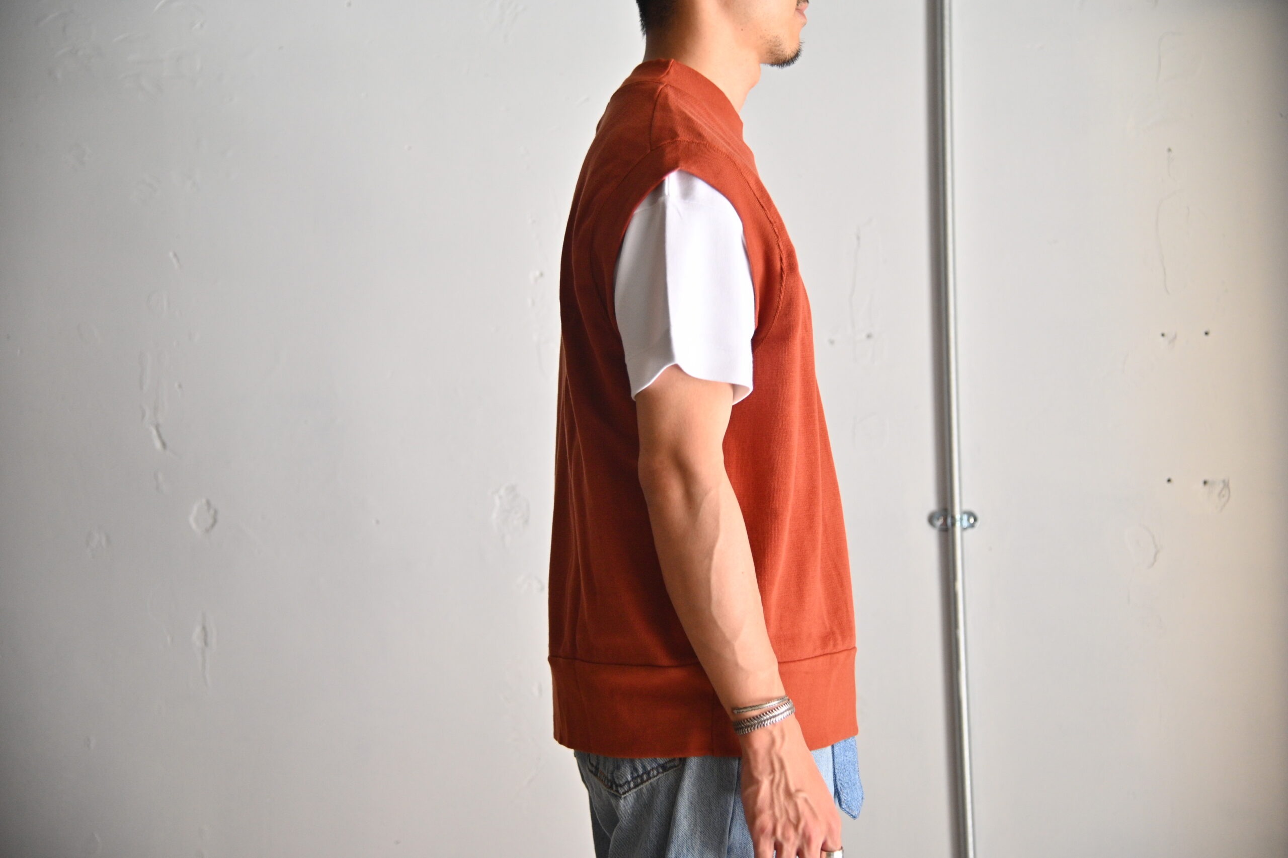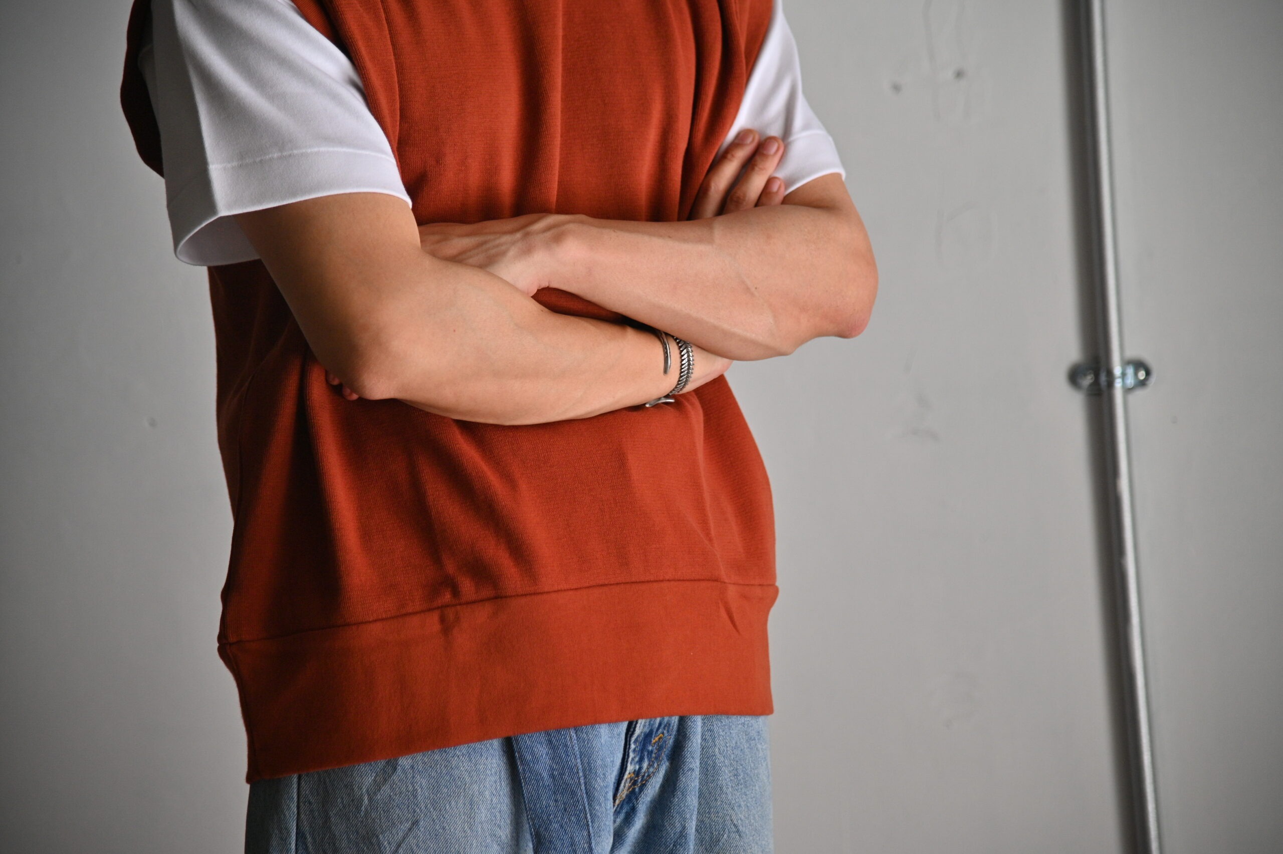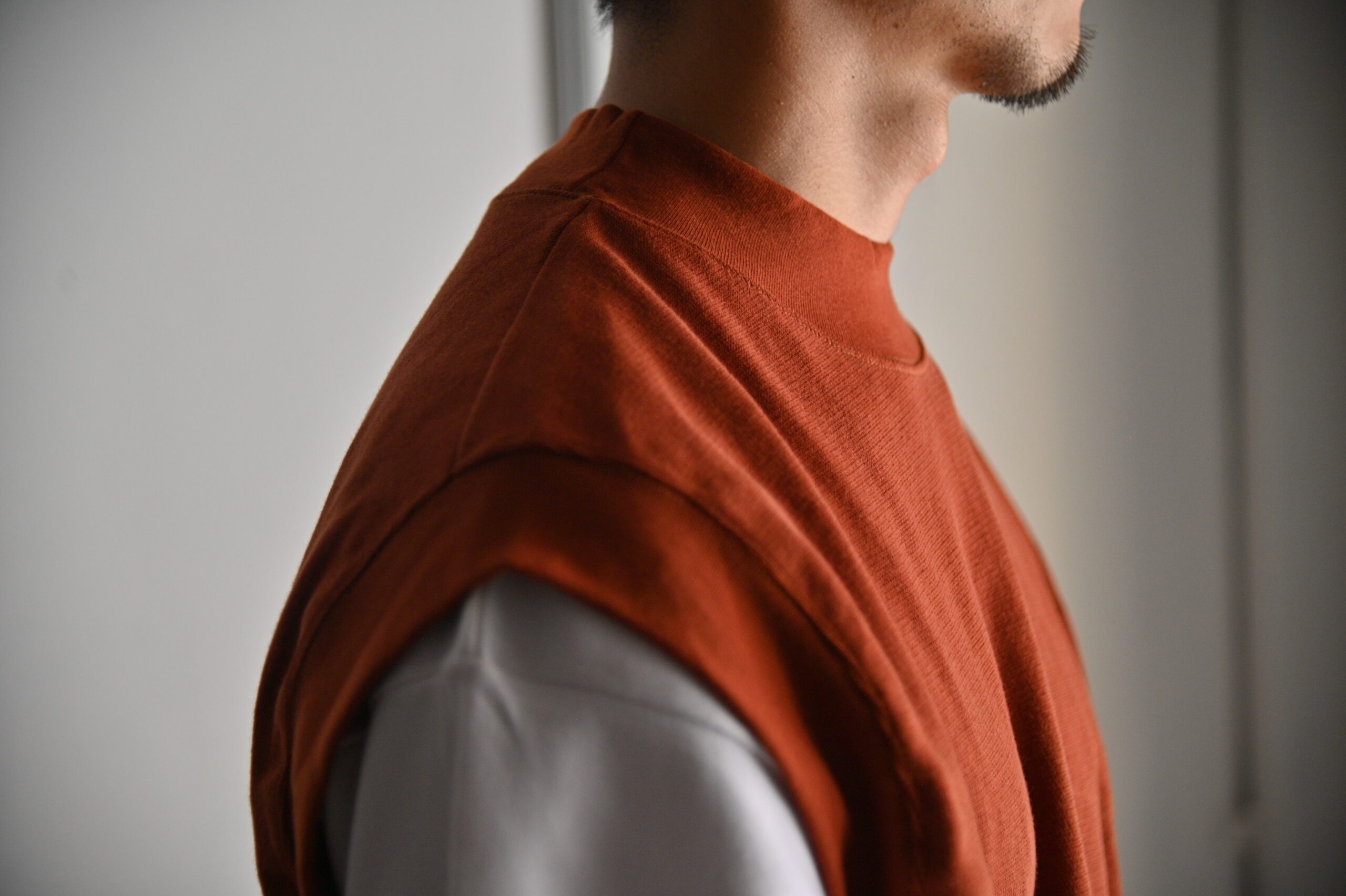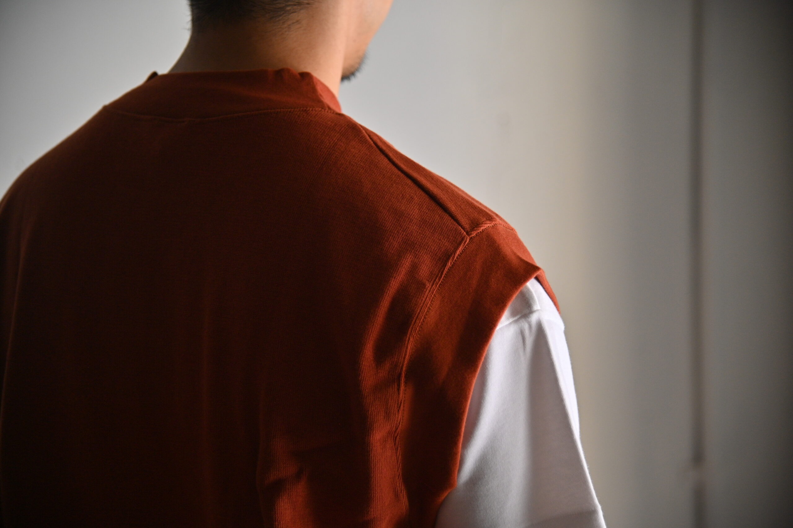 強度の高いミラノリブ編みを採用し、リラックス感のあるワイドフィットのジレを制作しました。