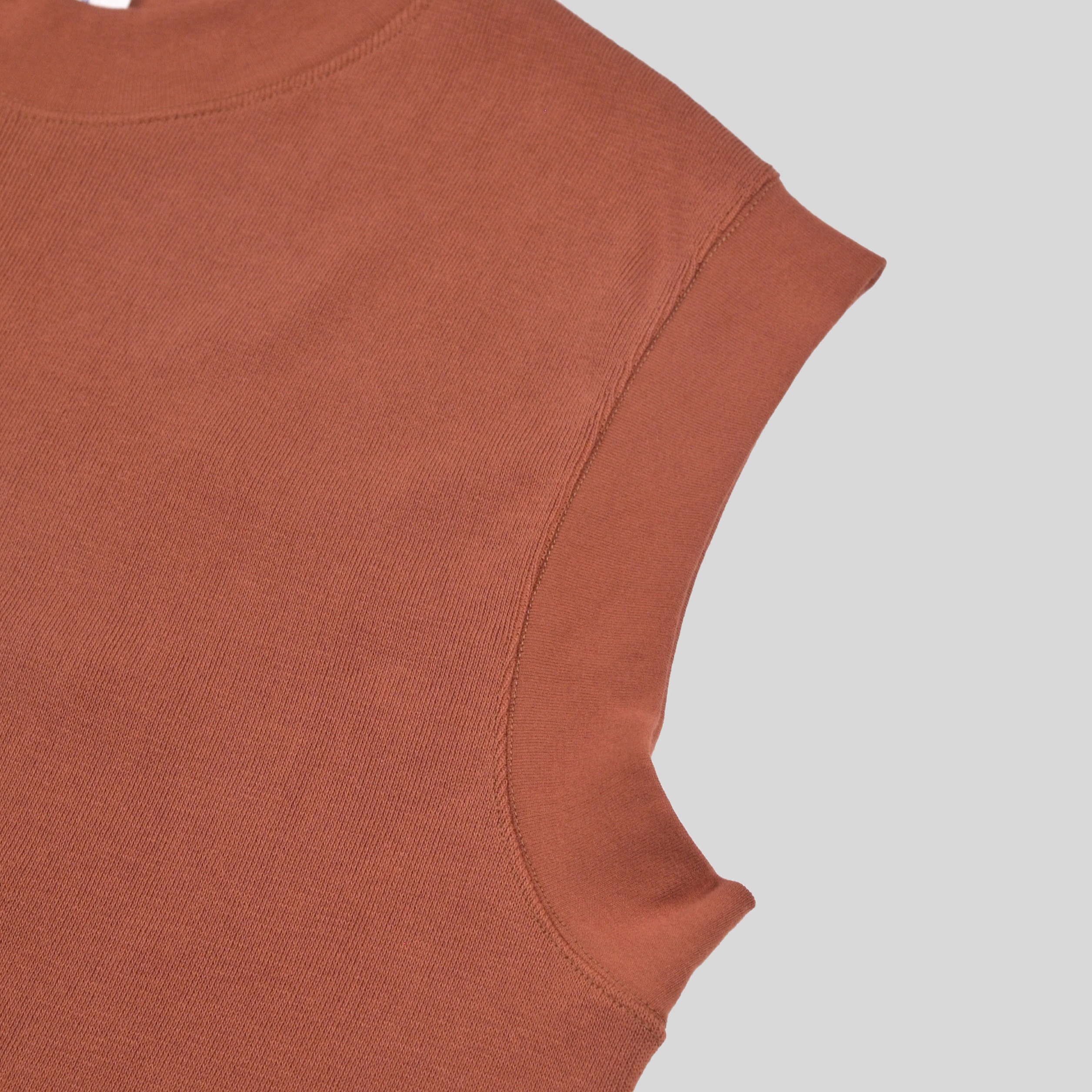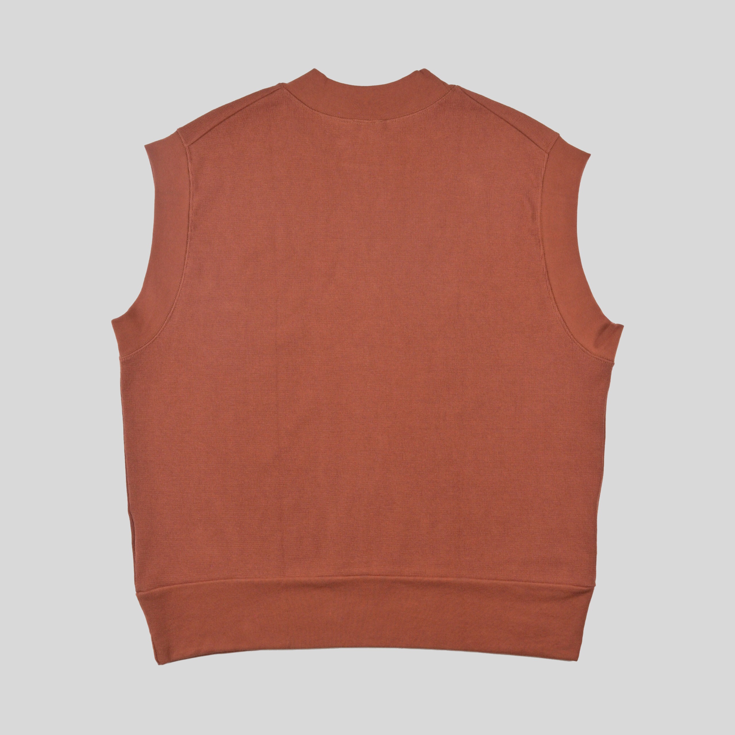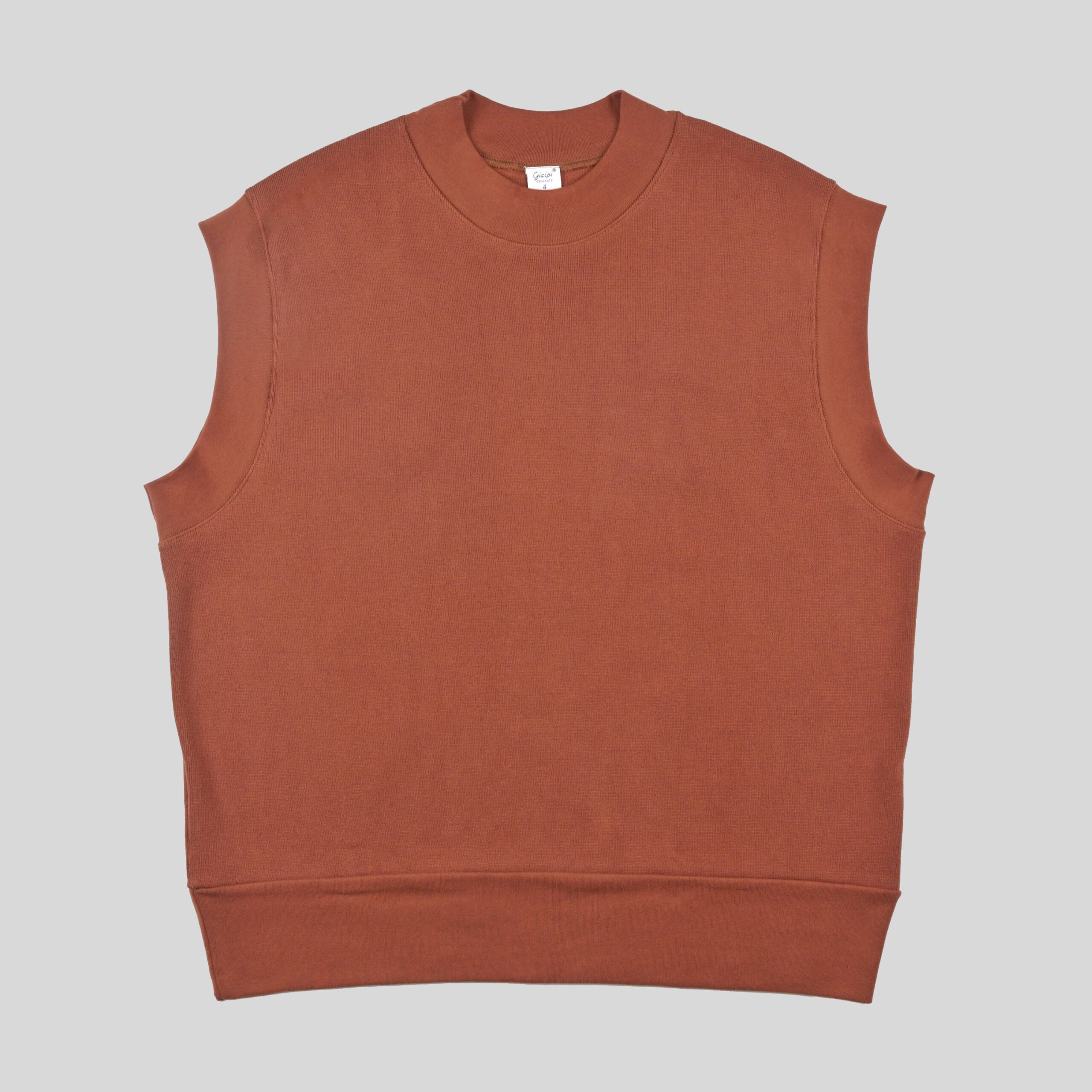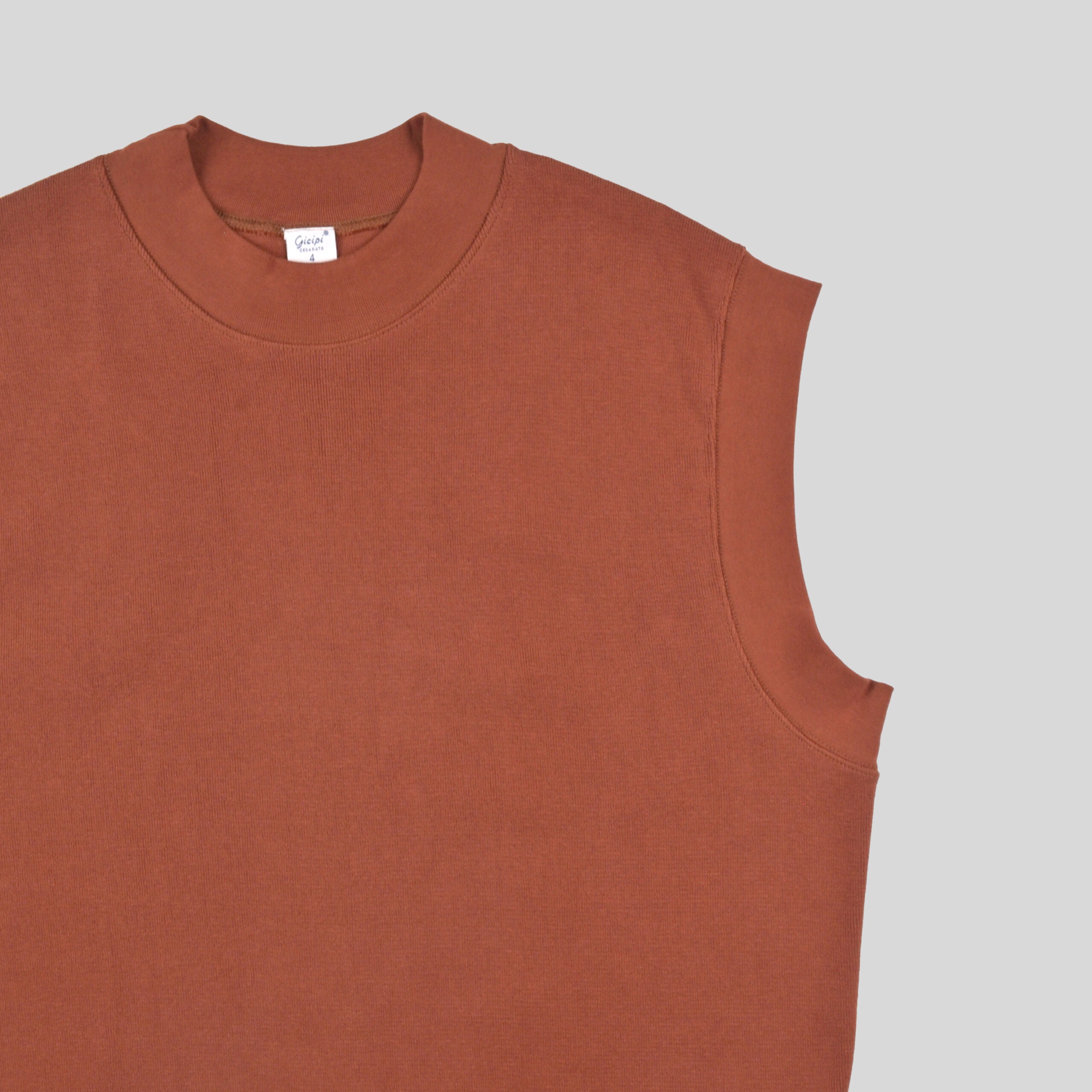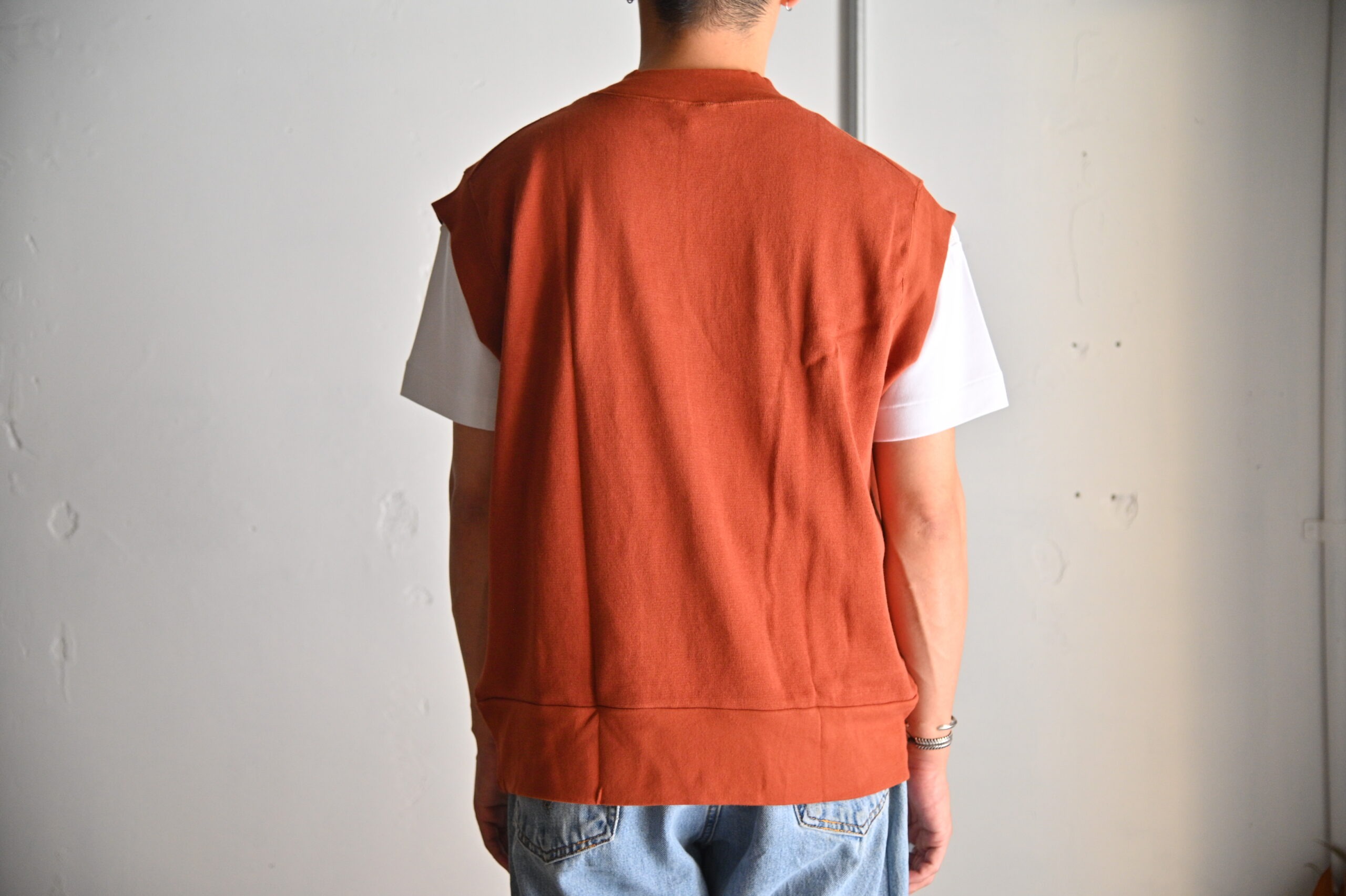 強度の高いミラノリブ編みを採用し、リラックス感のあるワイドフィットのジレを制作しました。