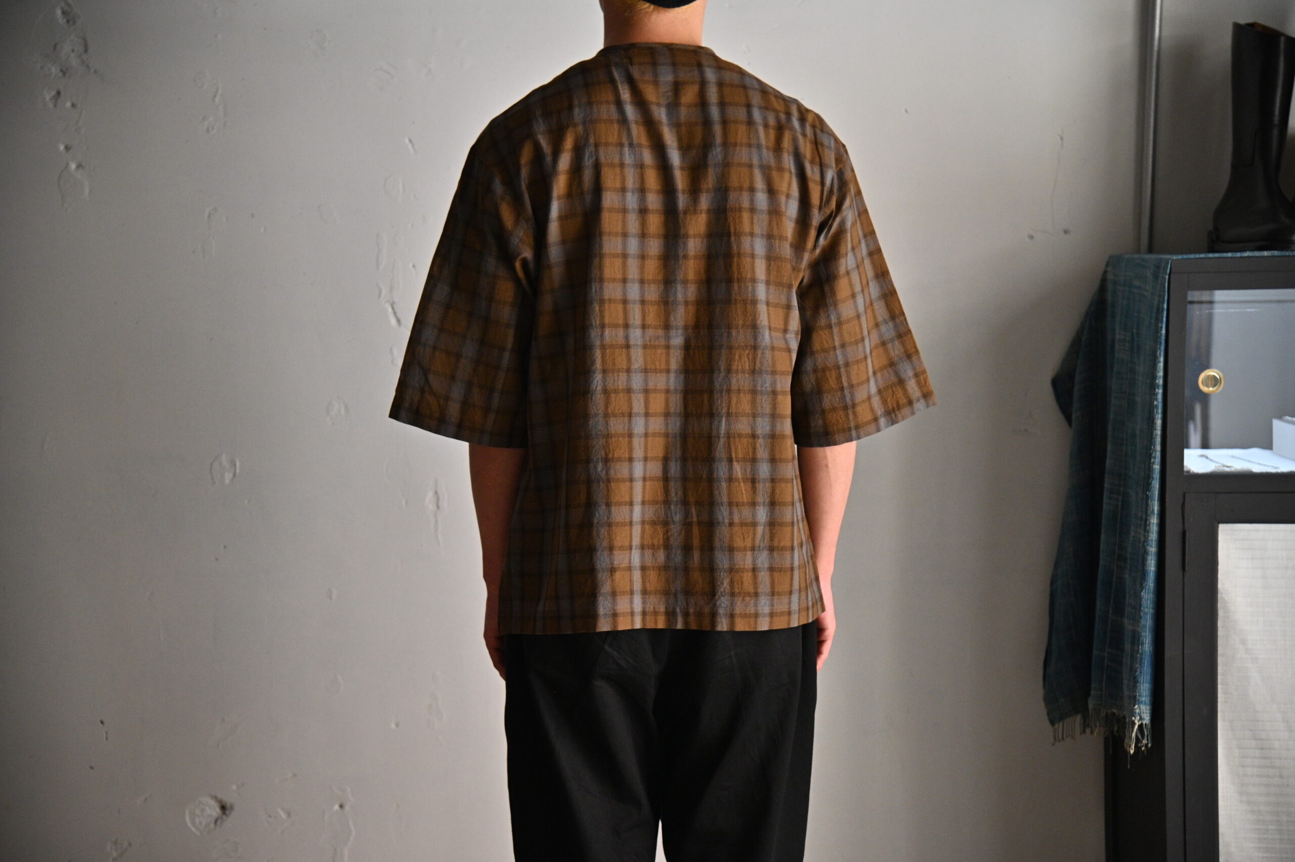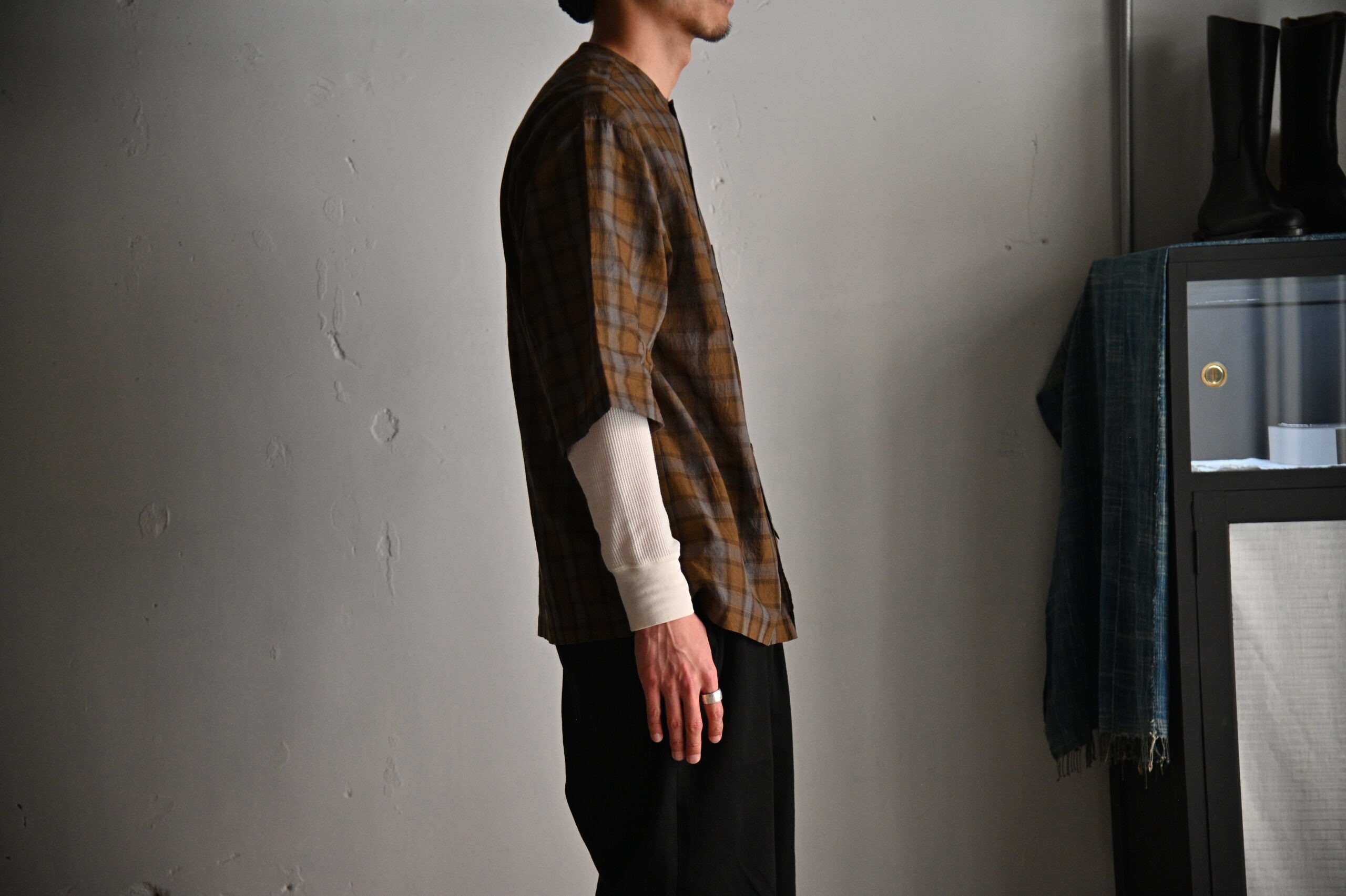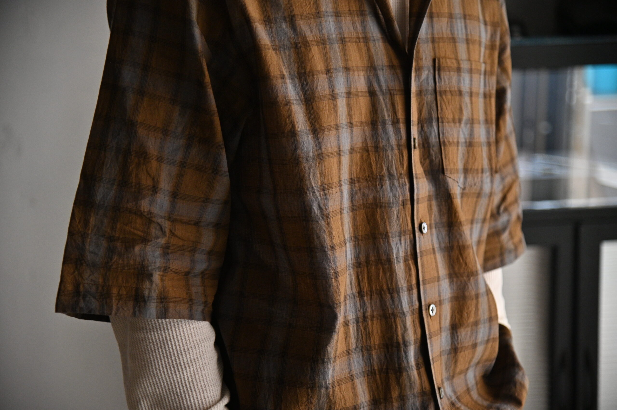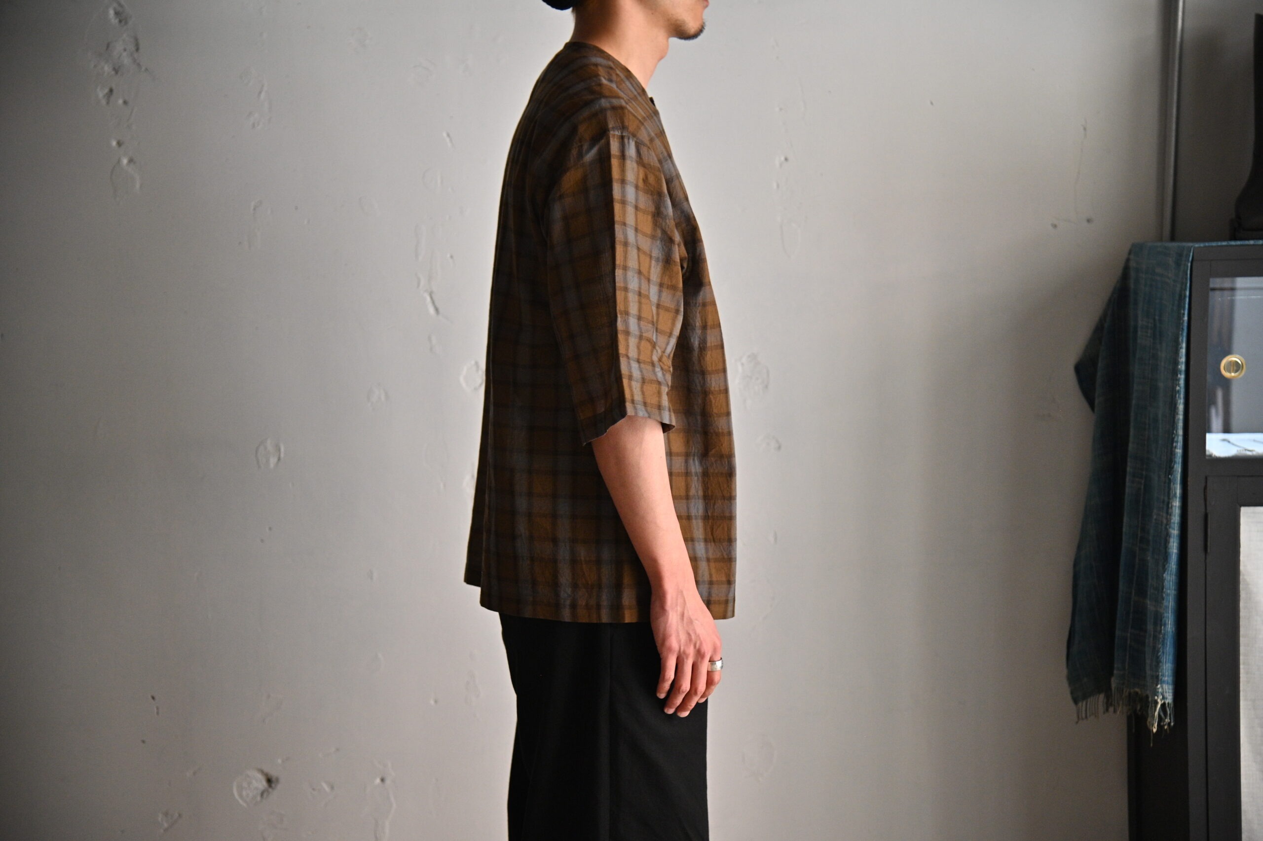 インドの伝統的な手織りによって生み出された、極細番手コットンのチェック生地を使用しています。タテヨコともに単糸で織り上げることで、軽やかさとしなやかさを併せ持ち、奥行きのある絶妙な配色が静かに際立ちます。