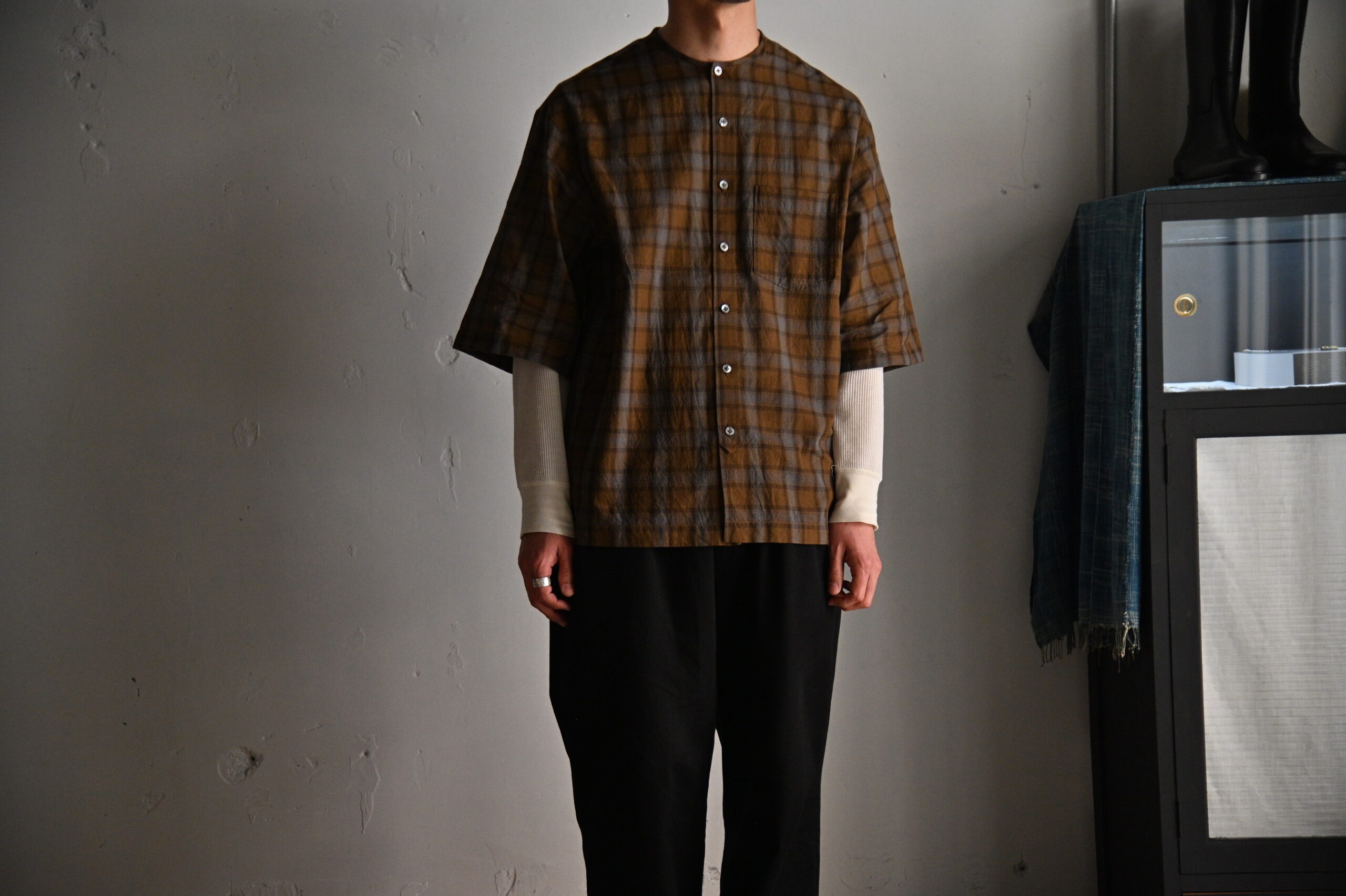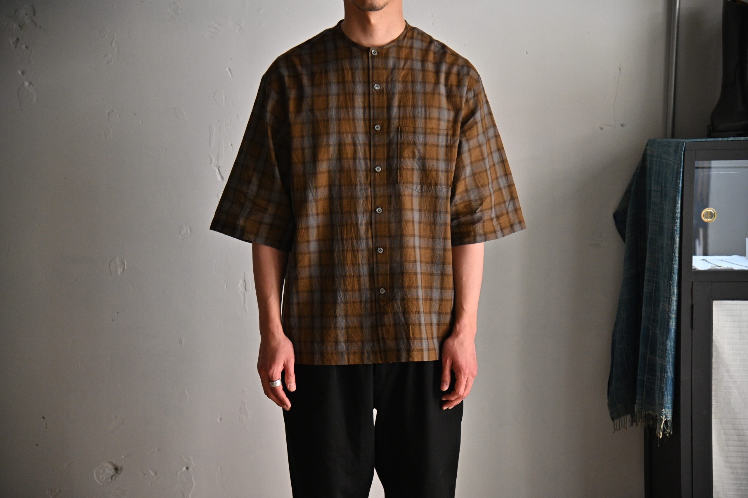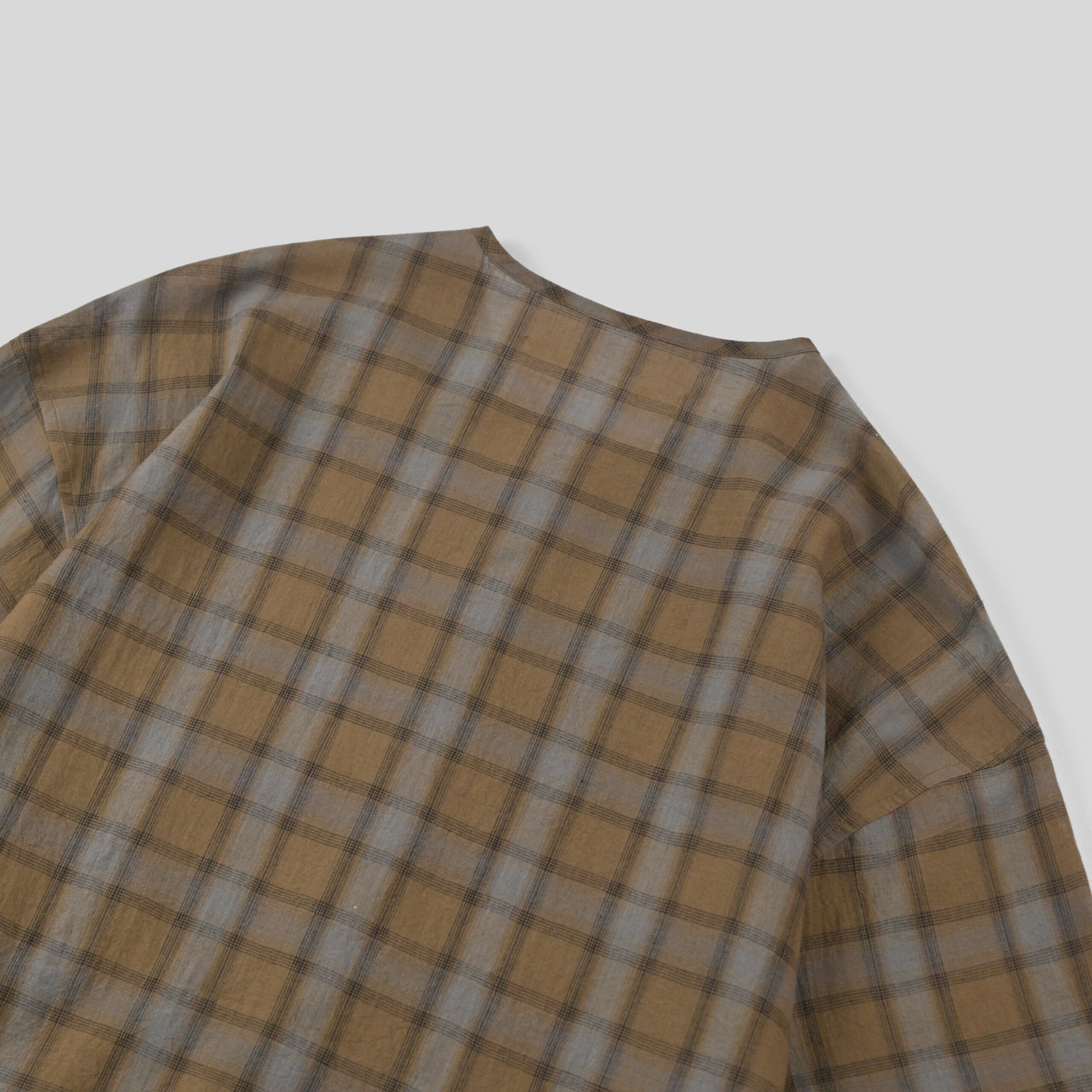 インドの伝統的な手織りによって生み出された、極細番手コットンのチェック生地を使用しています。タテヨコともに単糸で織り上げることで、軽やかさとしなやかさを併せ持ち、奥行きのある絶妙な配色が静かに際立ちます。