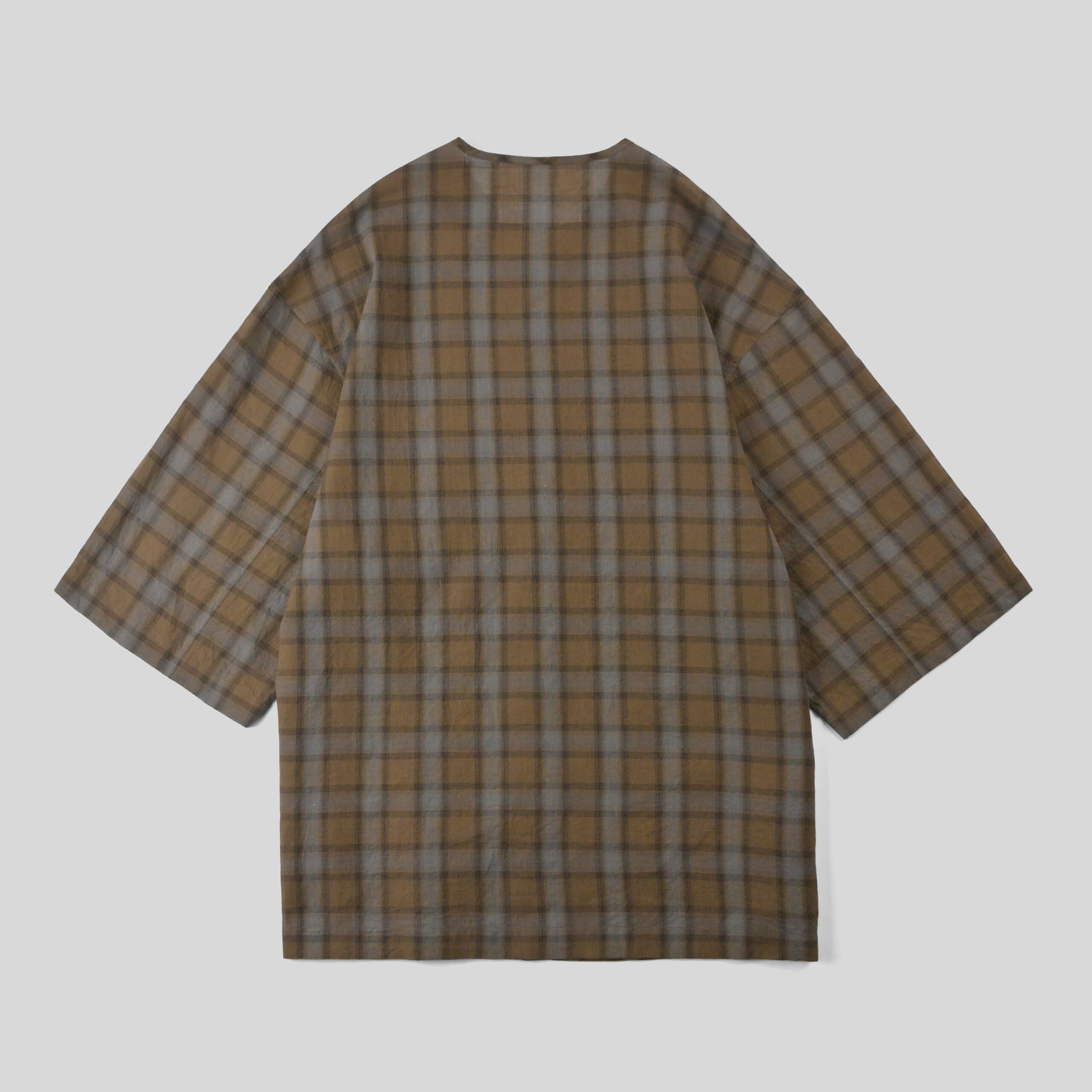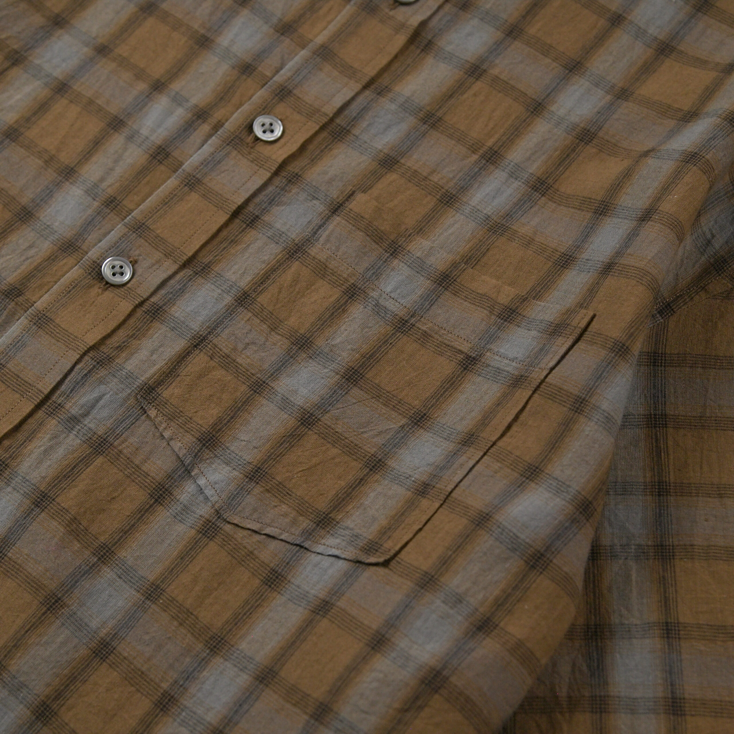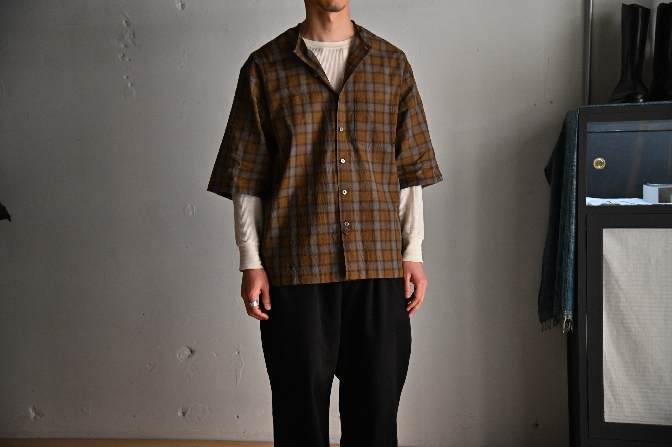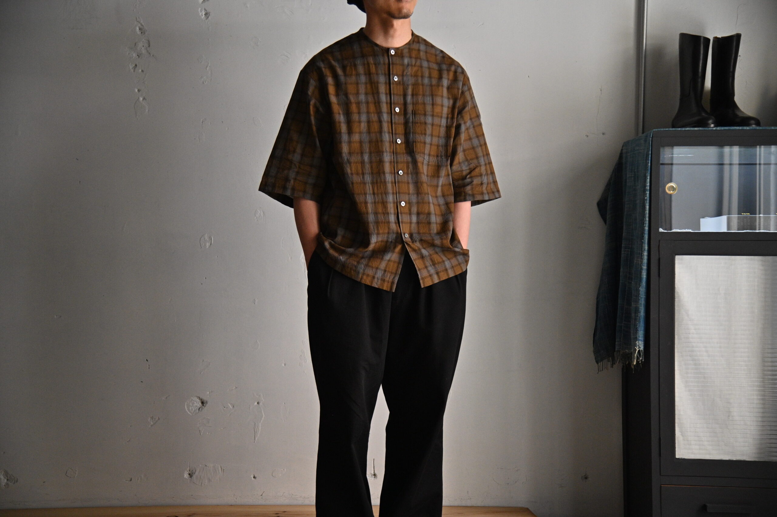 インドの伝統的な手織りによって生み出された、極細番手コットンのチェック生地を使用しています。タテヨコともに単糸で織り上げることで、軽やかさとしなやかさを併せ持ち、奥行きのある絶妙な配色が静かに際立ちます。