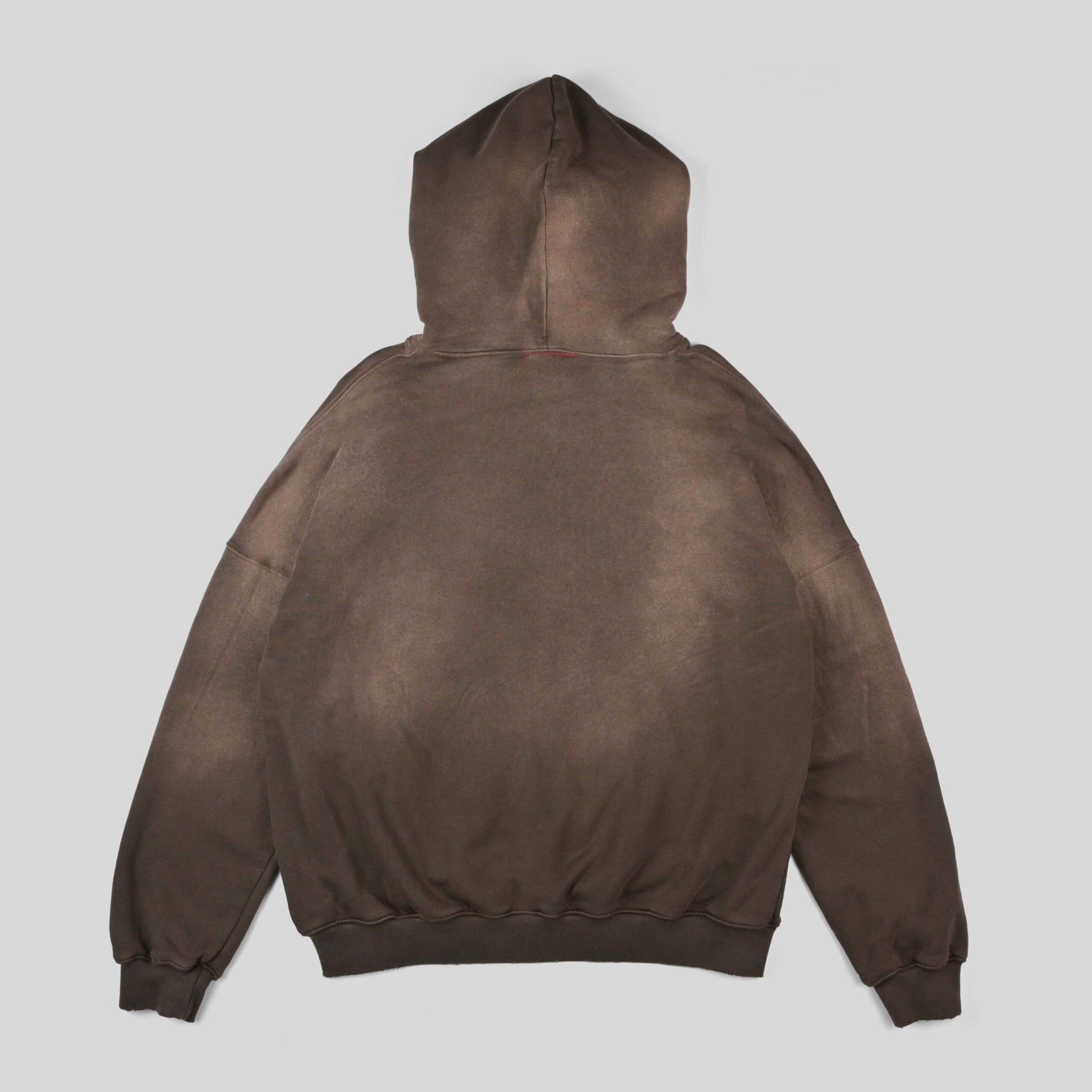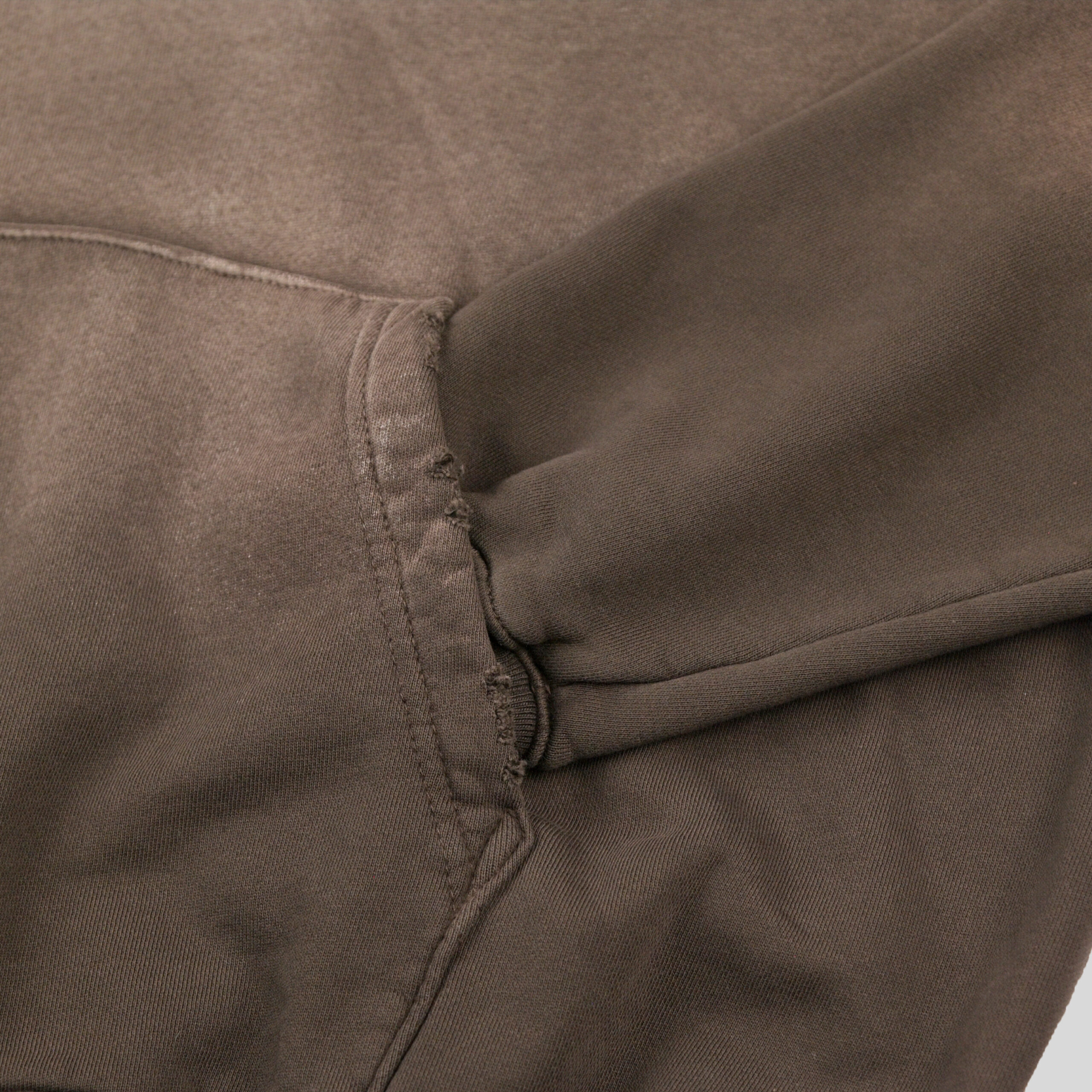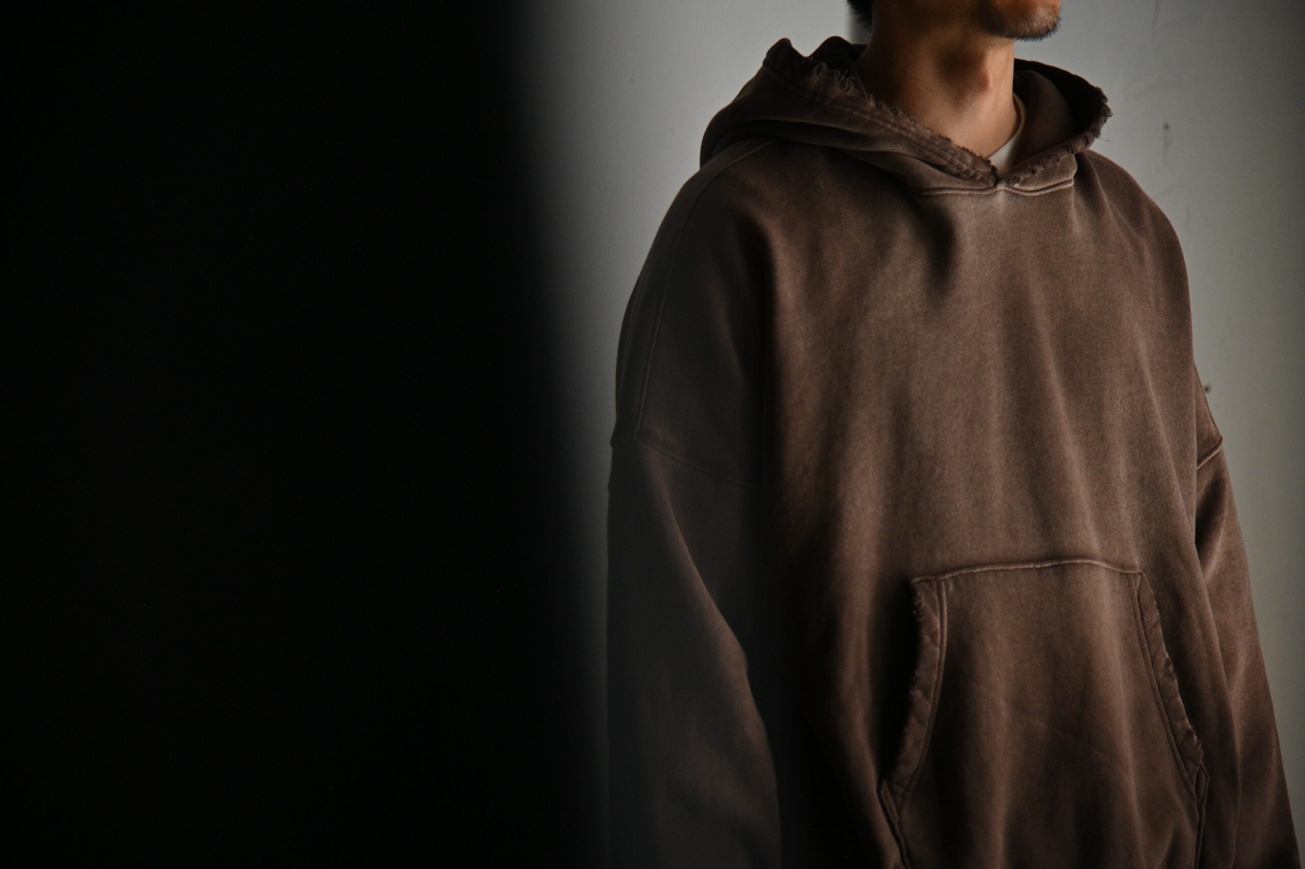 長年使い込まれたかのようにリアルな褪色&ダメージ加工が施されたスウェットパーカー。