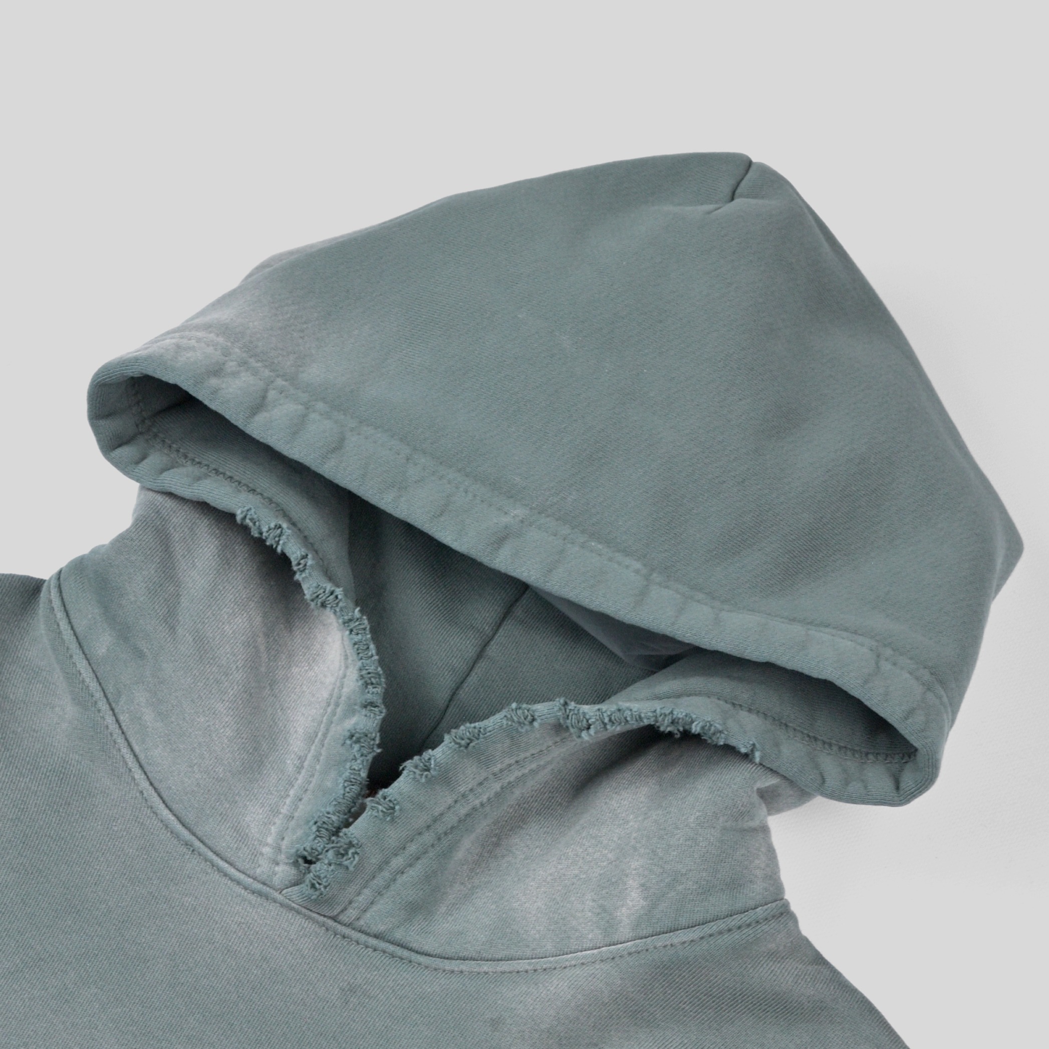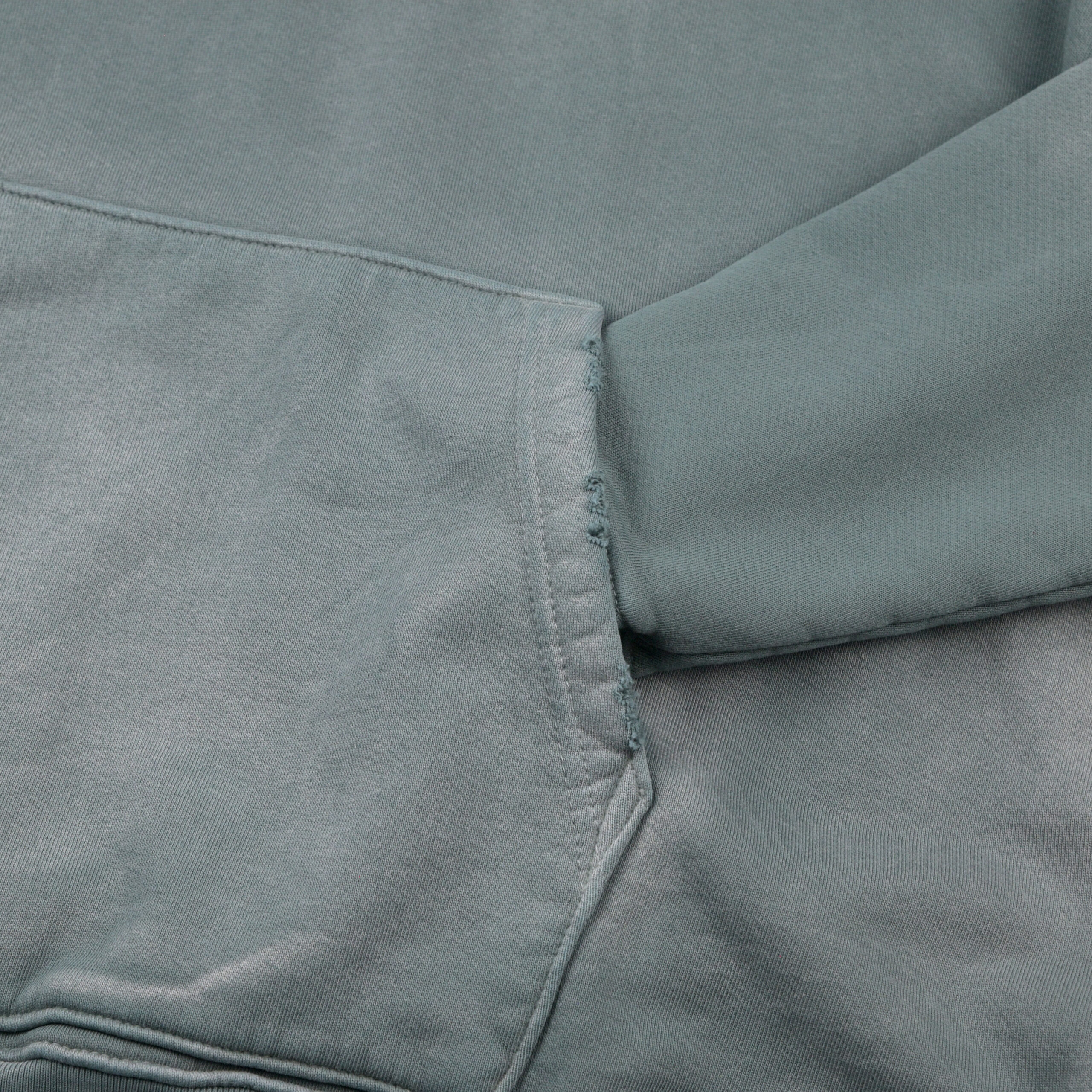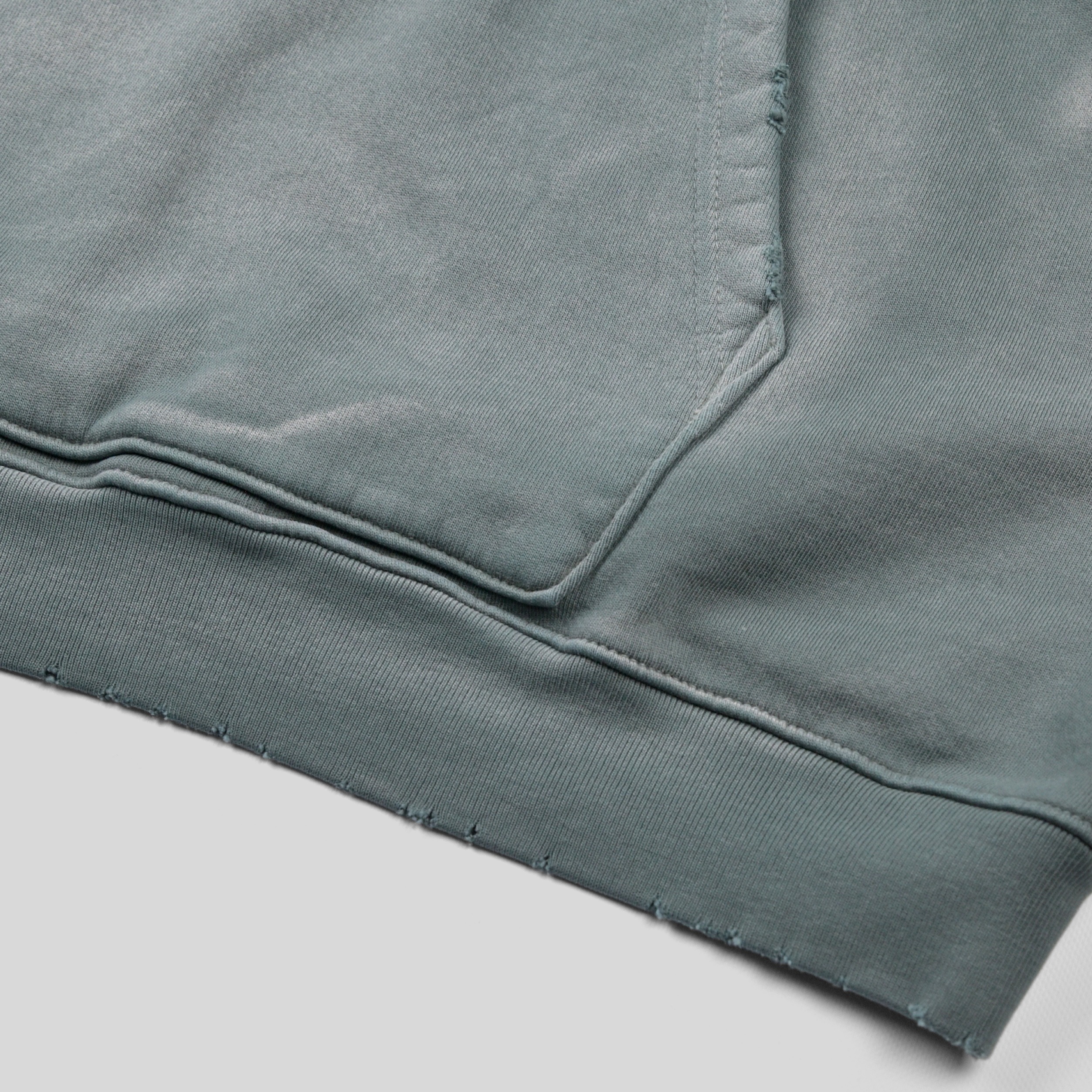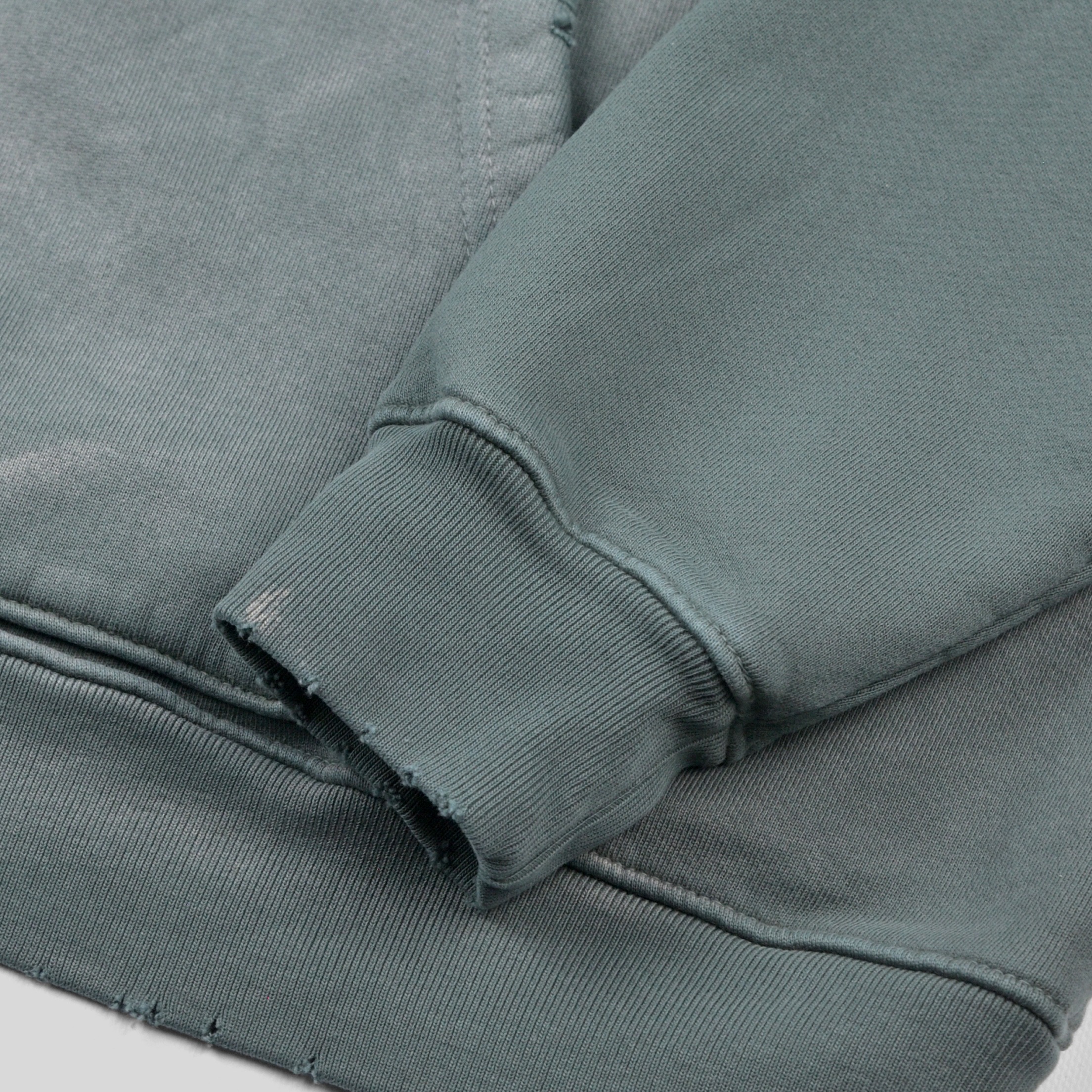 長年使い込まれたかのようにリアルな褪色&ダメージ加工が施されたスウェットパーカー。