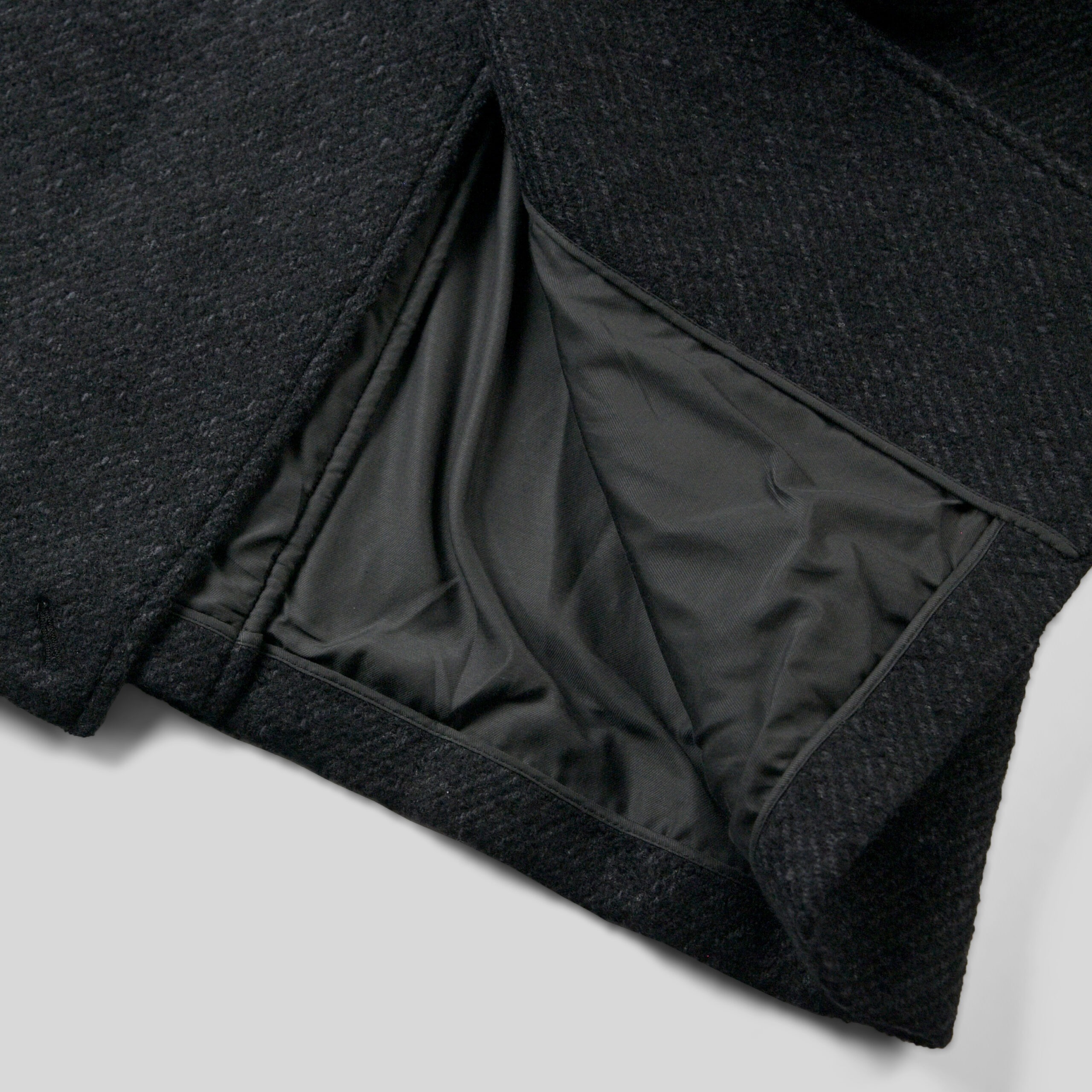 またベンチメイドで丁寧にハンドクラフトされた細部はとても美しいクオリティとなります。バックスタイルに配された深目のスリットは、フルオープンにすることでクラシックな空気感の中で一際ユニークな存在に映るでしょう。