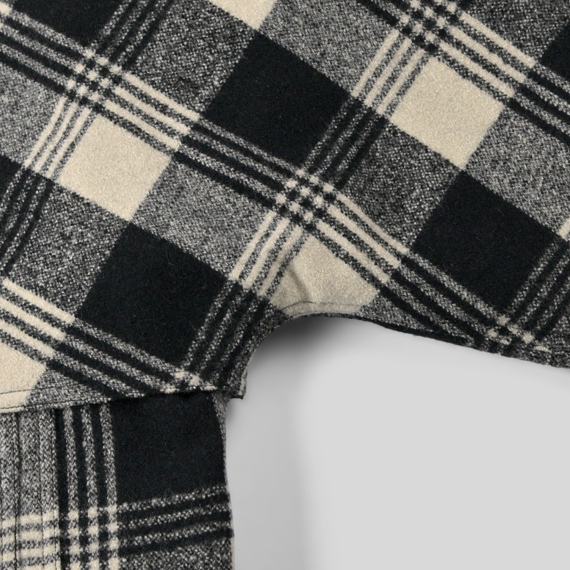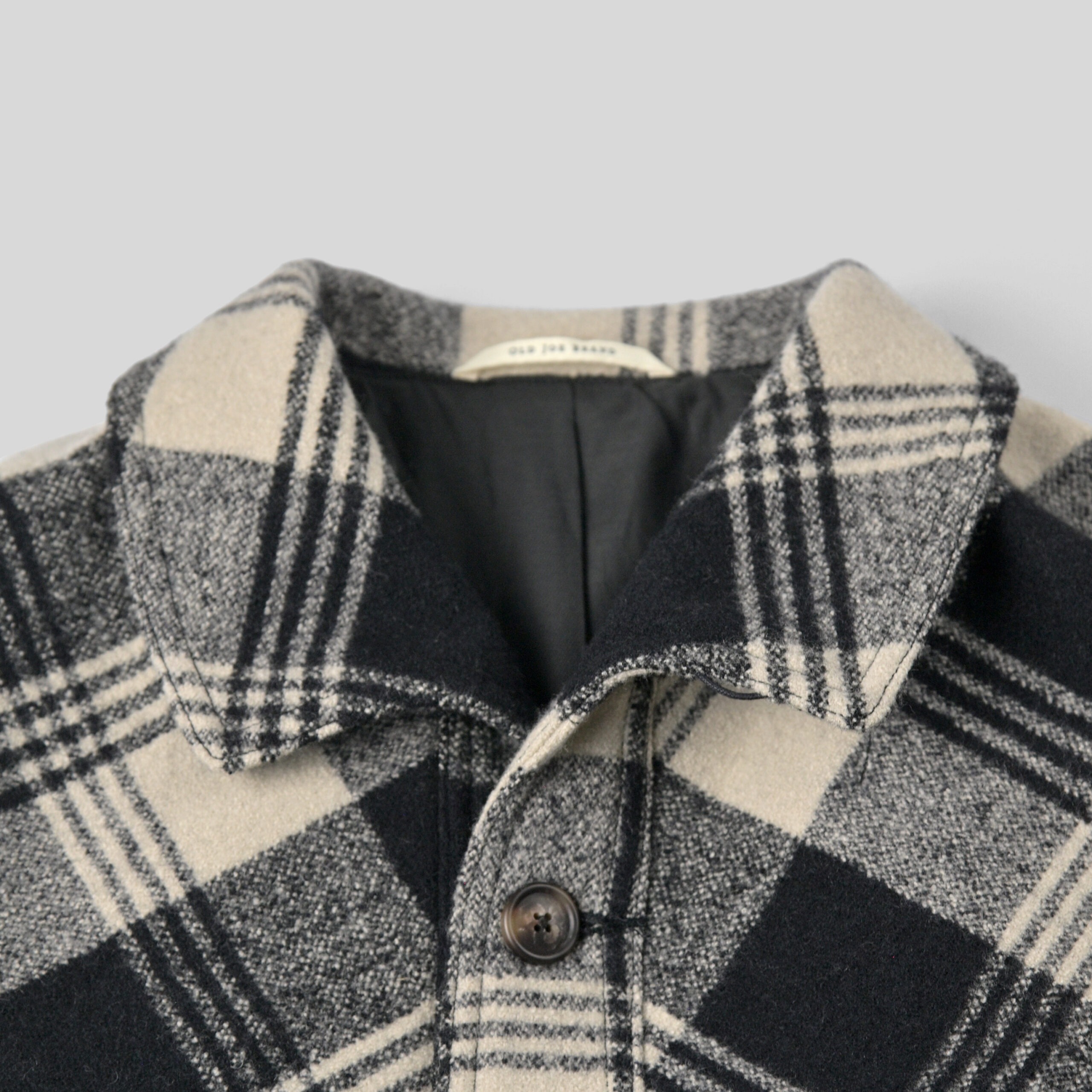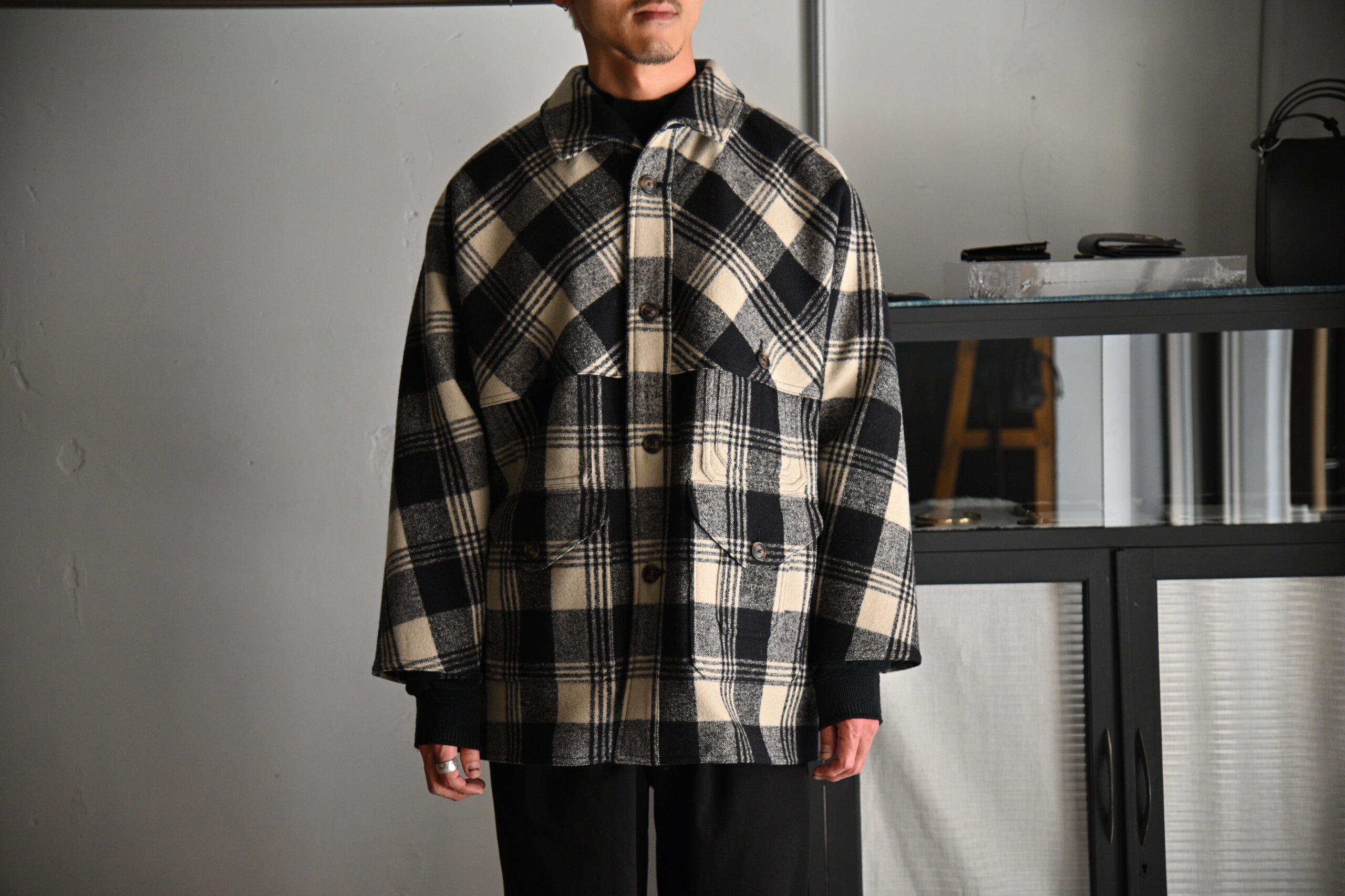 また襟はボタンを備えているので、スタンドカラーとしての側面も併せ持っています。ブークレーヤーンを用いて織り上げたメルトンは不均一かつモダンな表情を持っており都市生活者のためのコンフォタブルなフィッティングラインは、アーカイブピースの持つそれとは別物でとても品の良い佇まいを見せる。