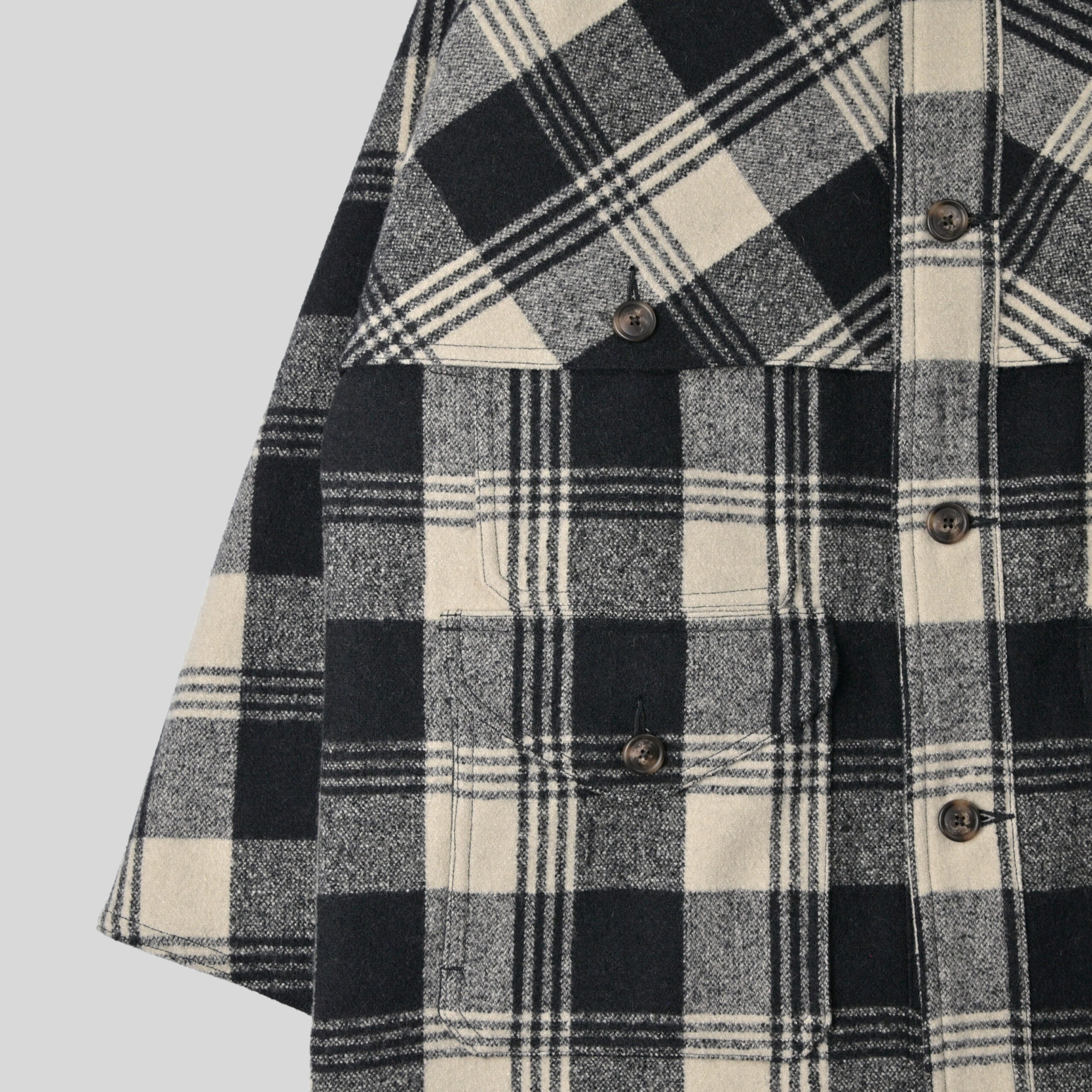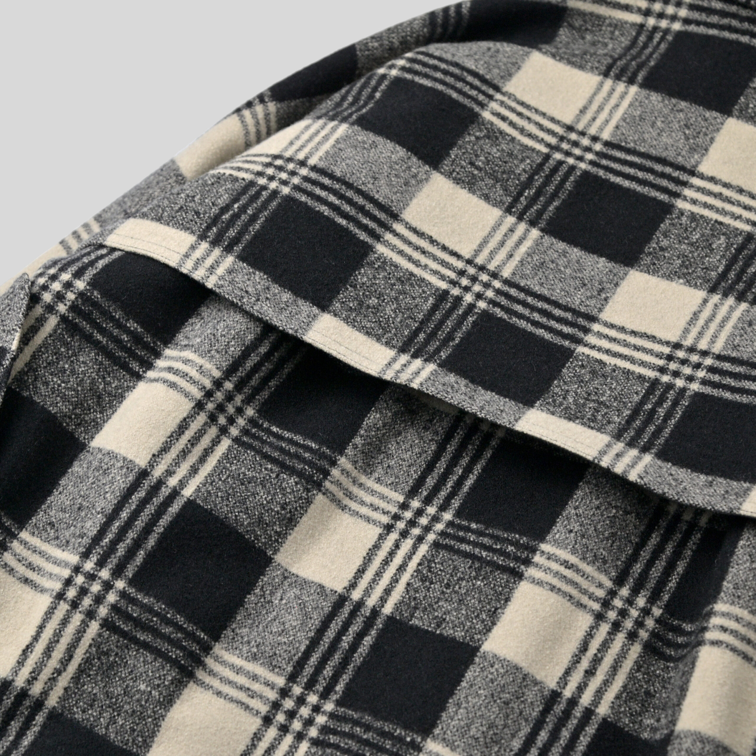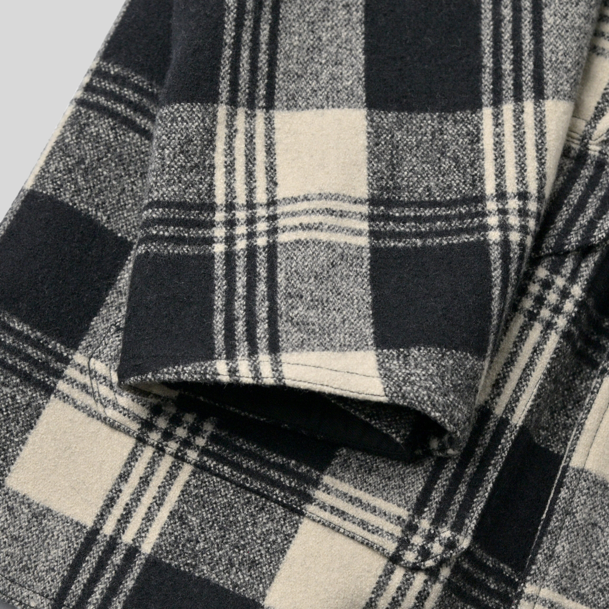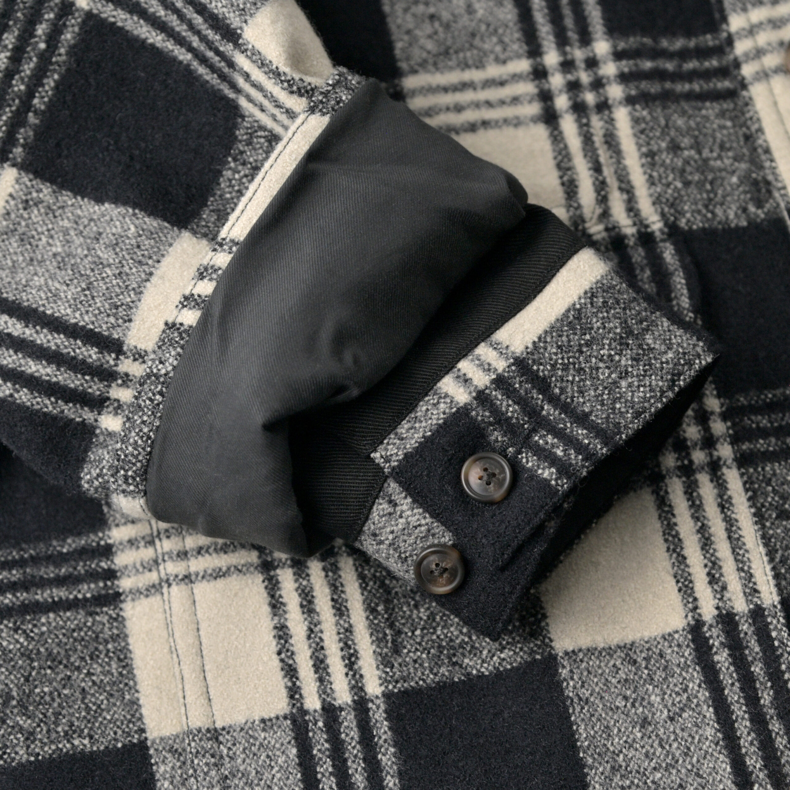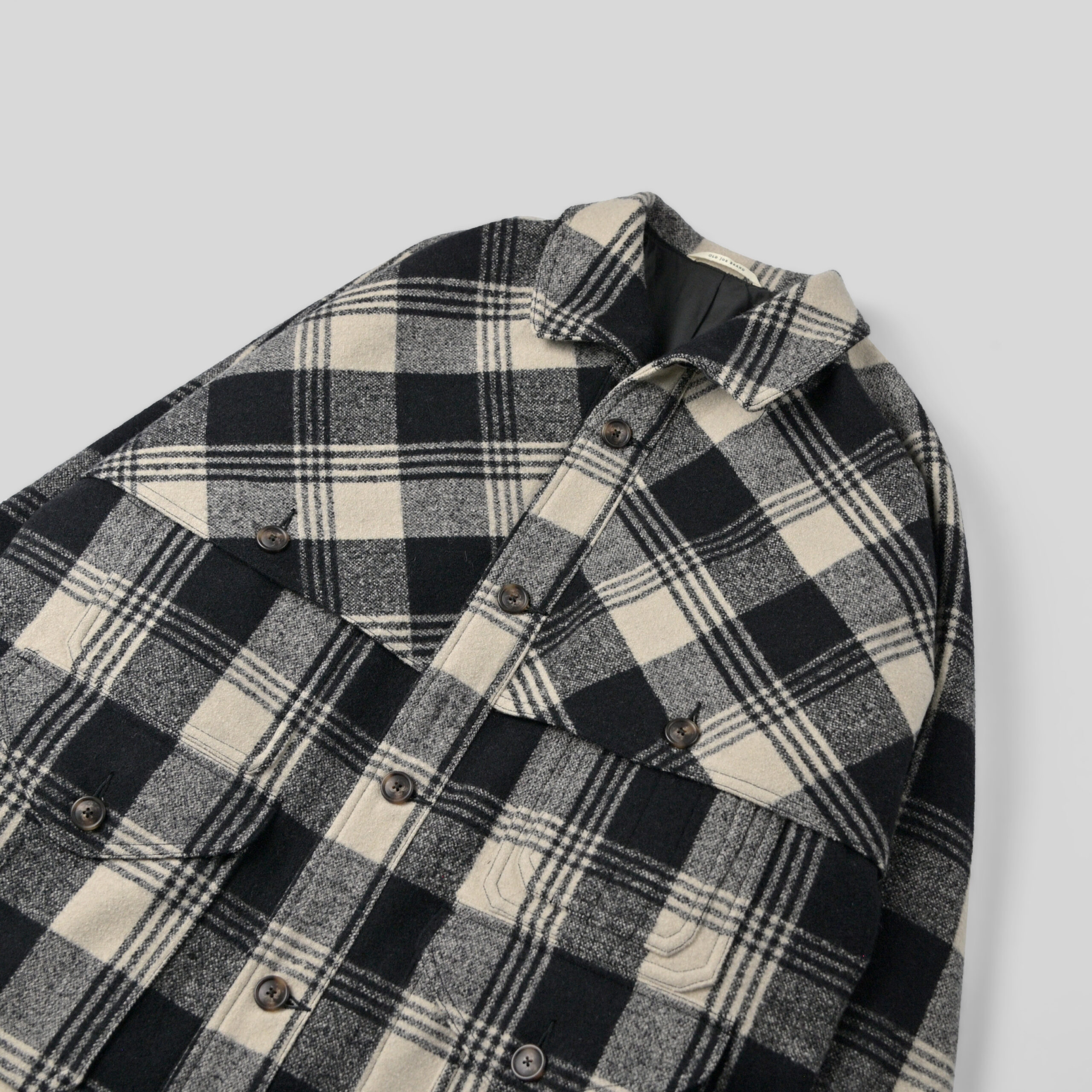 ハンティングウェアの代表的なデザインであるダブルヨーク&スリーブ、ゲームポケットを配し、見返しから弧を描くように設計された小振りなワンピースカラーが美しい。