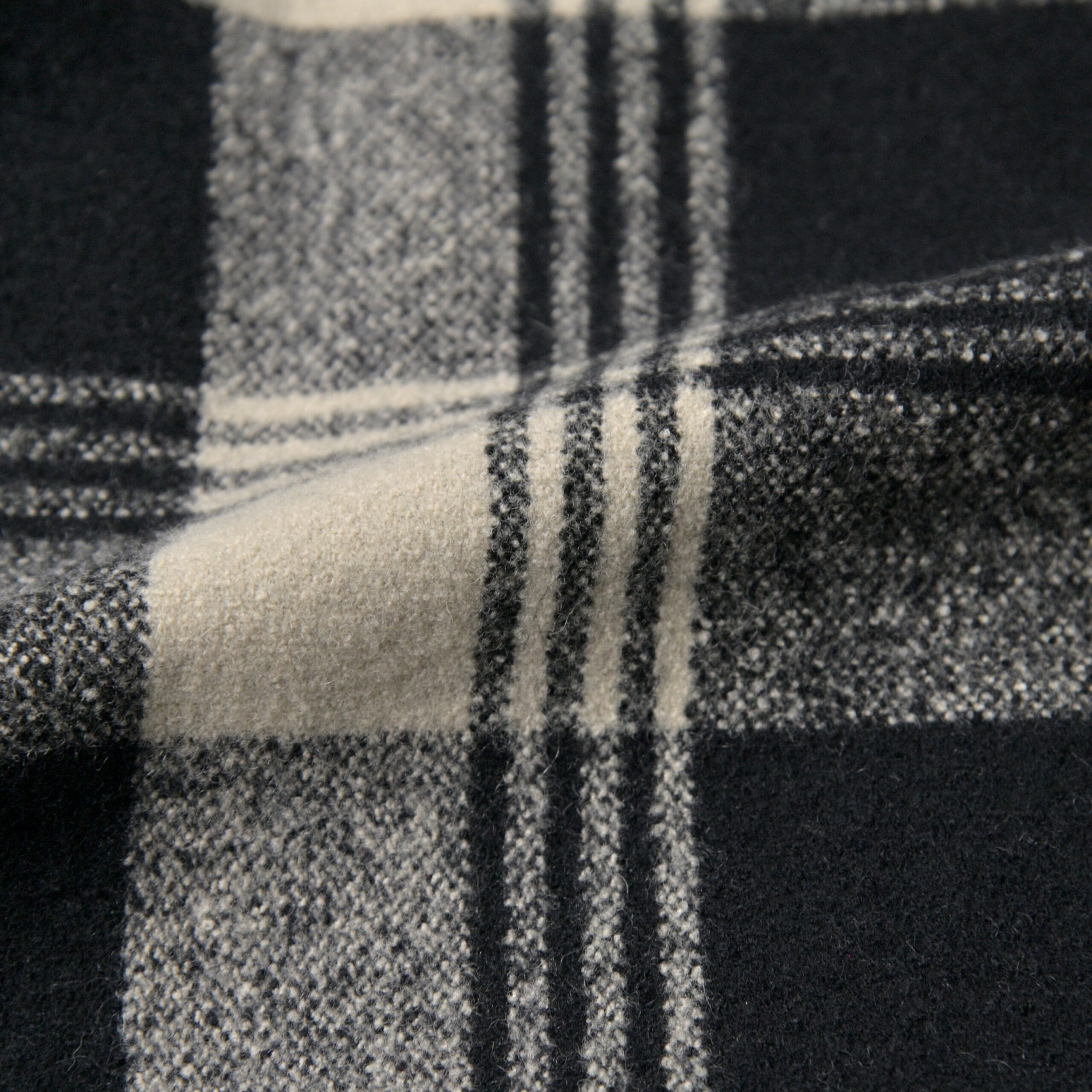 織組織をツイルではなくブロークンツイルにすることで、規則的な綾目が見えず不規則な見え方が特徴。仕上げは縮絨をさせて縮ませ、適度な肉感を表現しております。
