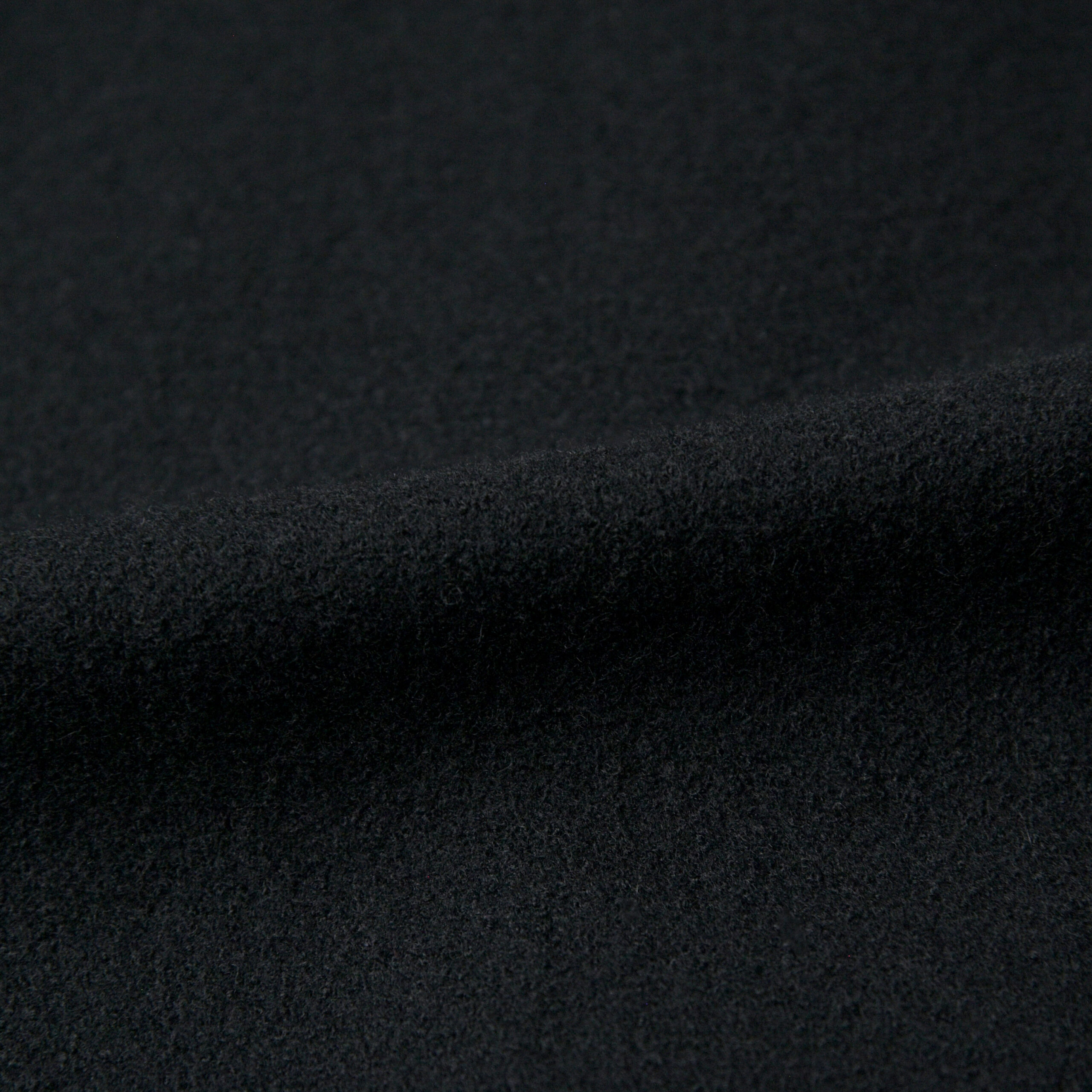 織組織をツイルではなくブロークンツイルにすることで、規則的な綾目が見えず不規則な見え方が特徴。仕上げは縮絨をさせて縮ませ、適度な肉感を表現しております。