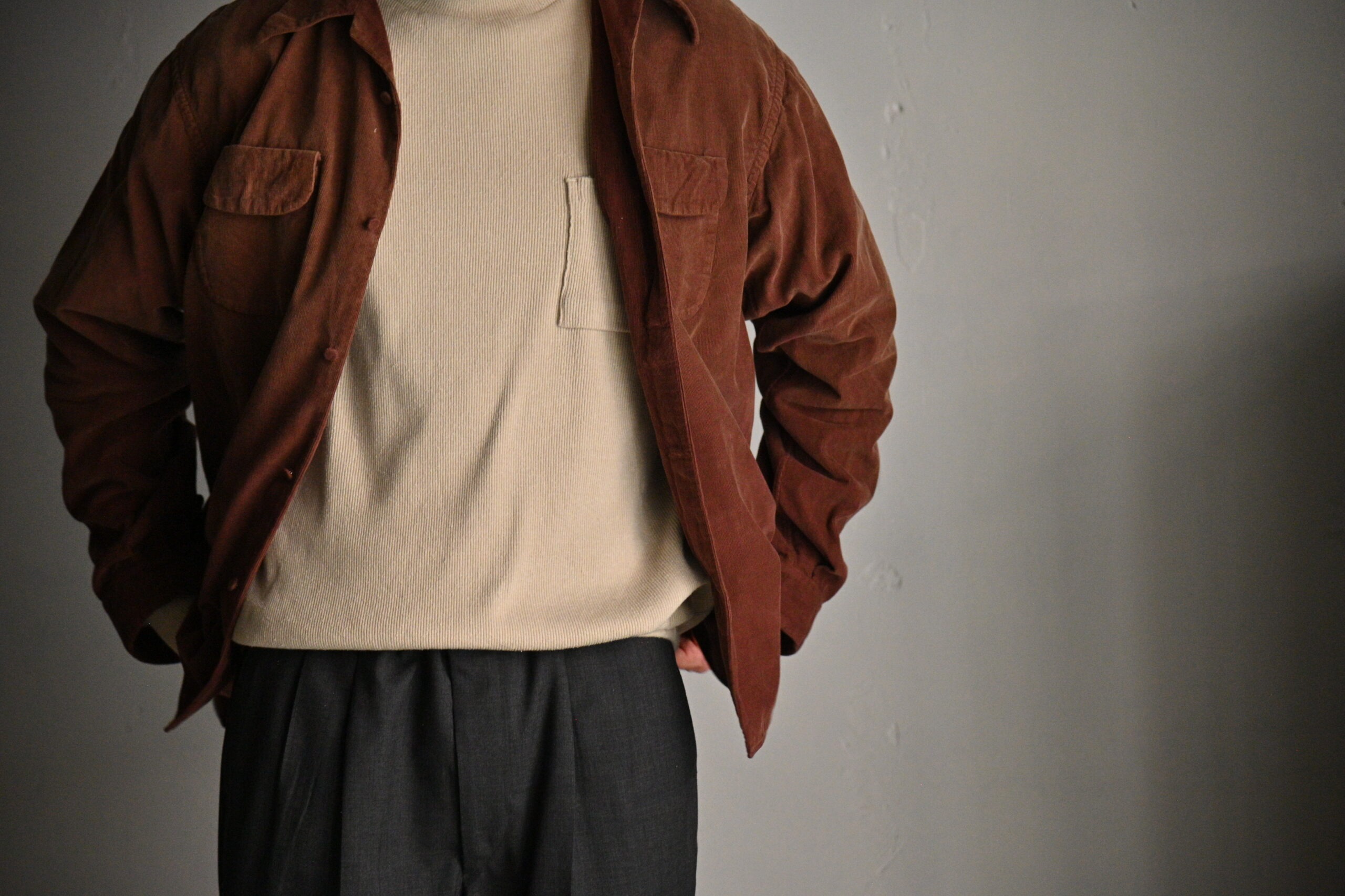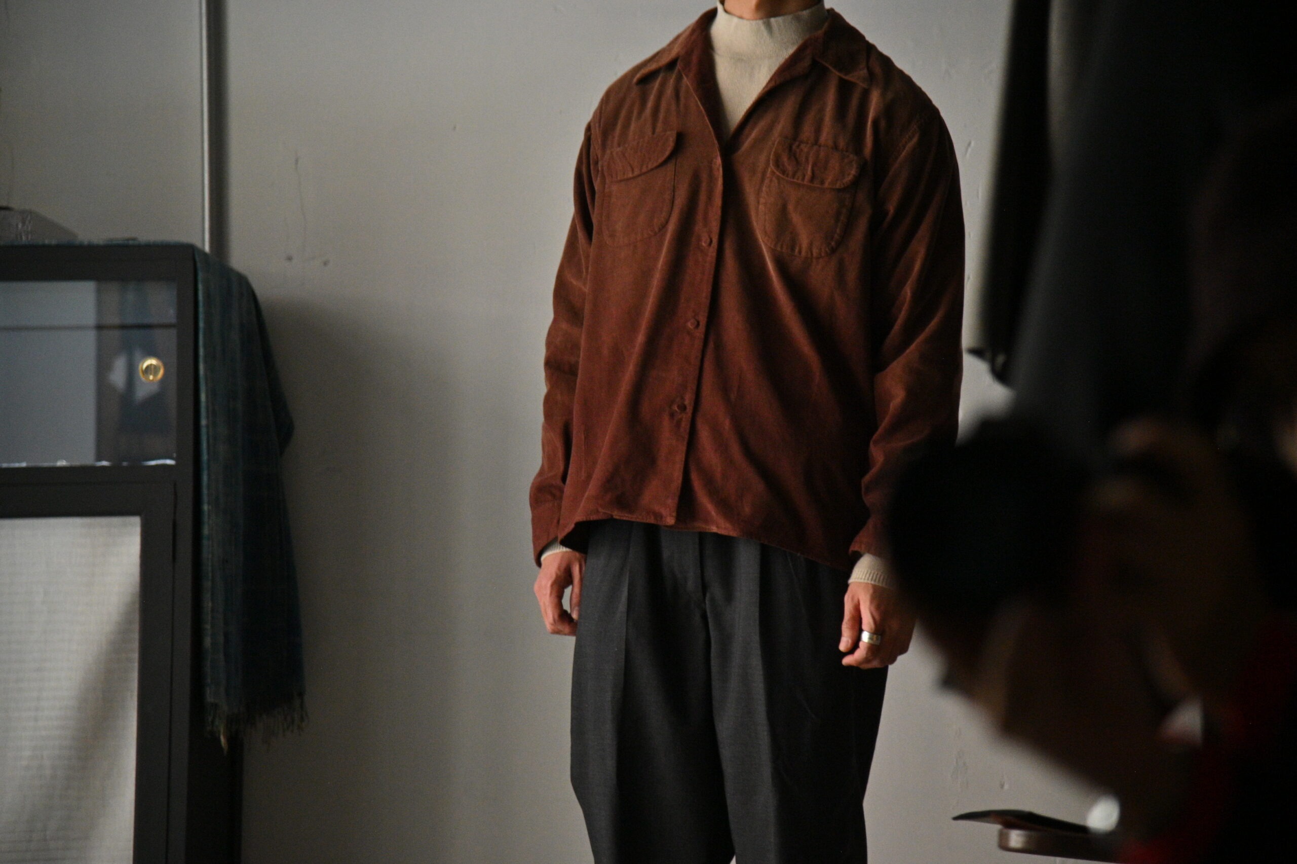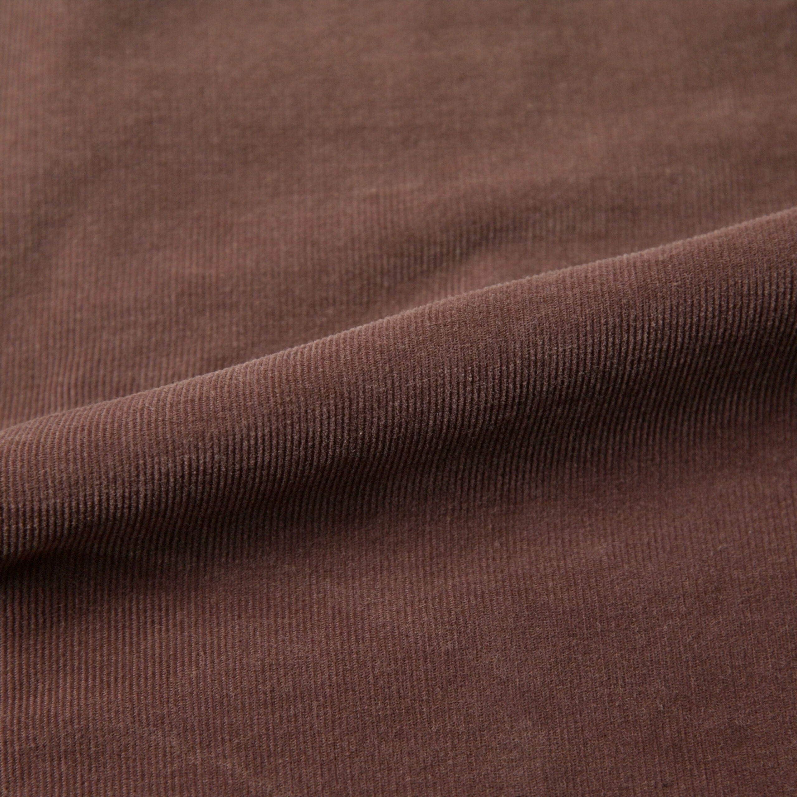 タテヨコとも綿番40/1を使用したシャツコール。21ウェルの細い畝で、起毛感の温かみを持ちながらも、薄くて軽い柔らかさが特徴。