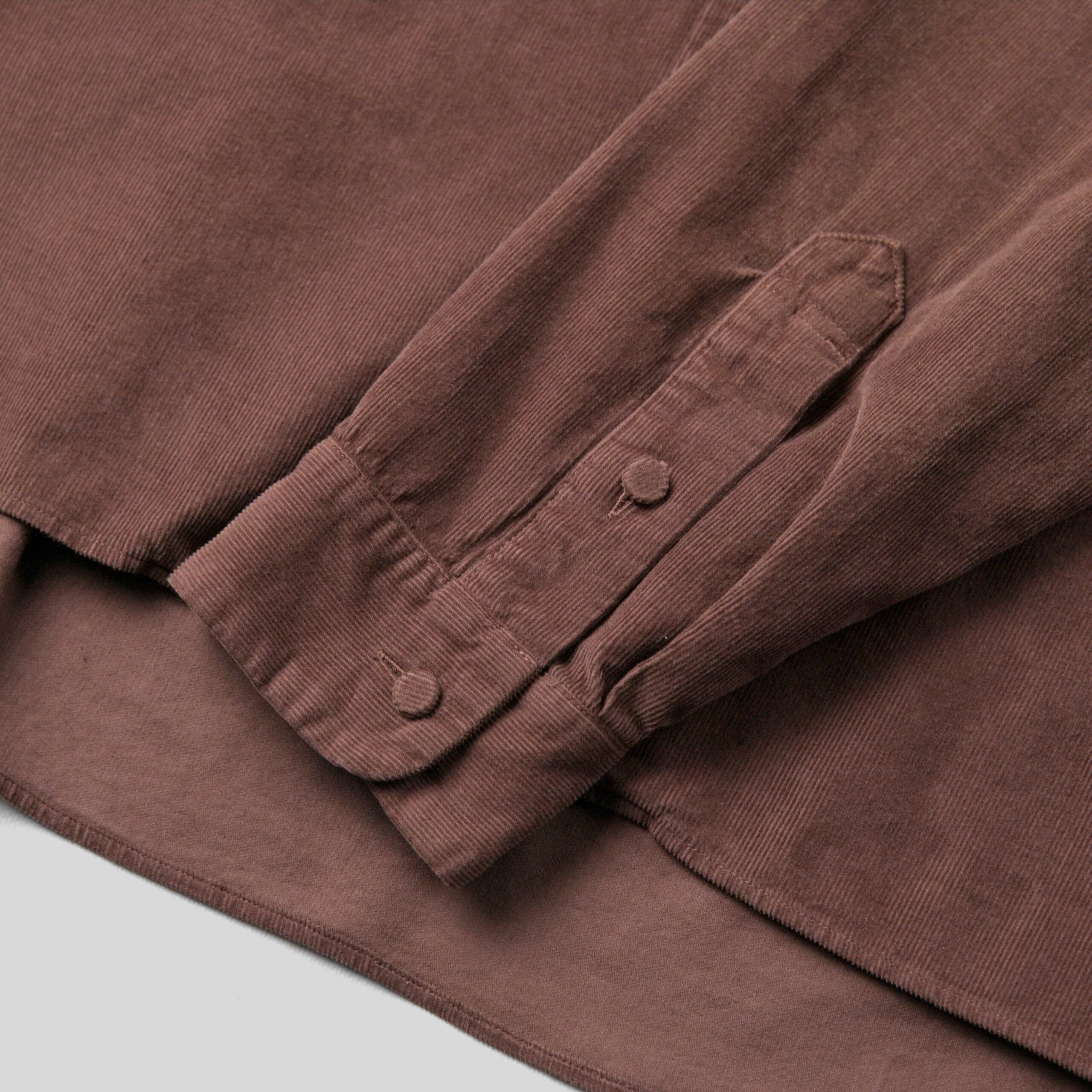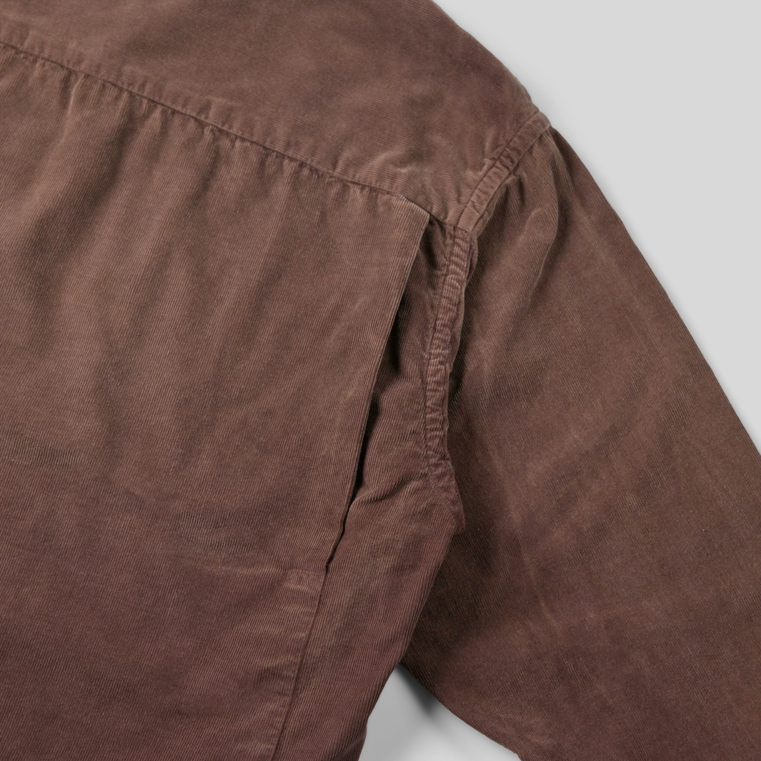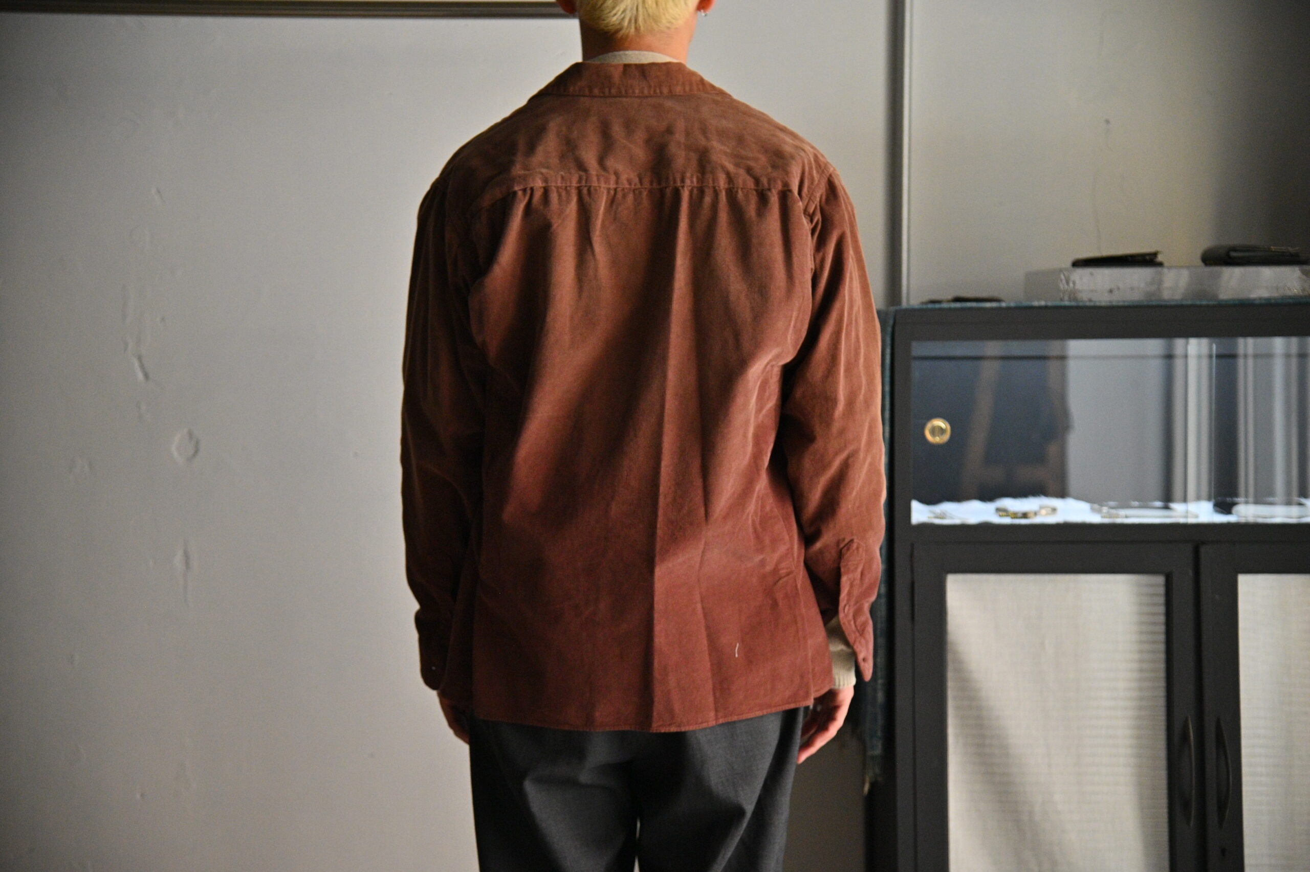 タテヨコとも綿番40/1を使用したシャツコール。21ウェルの細い畝で、起毛感の温かみを持ちながらも、薄くて軽い柔らかさが特徴。