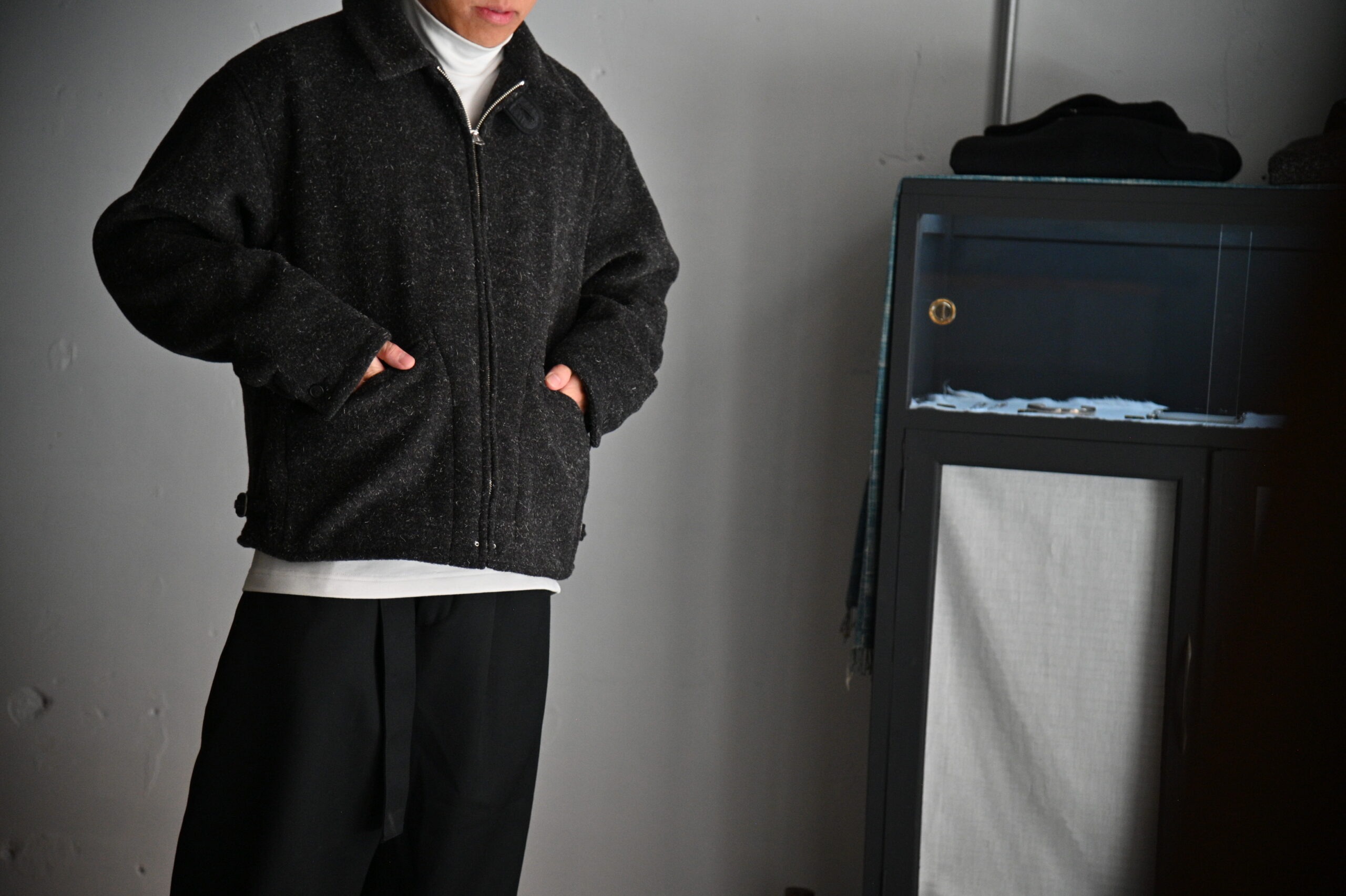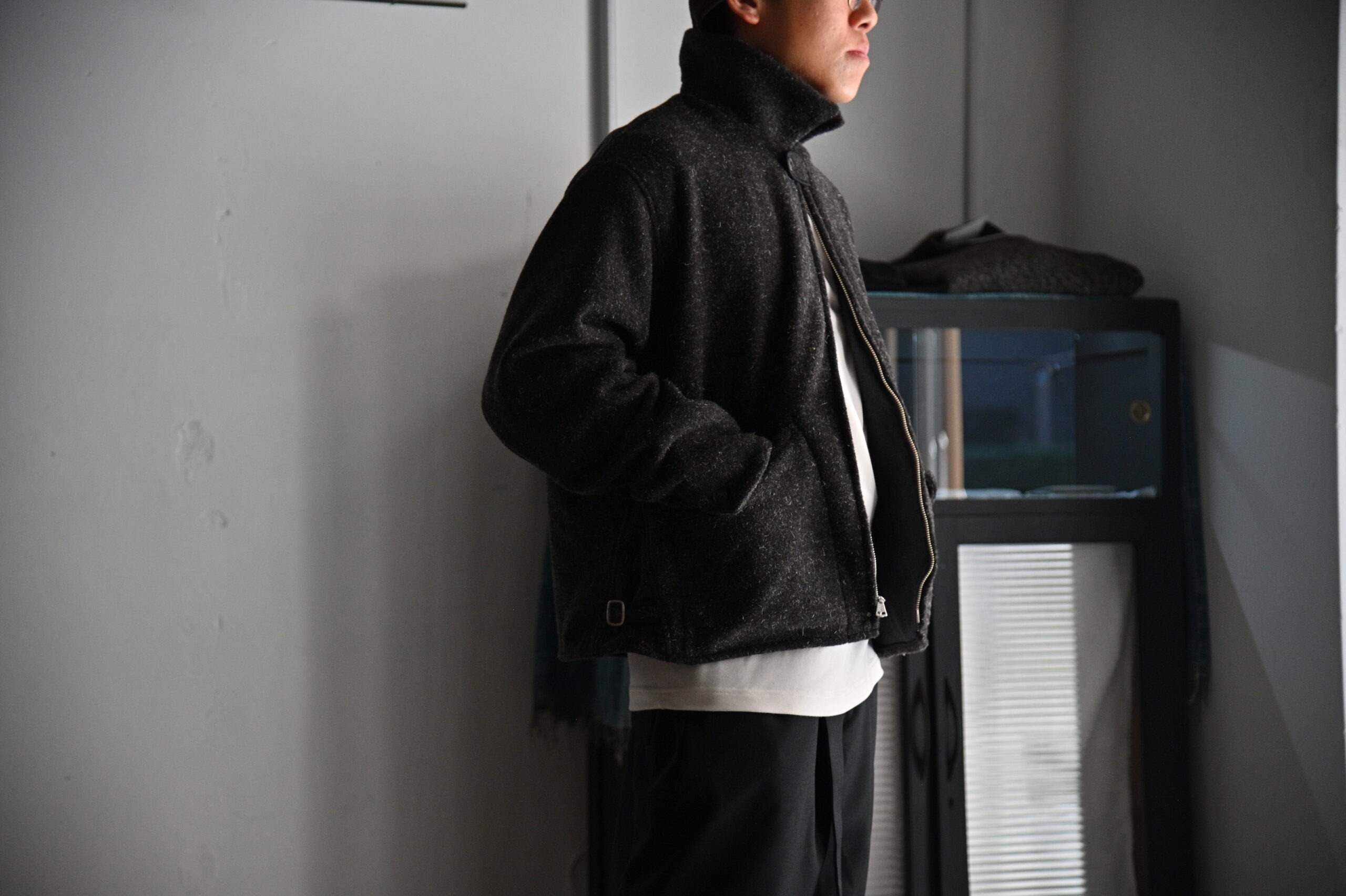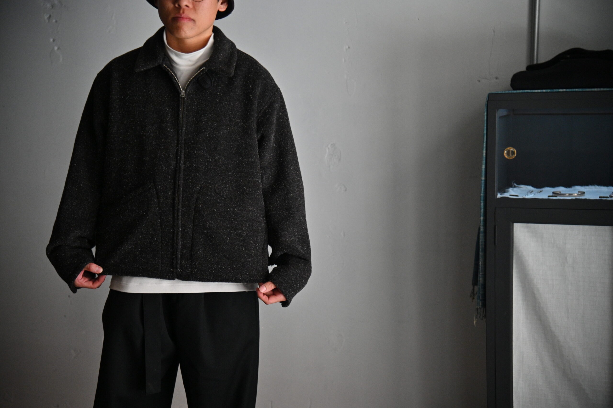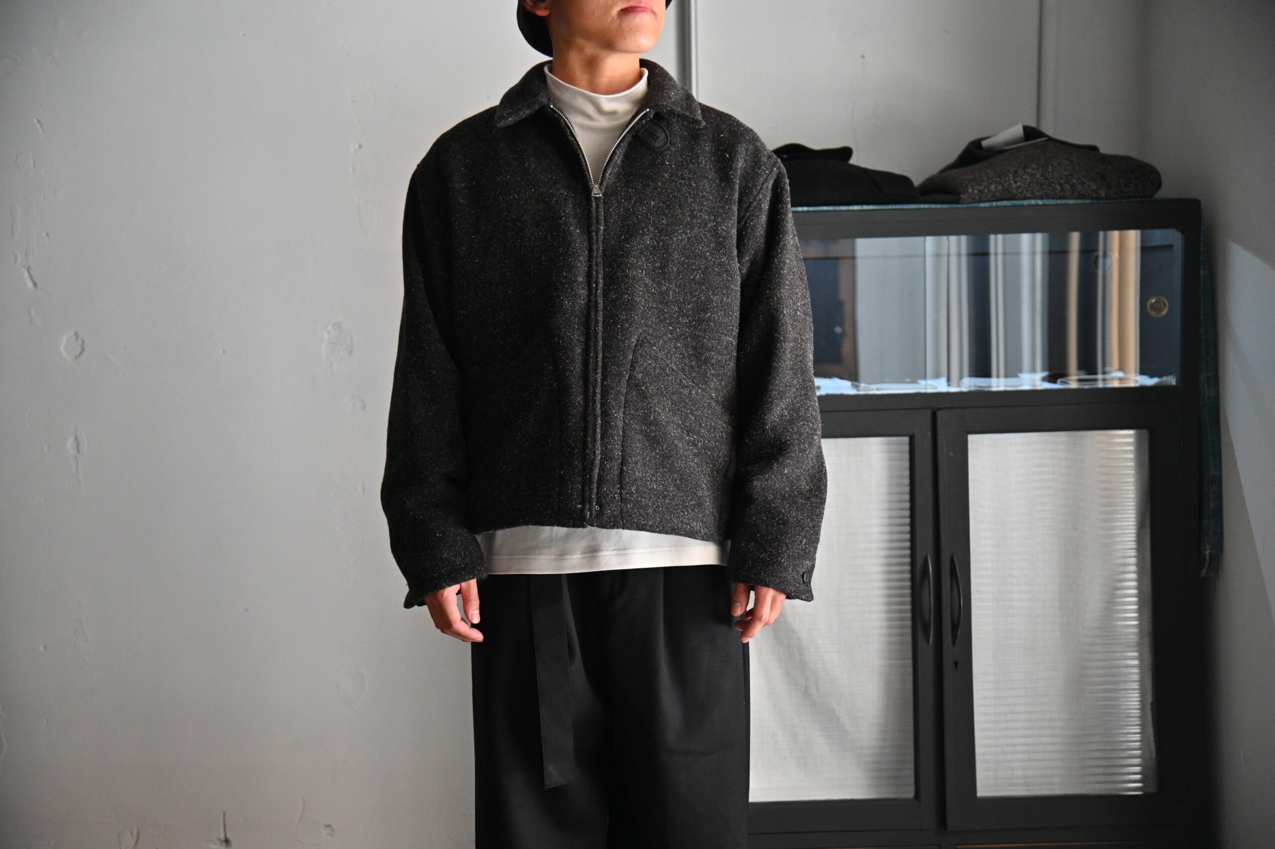 綺シンプルなジップフロントのショートジャケットはワークウェアの黎明期と言われる1930年代への敬意を評したピースとなります。
