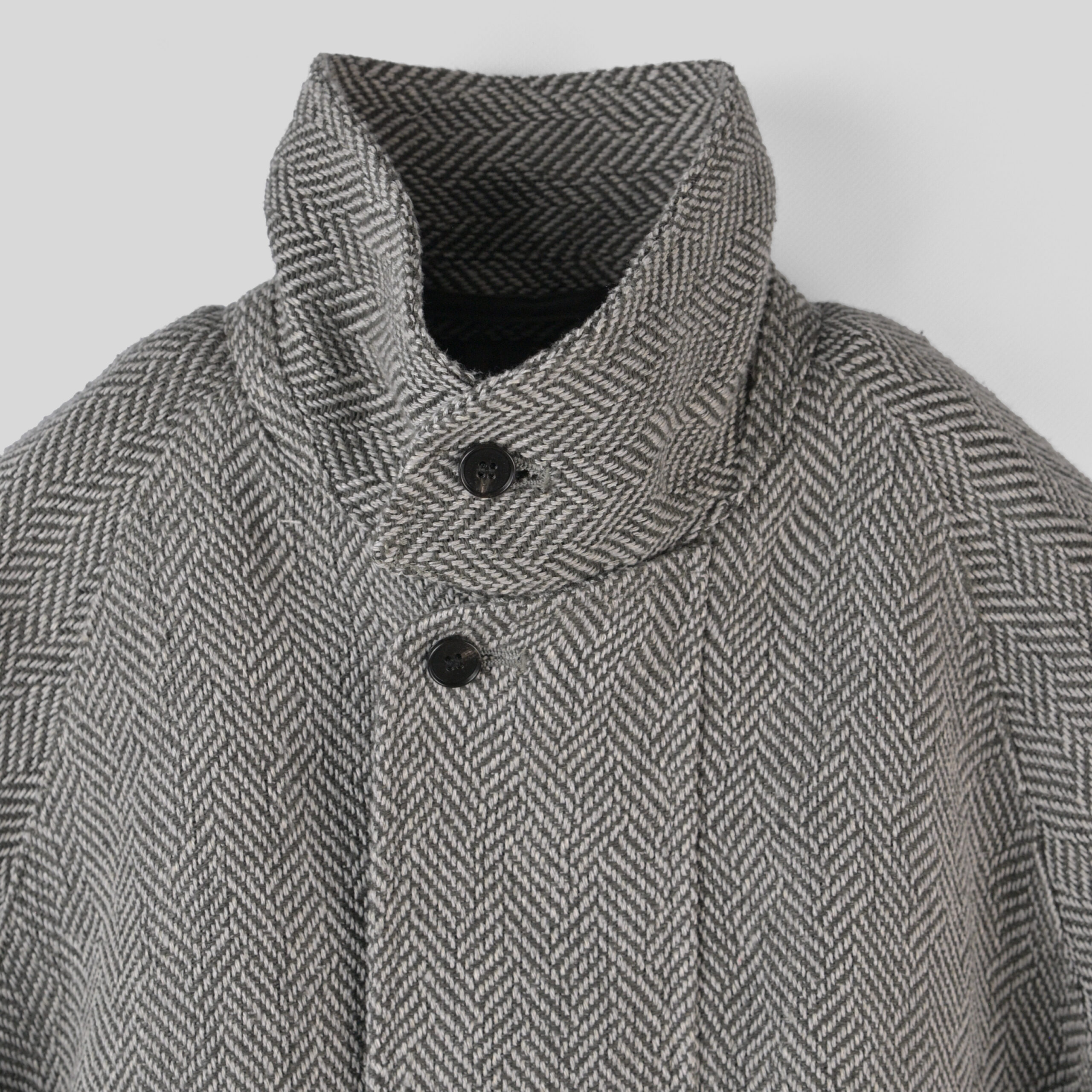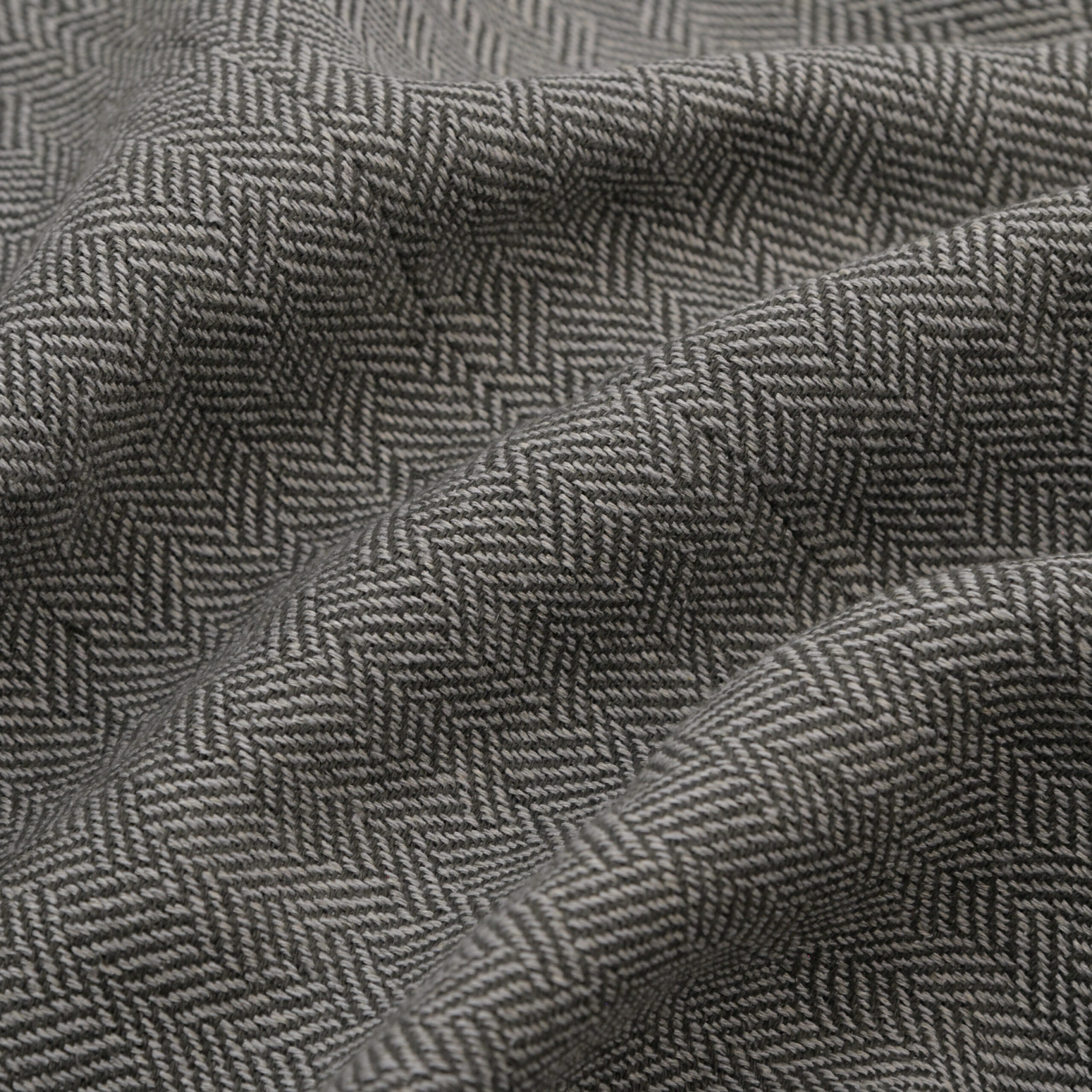 生地には フランス(ノルマンディー地方)の原料を使用したリネンと紬糸を交撚した別注糸を使用し、リネンTOP引き揃えに紬糸を撚り合わせることで、より深い表情感を演出。 組織はヘリンボーンの間に別組織をいれた「IRREGULAR HERRINGBONE 」と組織はヘリンボーンをあえて歪ませた「FANCY HERRINGBONE 」の完全オリジナルで、紬糸のネップ、リネンの糸節といった天然素材ゆえの不均一性が適度な意匠効果を醸し出す。