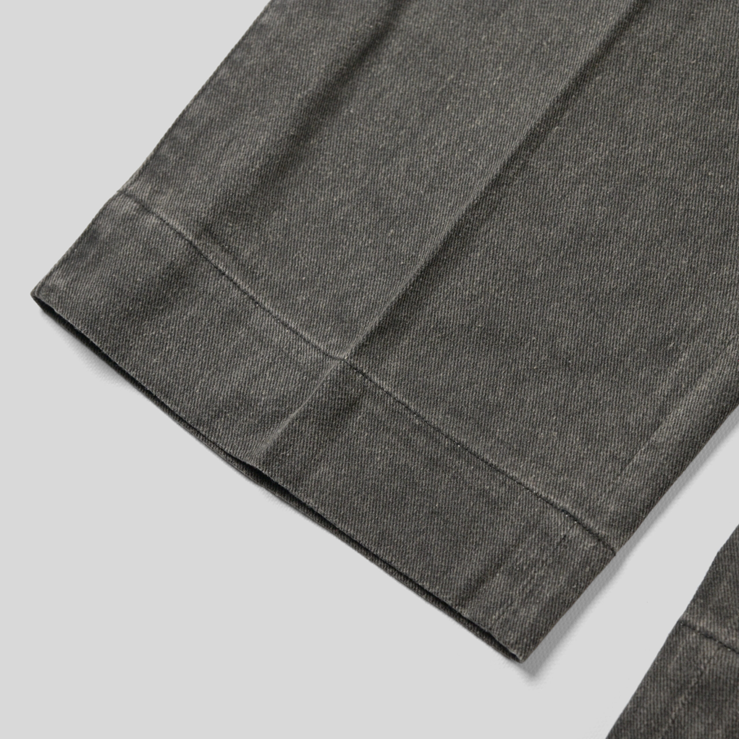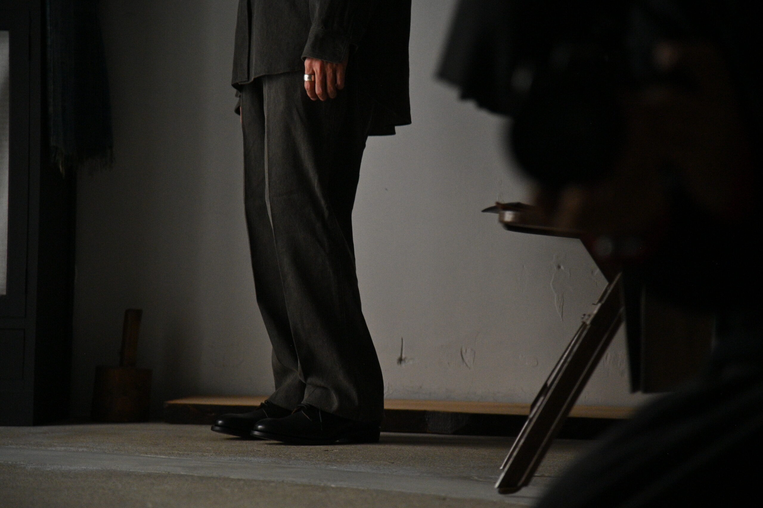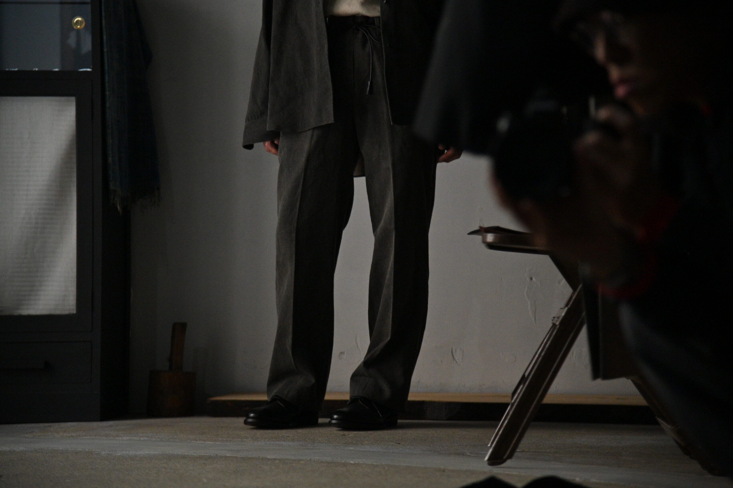 ベージュで地染めした生地に片面顔料コーティングを施したカツラギ。特殊なワッシャー機にてゆっくり揉み込みワッシャーを行い、エイジングした様なビンテージ感のある風合いに仕上げた。