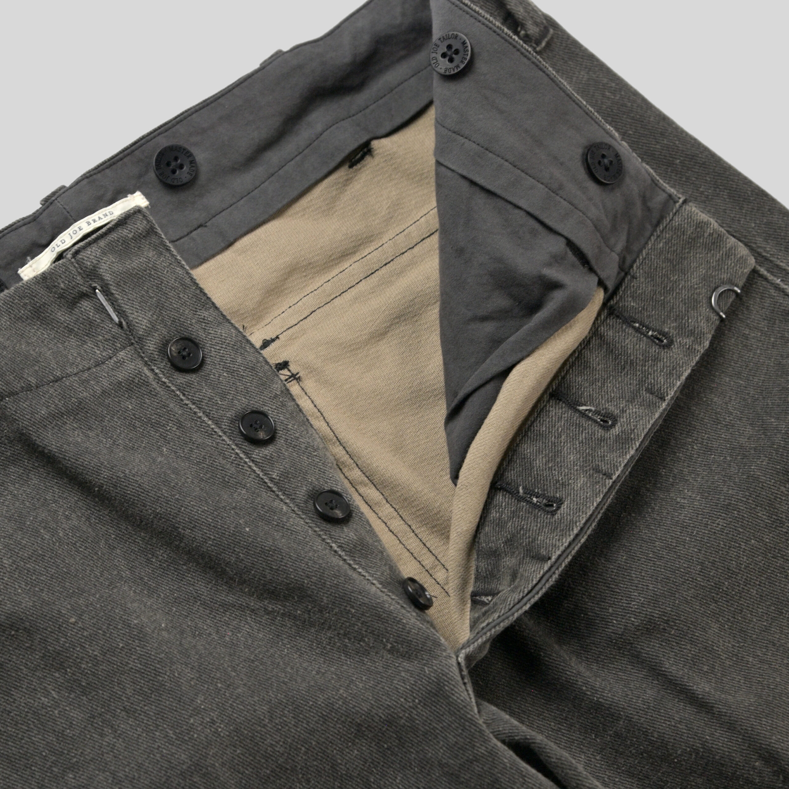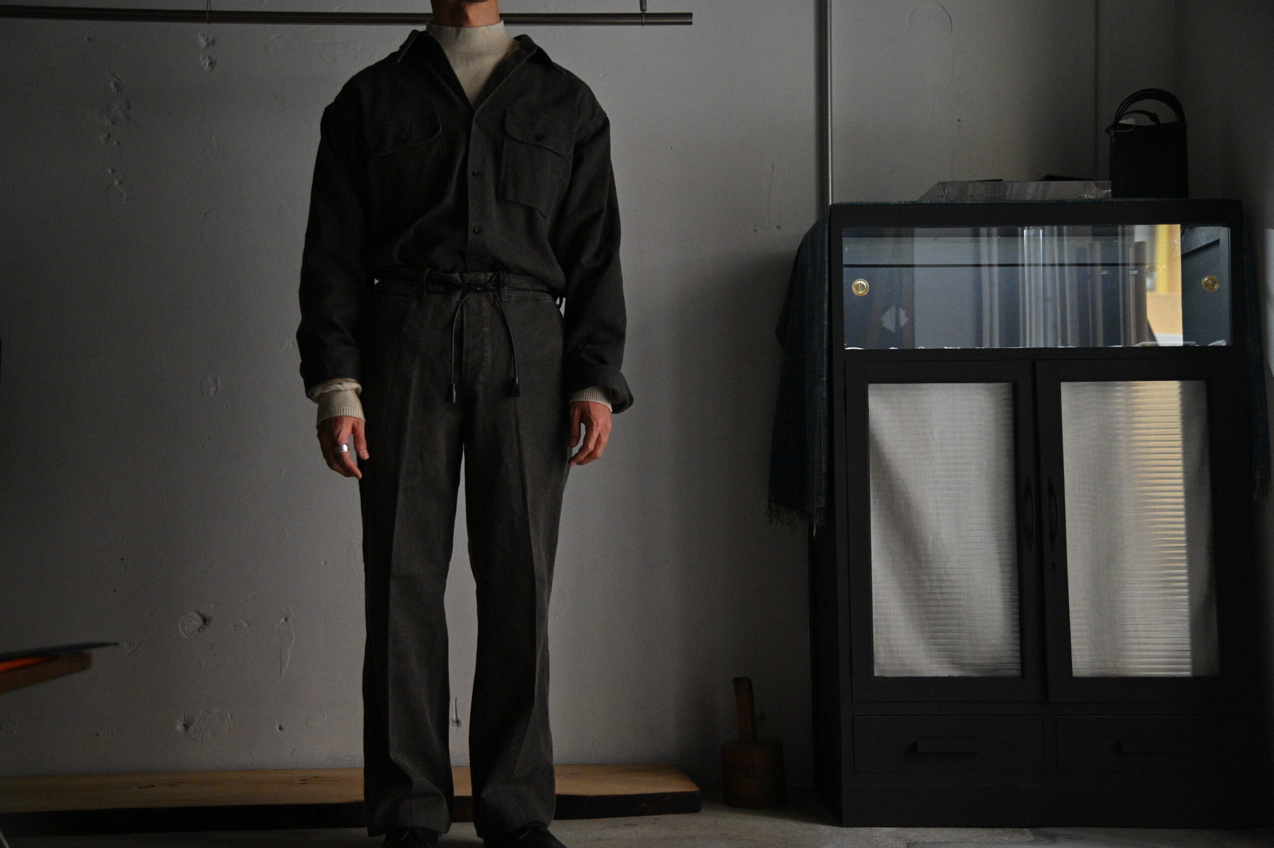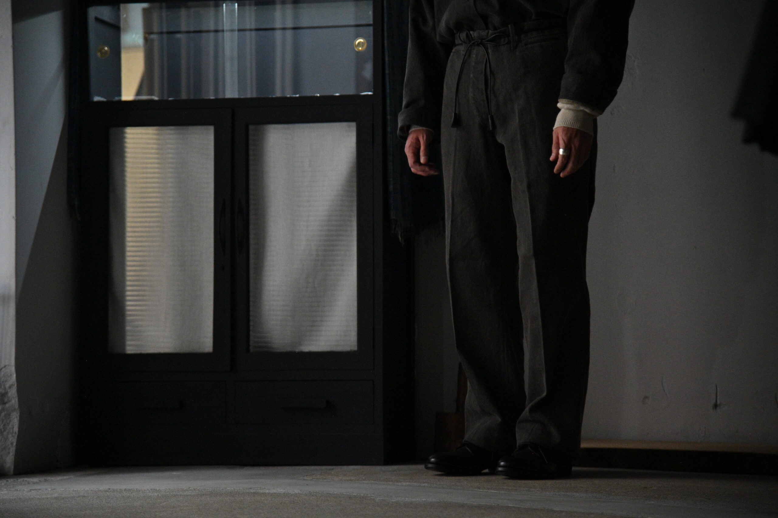 パデッドポケットがレイアウトされたバックスタイルが目を引くトラウザー。戦前のユーロハンティングウェアのアーカイブからのインスパイアによりデザインされています。