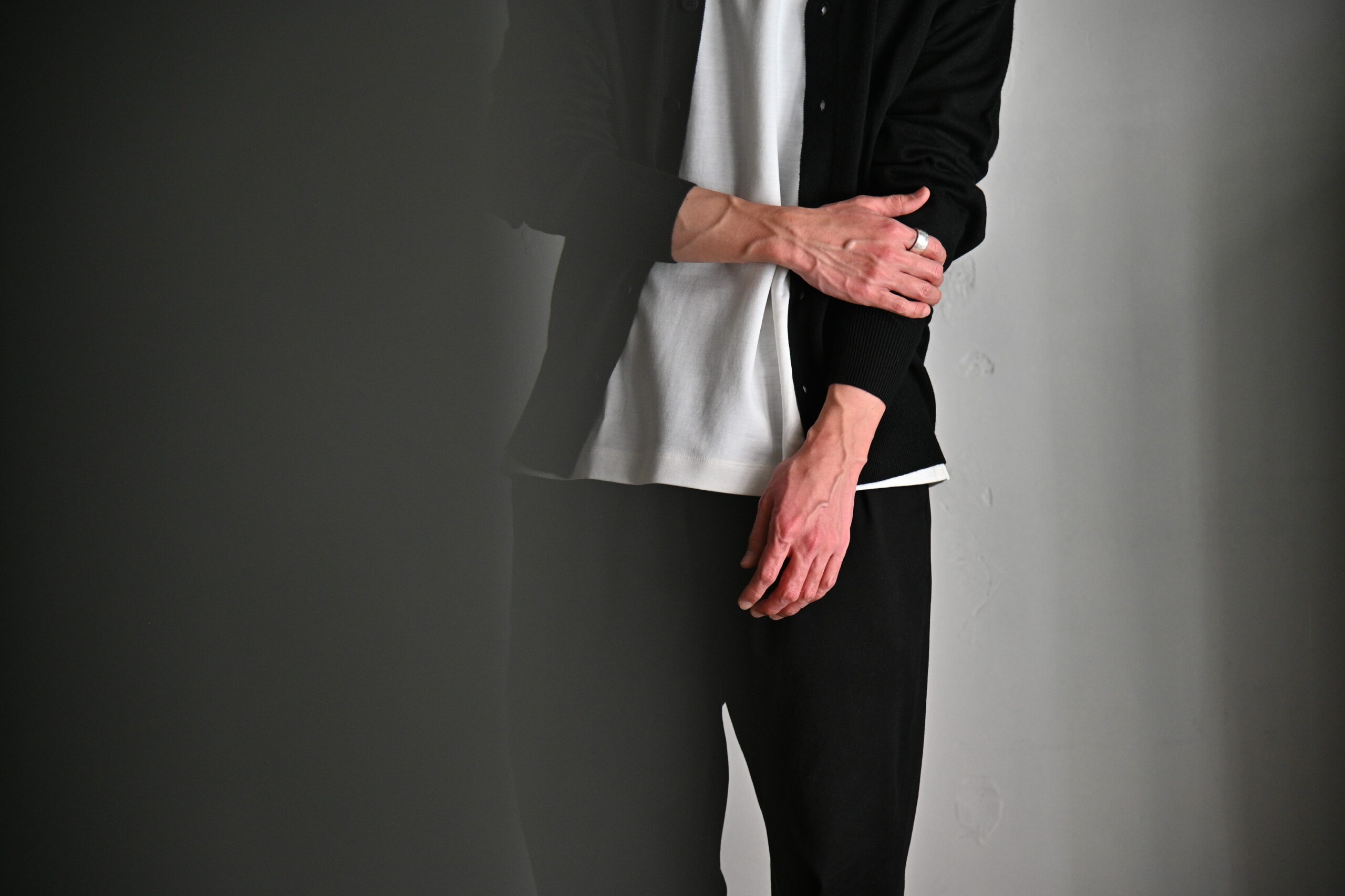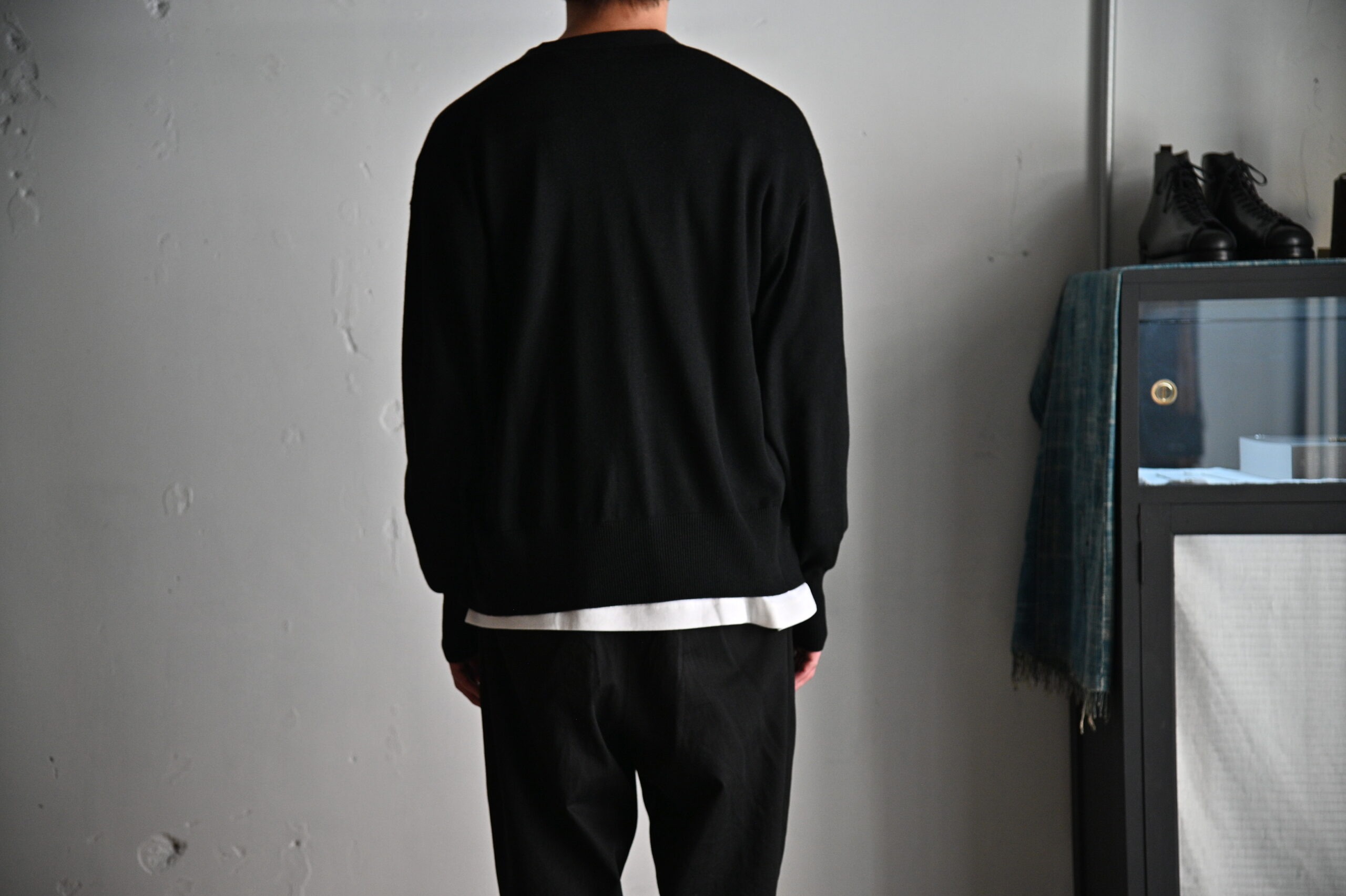 ハイゲージで編むことで、よりシルクカシミアの心地良い肌触りと、編み地の美しい揺らめきをご堪能いただけます。