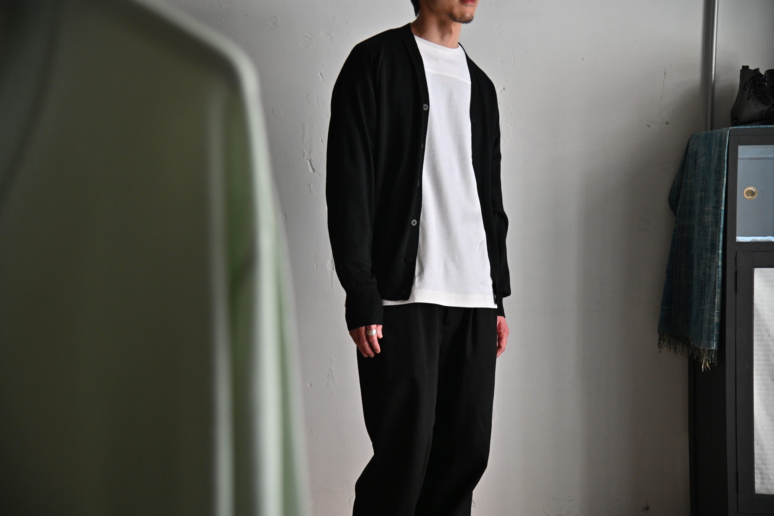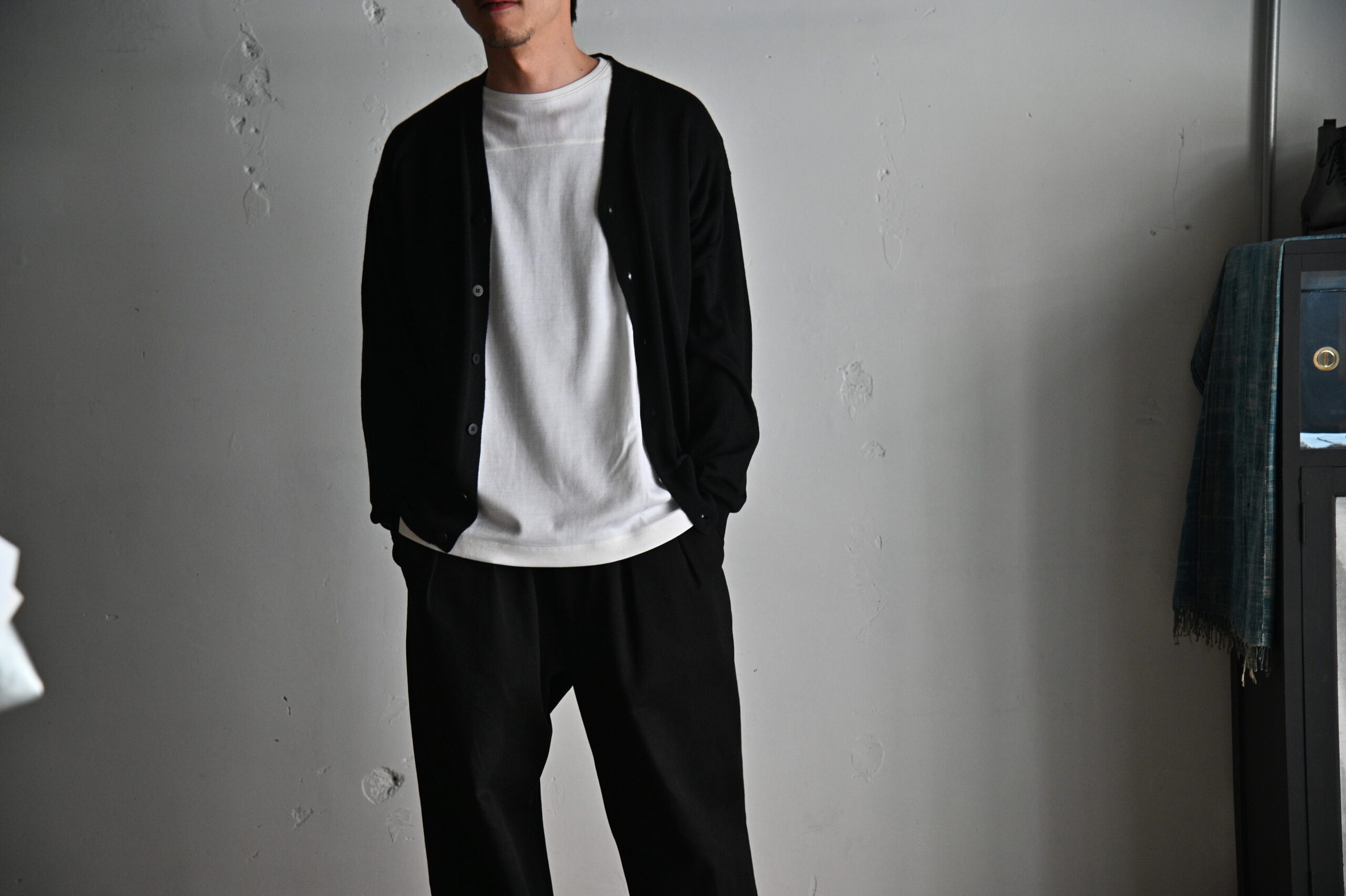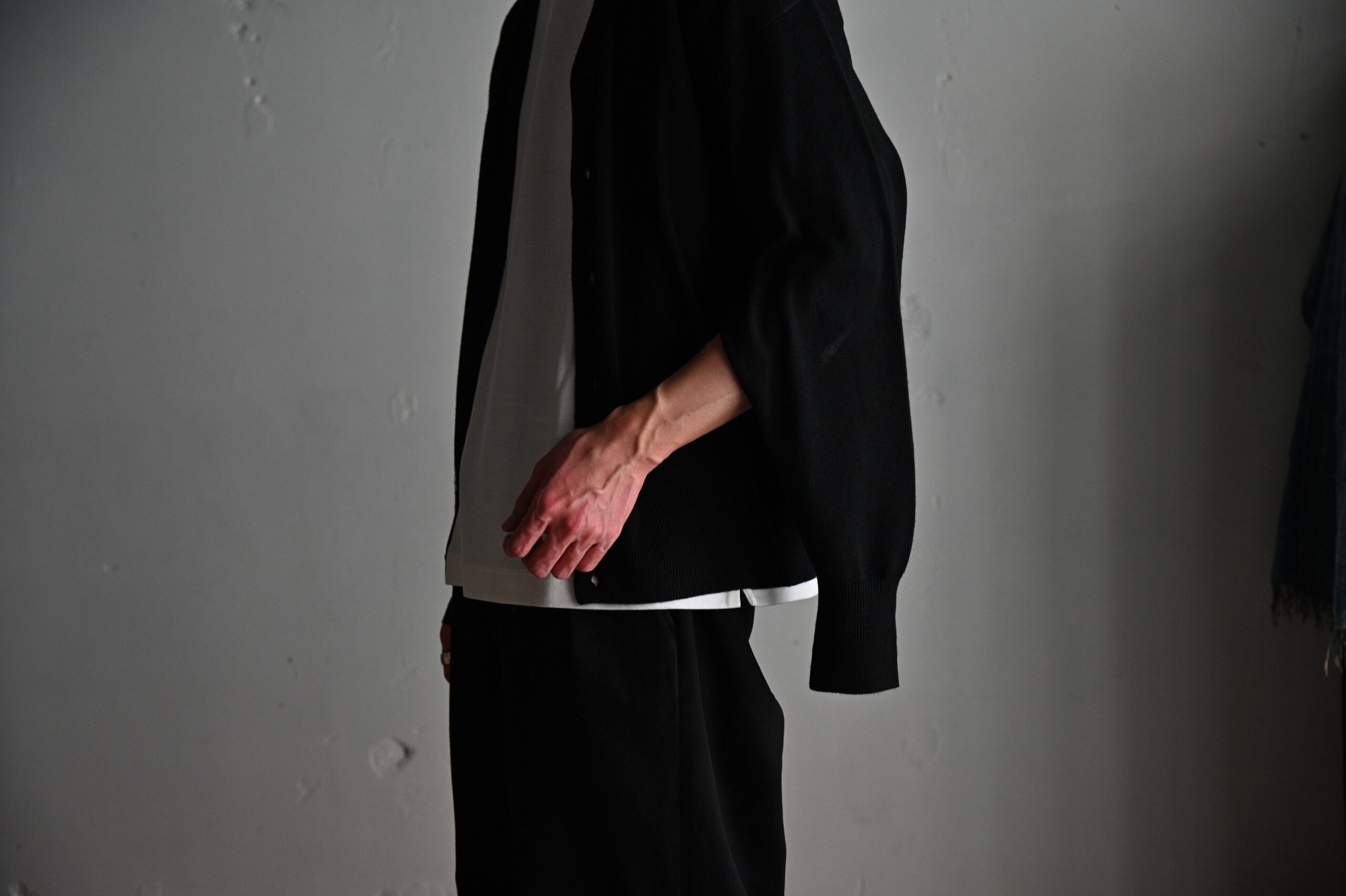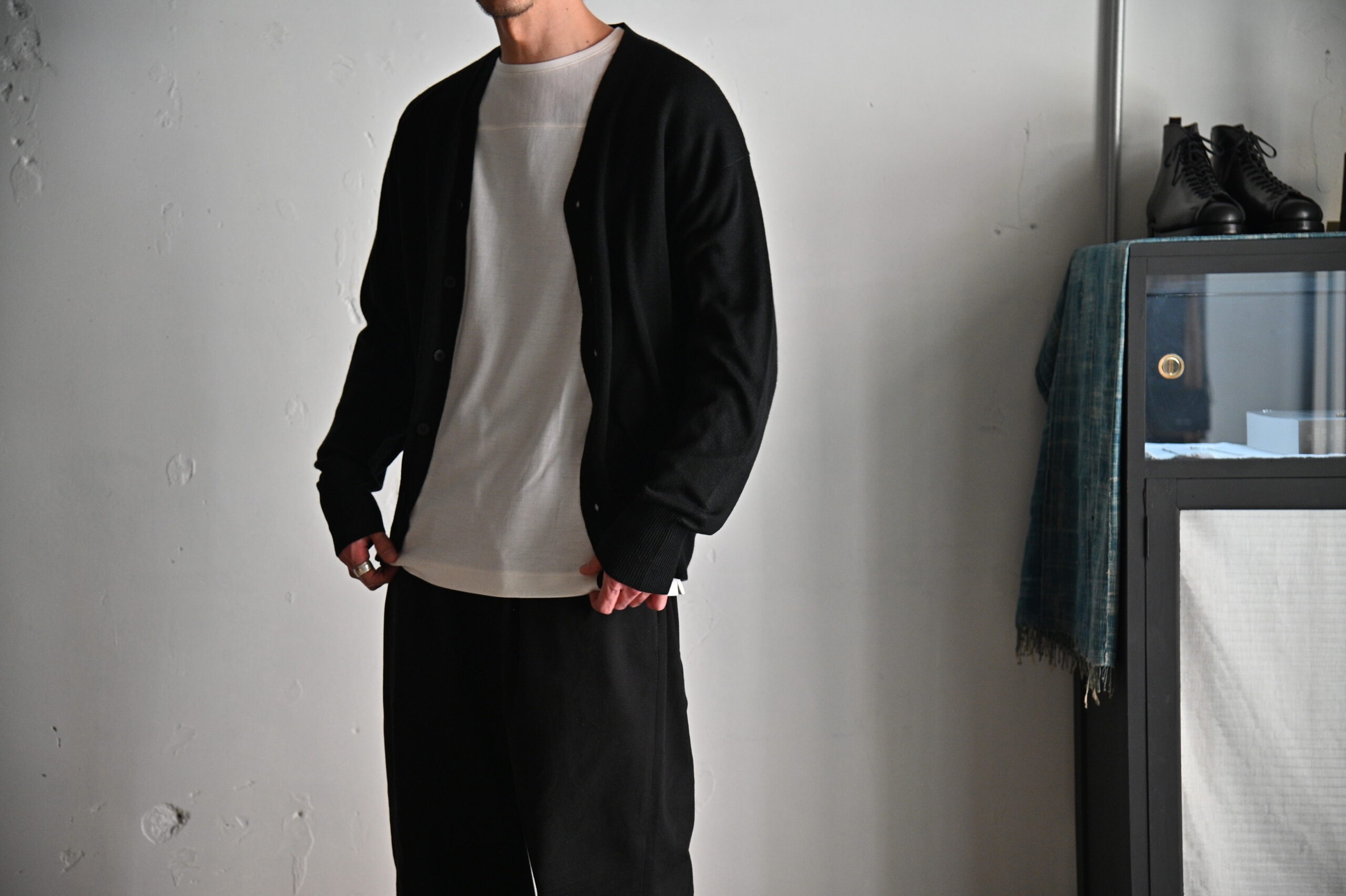 また、気温が高いときの体温調節としての役割と、デザインポイントとしての役割を果たすため春夏に活躍するカーディガンとなっています。