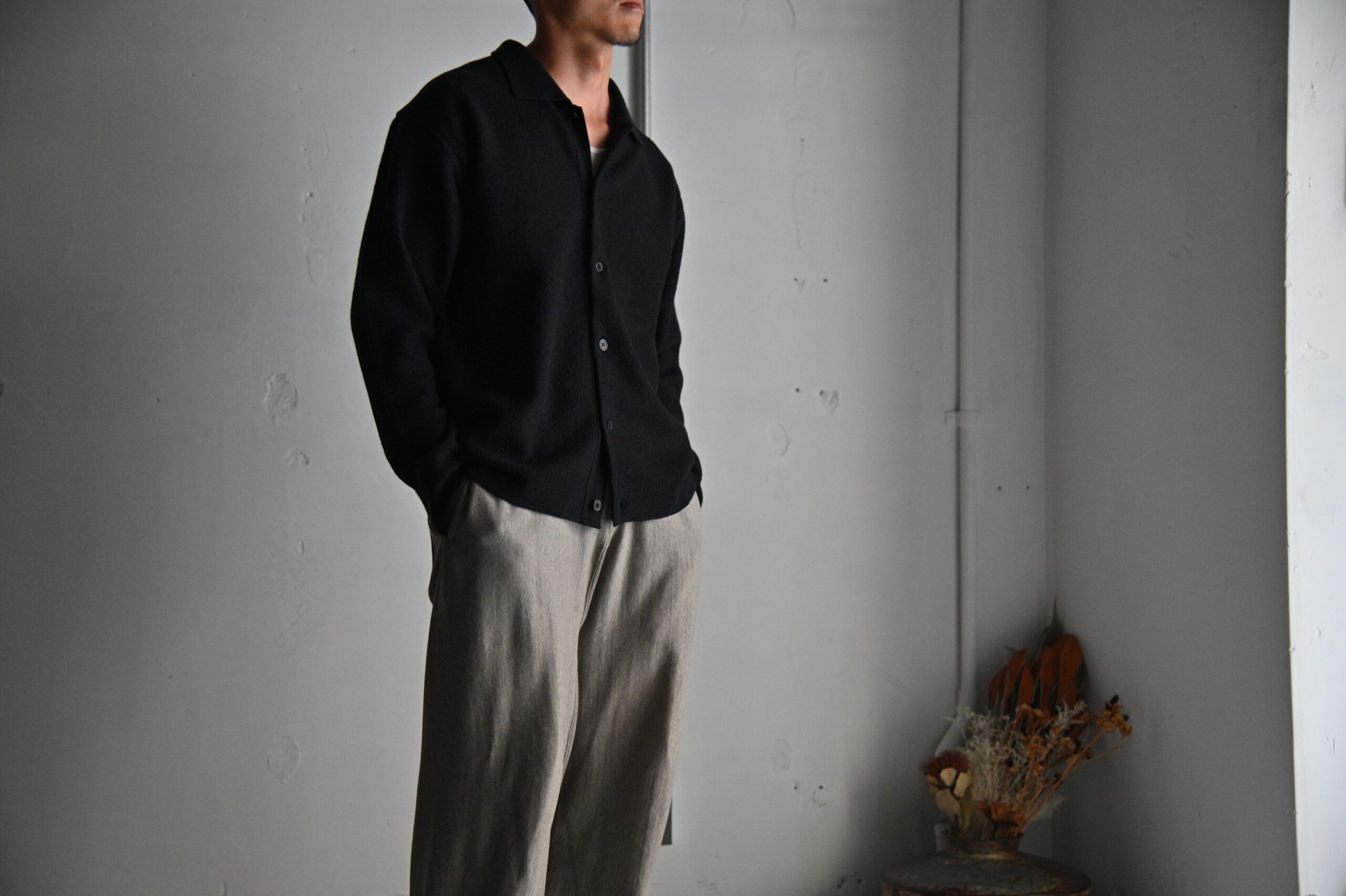 また、糸の白度と繊度が高いため、発色の良さもポイントです。シャツのような感覚で羽織れるカーディガンとしてレイヤードも楽しめる1枚です。