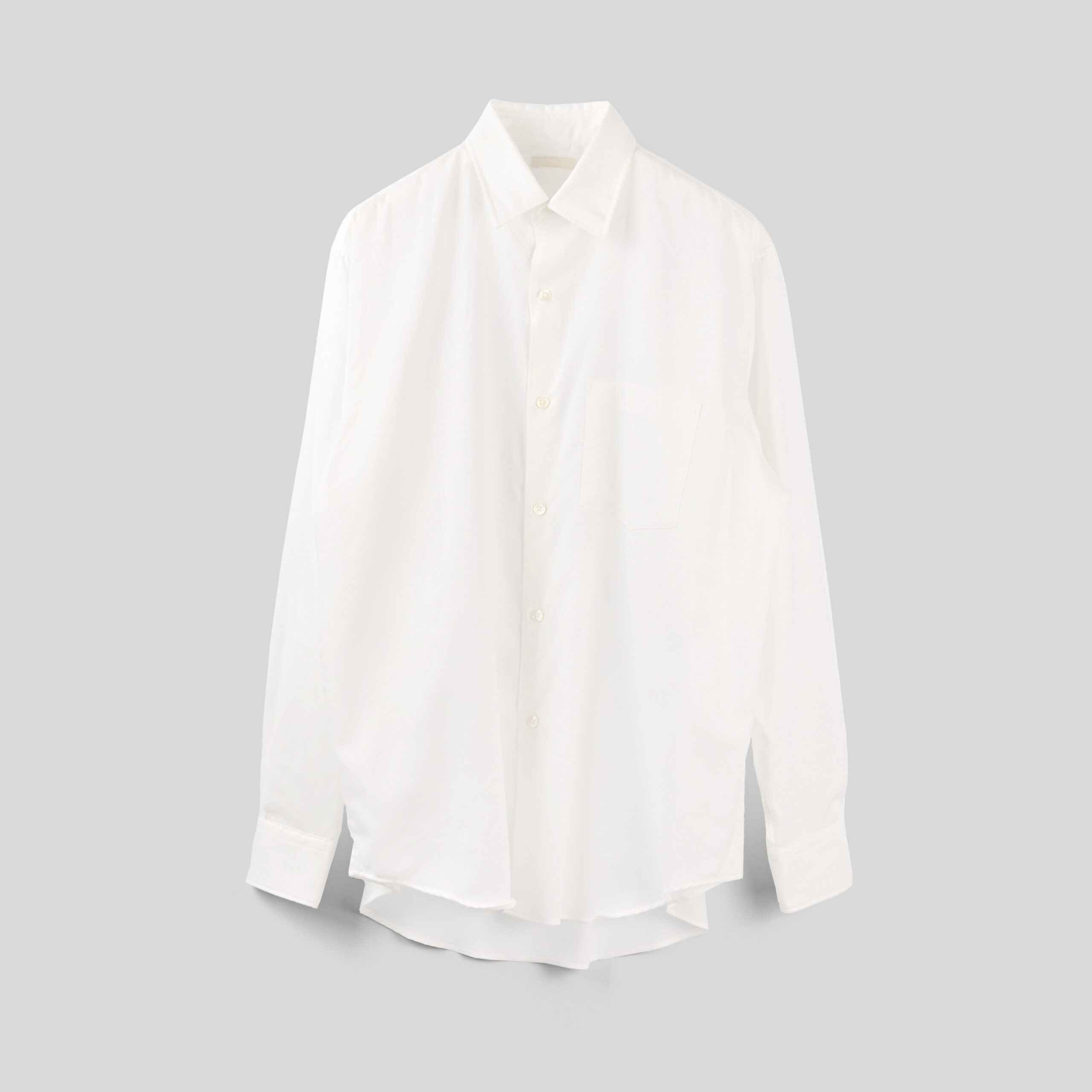 芯抑えのステッチやガゼット仕様など、クラシックな仕様を採用して繊細なステッチワークで仕立てたレギュラーカラーシャツ。小振りすぎないコンパクトな襟型とボクシーなフォルムを採用し日常的に袖を通せるシャツを目指しました。