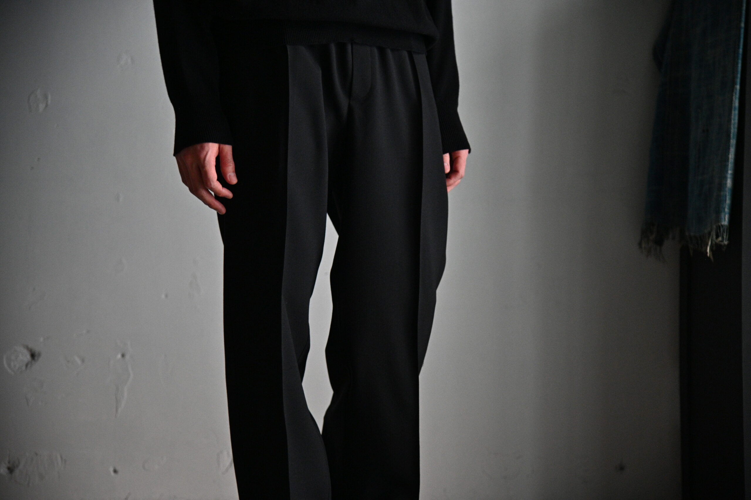 国内屈指のトラウザー専業工場にて生産されるその一本は、厳選された上質な素材、緻密に構築されたパターンワーク、そして身体の動きに寄り添う立体裁断への徹底したこだわりによって形作られています。